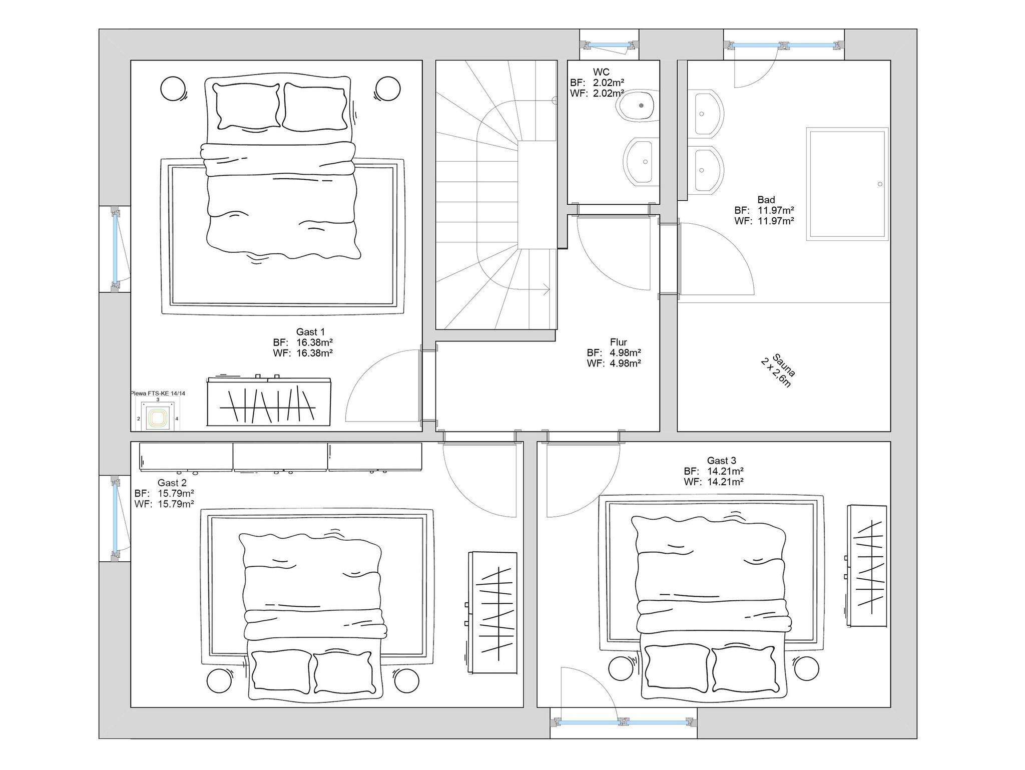 Die Erstausstattung Bettwäsche und Handtücher sind nicht im Gesamtpreis enthalten. Bei Bedarf können diese gegen Gebühr zugebucht werden.