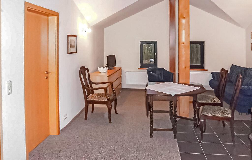 Den ene af to ferielejligheder på 1. sal i den tidligere hestestald (tidligere vogn og ridestald), som blev ombygget til gæstehus. I stueetagen er der en stor ferielejlighed til 8-12 personer. (DZV244), således at hele ejendommen også er velegnet til at indkvartere grupper. Rolig, afsondret beliggenhed midt i skoven. Der er cirka 1 km til badeområdet ved Kuchelmißer-søen. Udenfor er der sidde- og grillplads, parkeringsplads og cykelkælder. Der er en indhegning med eksotiske fugle og smådyr på ejendommen.Den samlede pris inkluderer: slutrengøring, vand- og energiforbrug. Du kan medbringe eget sengetøj eller leje det. Håndklæder skal medbringes. Husdyr: En lille hund op til en højde på 40 cm er tilladt i denne ejendom. 2-værelses lejligheden har en størrelse på 60 kvadratmeter og kan rumme 2 personer. Faciliteter med: Opholdsstue (polstrede møbler, spiseplads, TV, radio), soveværelse (dobbeltseng), åbent tekøkken (elkomfur, ovn, opvaskemaskine, mikroovn, køleskab/fryser, diverse køkkenmaskiner), bad/toilet, centralvarme . Kuchelmiß er en landsby i et skov- og søområde i udkanten af naturreservatet "Nebeltal". Det klimatiske kursted Krakow am See med en veludviklet turistinfrastruktur ligger cirka 10 km væk. Butikker og bade/fiskesø i byen. På grund af den bekvemme beliggenhed på A 19 (2 km), kan hansestaden Rostock og Østersøen nås på cirka 45 minutter. Godset Kuchelmiß var ejet af adelige i mange århundreder. Det store slot fra før eksisterer ikke længere i dag. Vandmøllen, herregården, staldene og en park minder blandt andet om den historiske fortid.