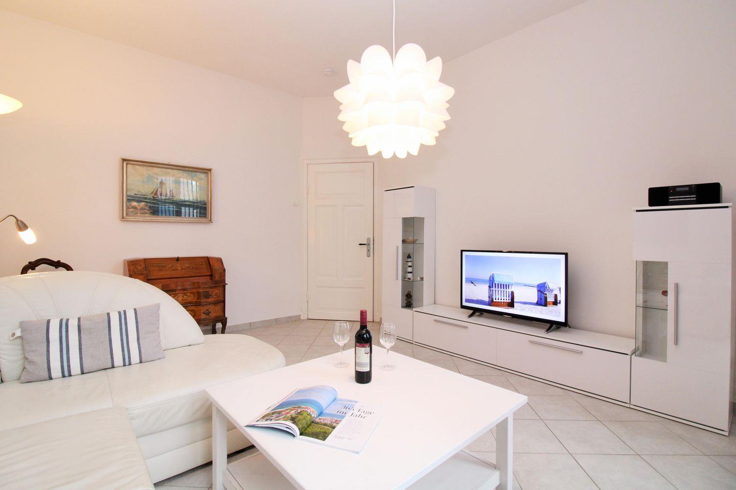 Zu Ihrer Unterhaltung stehen Ihnen in der Ferienwohnung ein modernes Flachbild-TV-Gerät, eine Stereo-Anlage mit Radio und CD-Player sowie eine Auswahl an Büchern zur Verfügung. Als Zusatzleistung (ohne Gewähr) steht Ihnen eine Internetnutzung über WLAN kostenfrei zur Verfügung – bei möglichen Störungen wird hierfür gemäß unseren AGB keine Haftung übernommen.