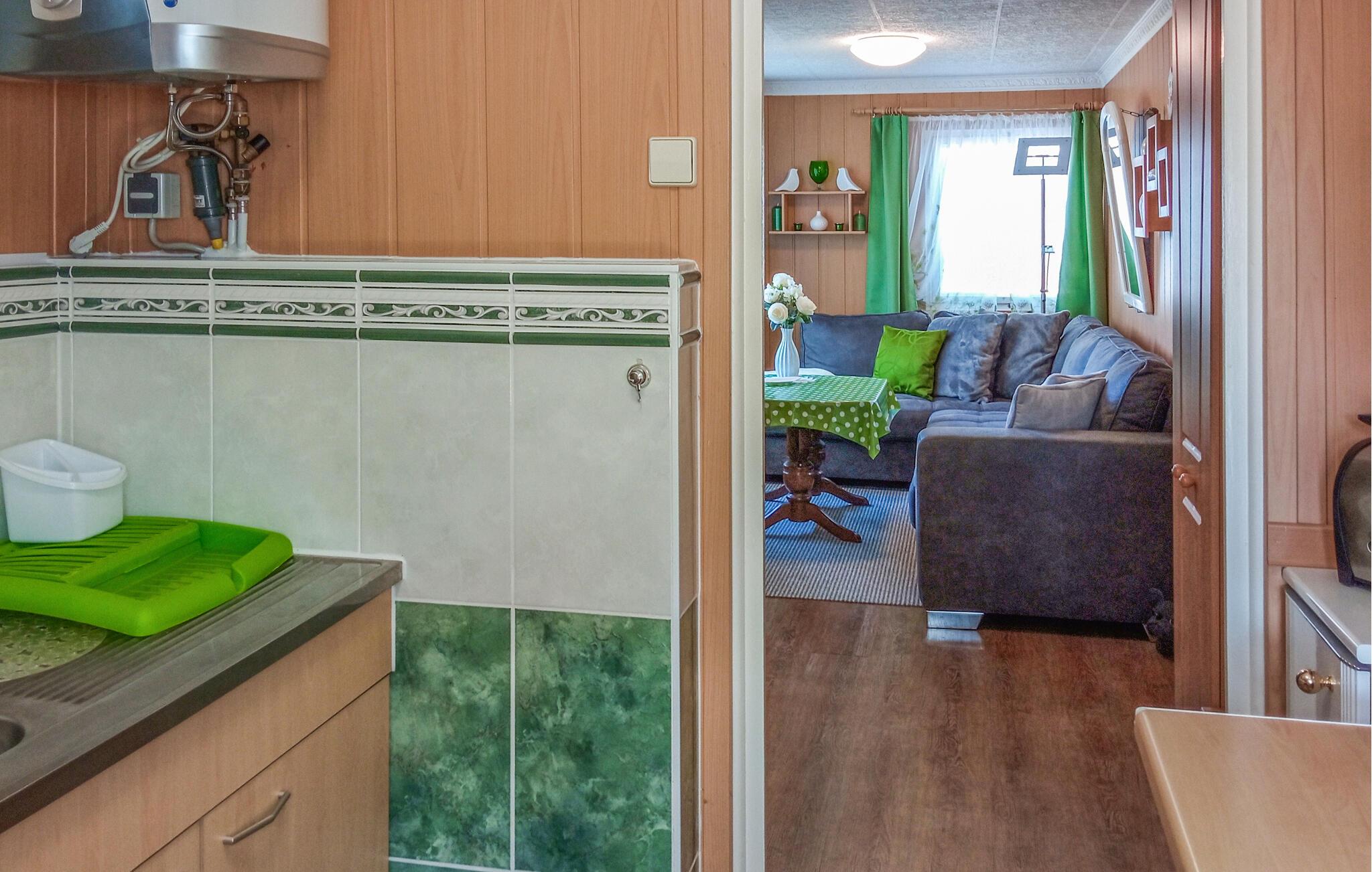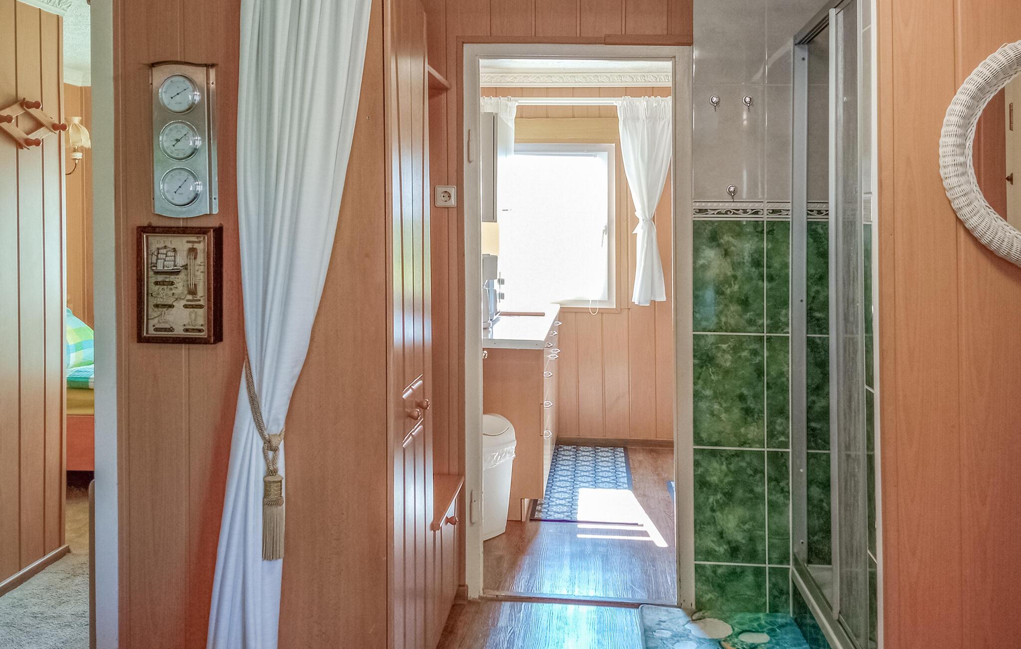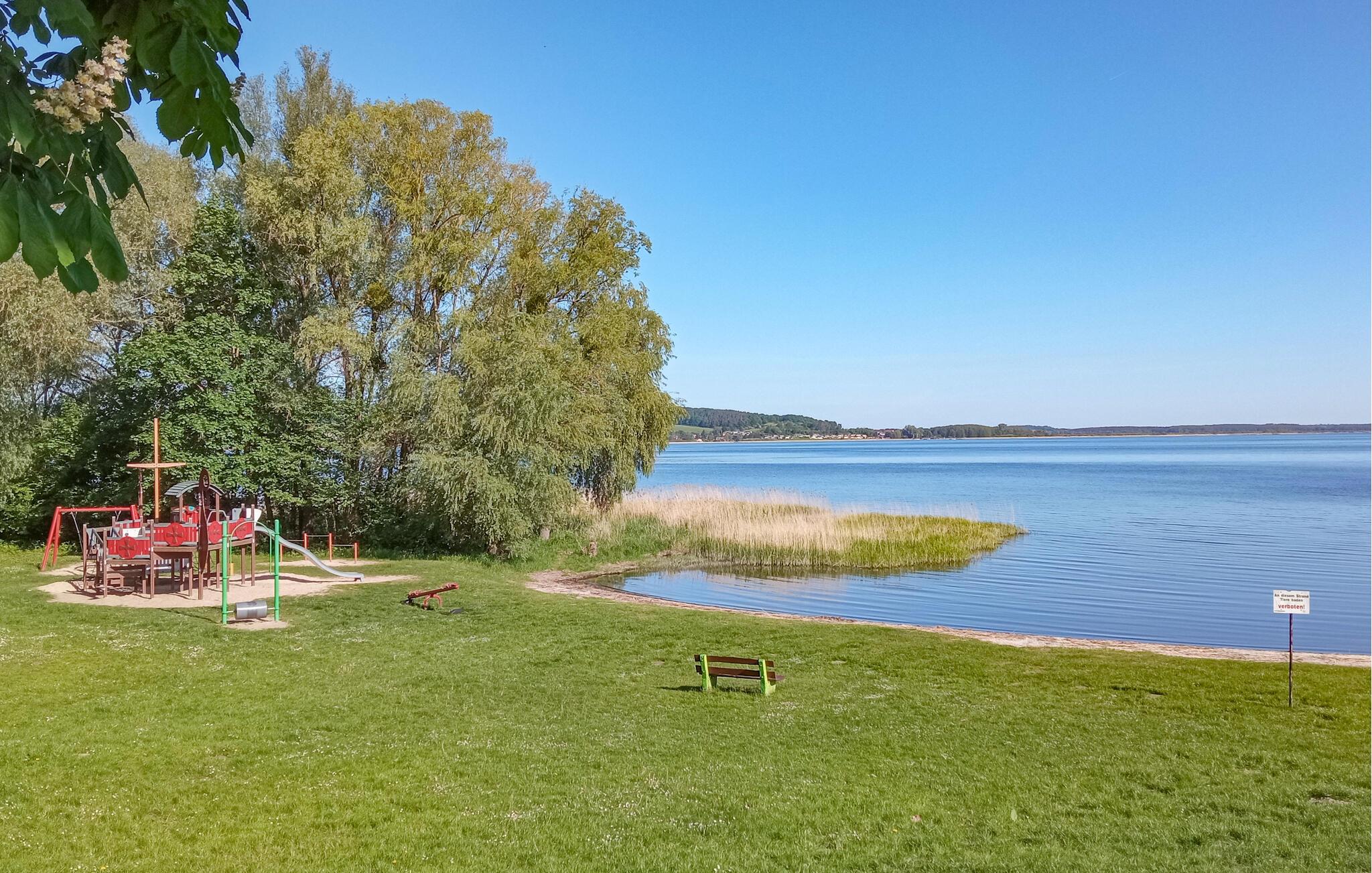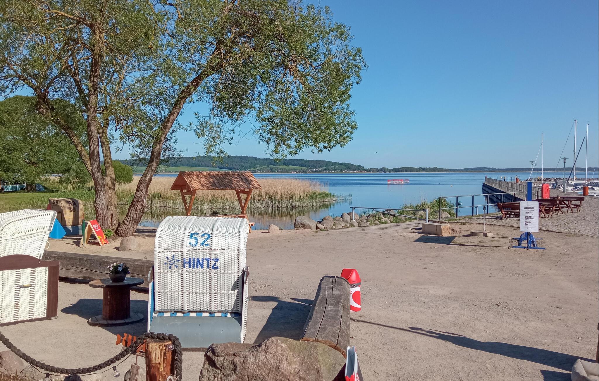 Feriebungalowen for op til 2 voksne og 1 barn, som sidst blev renoveret i 2021, ligger på en cirka 140 kvm stor ejendom ved vandet ved søen Kummerow, i umiddelbar nærhed af Kummerow slotsanlæg og den smukke badestrand. Den cirka 40 kvm store bungalow med udsigt over søen er udstyret med en stue (polstrede møbler, fladskærms-tv, radio, cd-dvd-afspiller), to soveværelser (1 x dobbeltseng, 1 enkeltseng), køkken (ovn, el-komfur) , køleskab med fryseboks, mikroovn), bad og toilet (separate rum), entre, insektnet på vinduerne, ventilator og justerbare elradiatorer. Derudover er der en veranda, et opholdsområde med Hollywood-gynge på ejendommen, liggestole, en grill, en ryger og en parkeringsplads. Slutrengøring og vandforbrug er inkluderet i den samlede pris Sengelinned kan lejes mod betaling Medbring gerne egne håndklæder. Betales på stedet: energi efter forbrug, sengetøj (hvis forespurgt). Kæledyr er ikke tilladt i denne ejendom. Den lille, landlige by Kummerow ligger direkte ved den eponyme Kummerower-sø, den fjerdestørste i Mecklenburg - Vorpommern - midt i det maleriske landskab i Mecklenburg Schweiz. Regionen er præget af bølgende bakker med vidunderlig udsigt og er ideel til vandre-, cykel- eller vandvandringer. Skibs-, båd- eller kanoture på søen eller den tilstødende Peene er lige så værd som ture til Reuterstadt Stavenhagen, til Malchin eller til kloster- og paladskomplekset Dargun. For de mindste byder Kummerow-søen med sin flade kystlinje og smukke sandstrand på masser af sjov at lege og svømme i. Kunstelskere inviteres til at besøge det imponerende barokke Kummerow Slot - omhyggeligt restaureret efter mange års ledighed - med en ekstraordinær fotokunstudstilling.