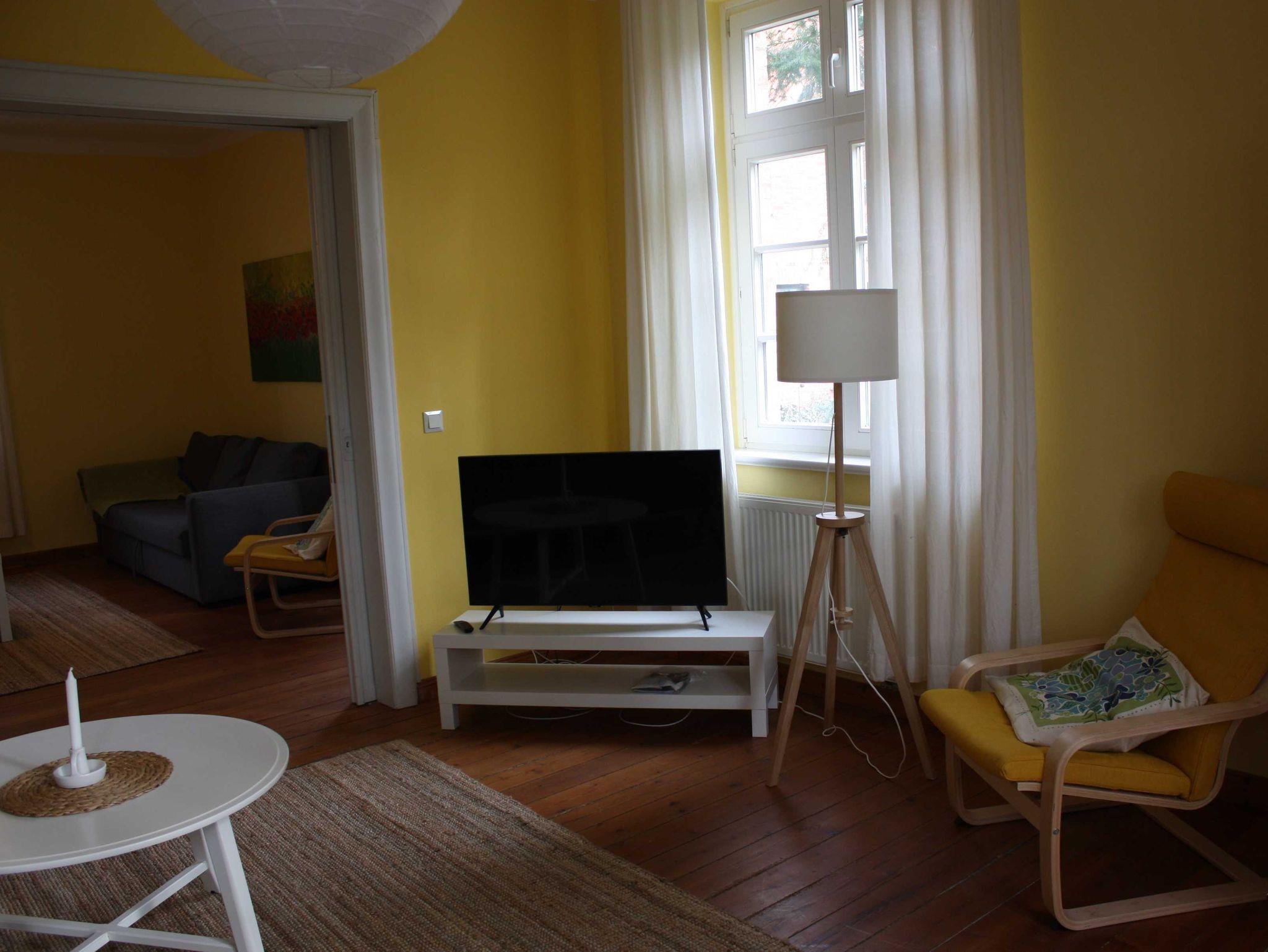 Sie bewohnen die untere Etage des Forsthauses. Bestehend aus 1 x Schlafzimmer mit Doppelbett, sehr großes teilbares Wohnzimmer mit 2 Schlafcouchen(Aufbettungsmöglichkeit je 2 Personen , belastbar bis max 120 kg),