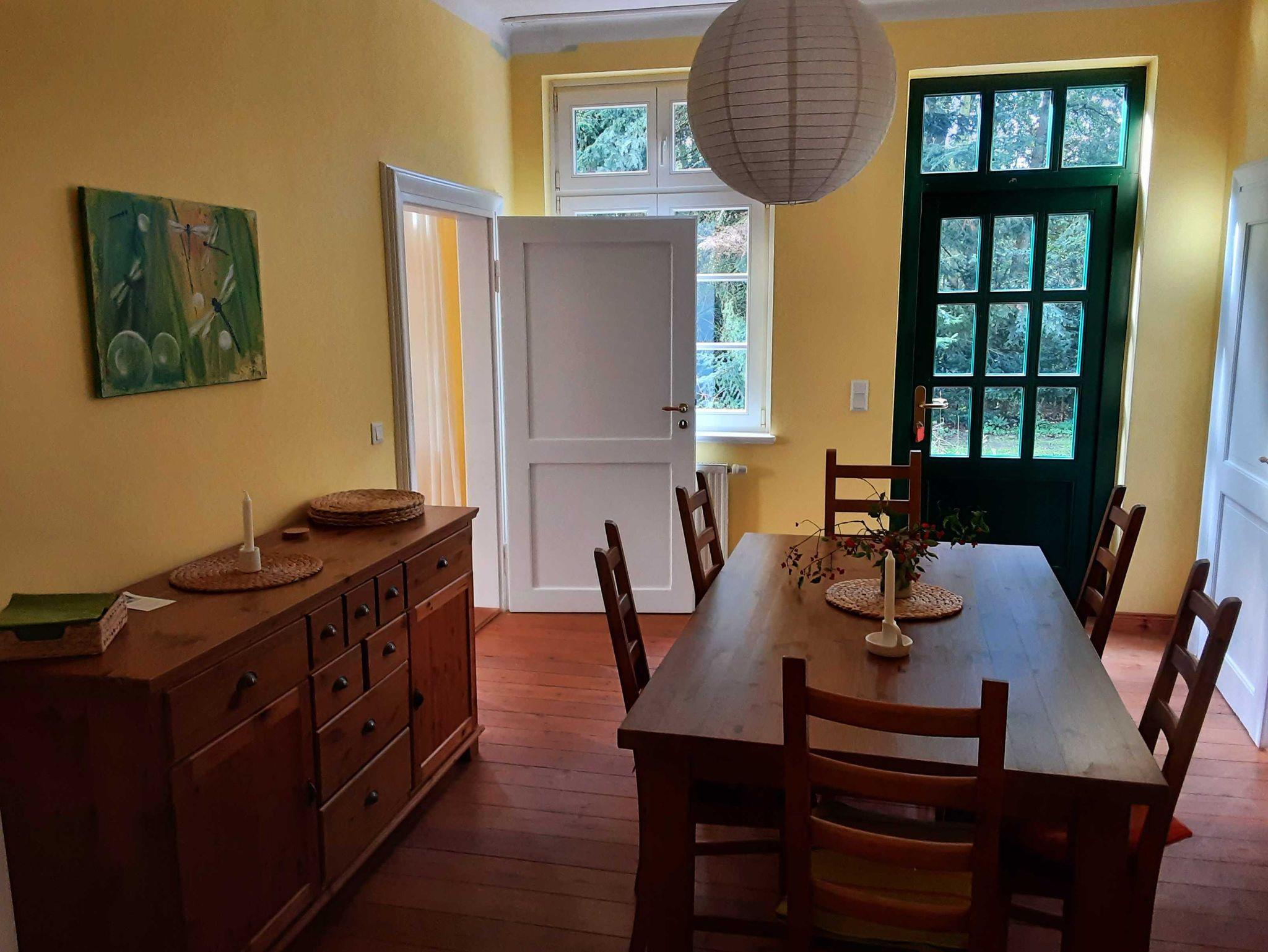 Die Betten sind bezogen. Die separate Küche ist voll ausgestattet ( Kühlschrank ohne Gefrierfach, Herd mit Backofen, Mikrowelle, Wasserkocher, Kaffeemaschine...) Vom Esszimmer aus kann man direkt auf die Terrasse und in den Garten gehen. Von hier sind es nur noch ein paar Schritte bis zur Elde und dem Bootsteg. In einem kleinen Nebenraum befindet sich ein Waschtrockner. Glasfaserinternet mit W-lan (100 mbit) ist vorhanden.
