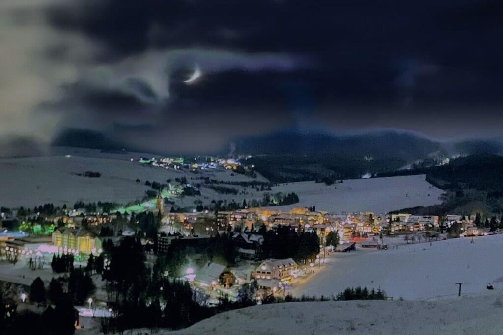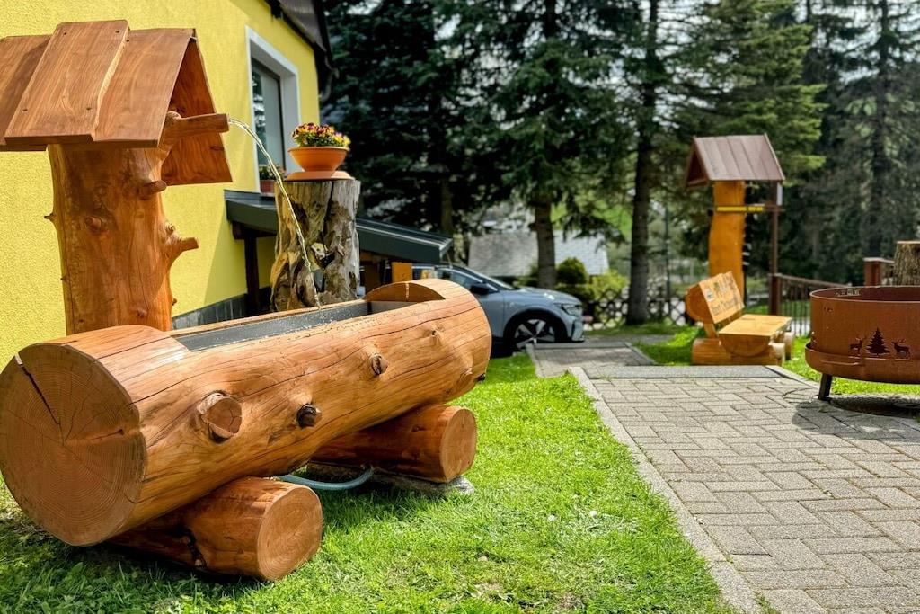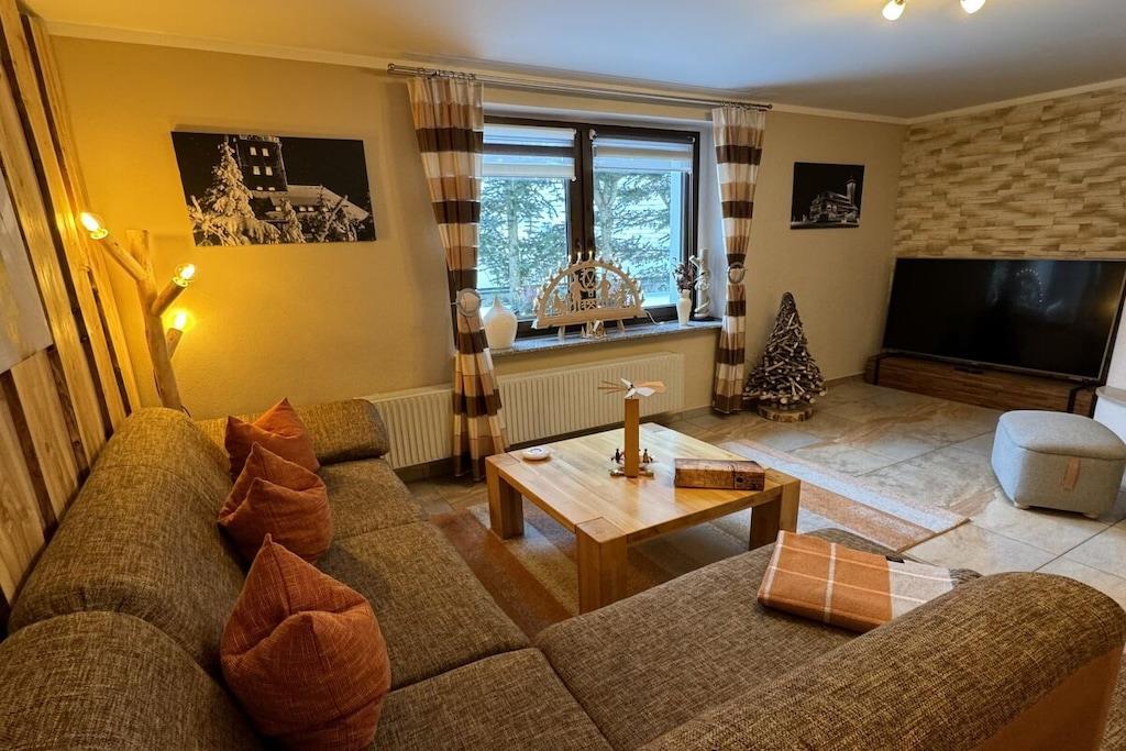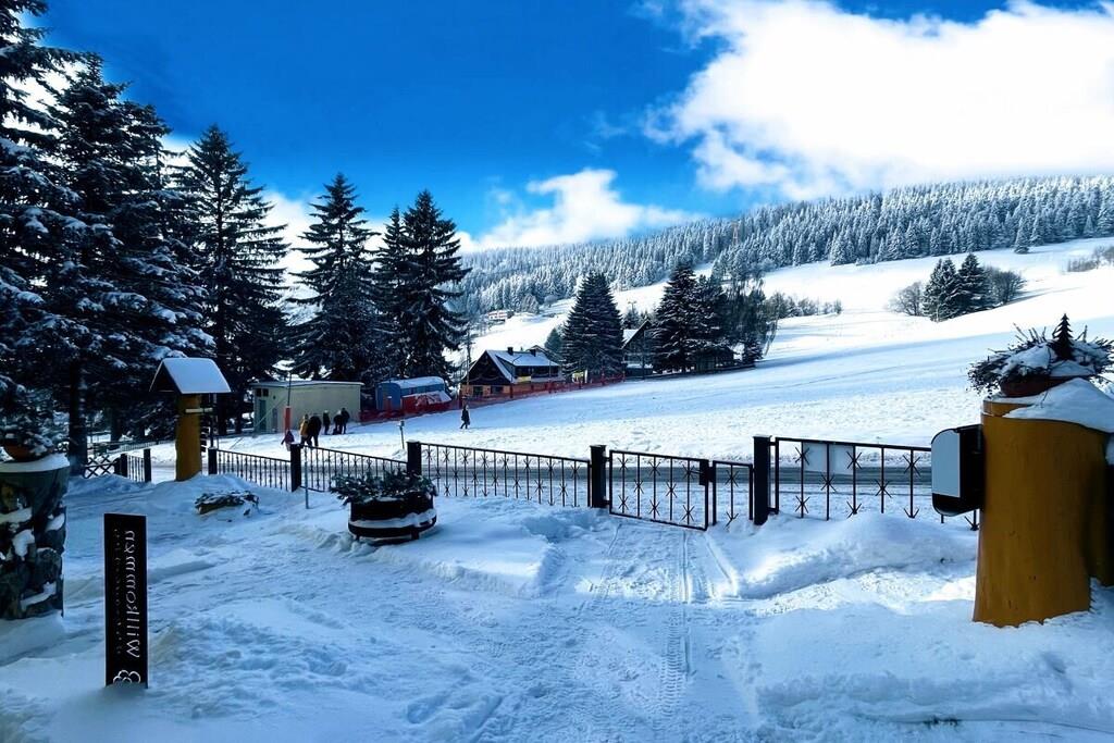 Right on the ski and toboggan slope. Best location in the Oberwiesenthal spa town. View from the sun terrace directly onto the Fichtelberg