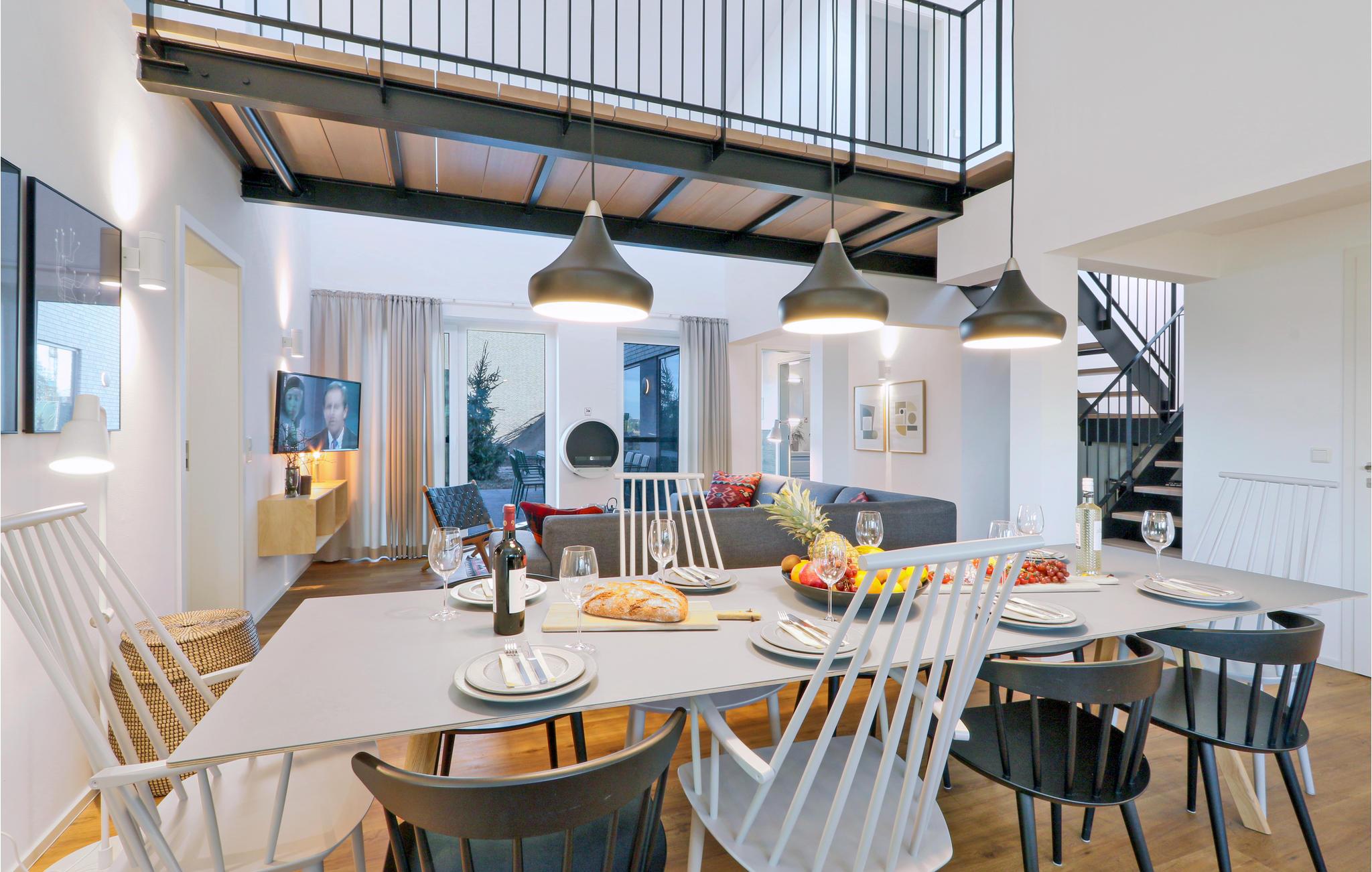 Velkommen til jeres feriehus, som tilbyder en hyggelig og komfortabel atmosfære i skandinavisk stil, perfekt til børnefamilier eller vennegrupper. Takket være den private indendørs pool og sauna udstråler dette hus et strejf af luksus. Opholds- og spisestuen på første sal har en åben hems med en hemslignende fornemmelse. Det åbne køkken lægger op til at lave mad og slappe af, mens de to terrasser altid tilbyder et solrigt sted. Op til 10 gæster vil finde rigelig privatliv her takket være 5 soveværelser og 4 badeværelser. Møblerne i skandinavisk stil er konsekvent af høj kvalitet og lader intet tilbage at ønske.