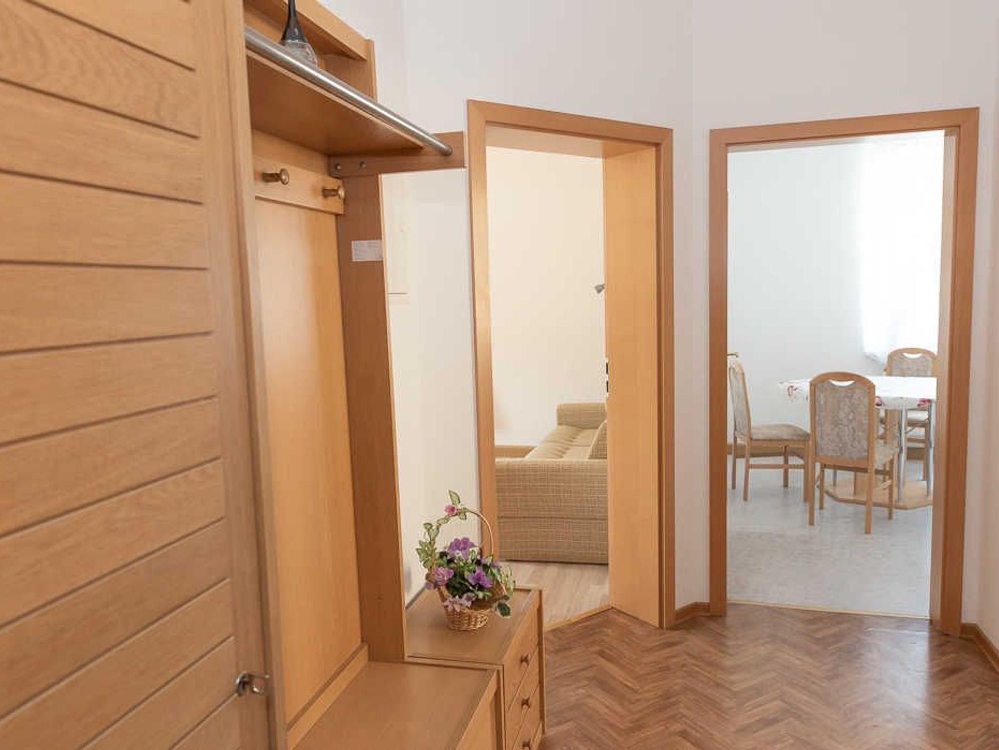 Die Wohnung ist komplett eingerichtet !! Im Wohnzimmer haben Sie einen 42er Diagonale Bildschirm, mit ca 40 verschiedenen Sendern, in höchster Qualität. In der Küche haben wir Geschirr- und Besteck, für 4 Personen, 1 Herd, 1 Mikrowelle, 1 Kaffeemaschine, 1 Wasserkocher 1 Tisch mit Sitzgelegenheit für 5 Personen, Im Bad, finden Sie 1 Waschbecken, 1 Badewanne mit Dusche, 1 Waschmaschine, 1 Handtuchhalter, Handtücher ( ohne Extrakosten ) 1 Fön und natürlich diversen Hygieneartikel. In dem großen Schlafzimmern, haben wir 1 Doppelbett mit Schrank und Spiegel, im kleinen Zimmer Schlafzimmer ein Einzelbett, auf Wunsch auch kann auch ein weiteres Kinderbett aufgebaut werden. Entsprechend dem Alter ein kleines Klappbett bis 3 Jahre oder auf Wunsch auch ein aufblasbares Zusatzbett .