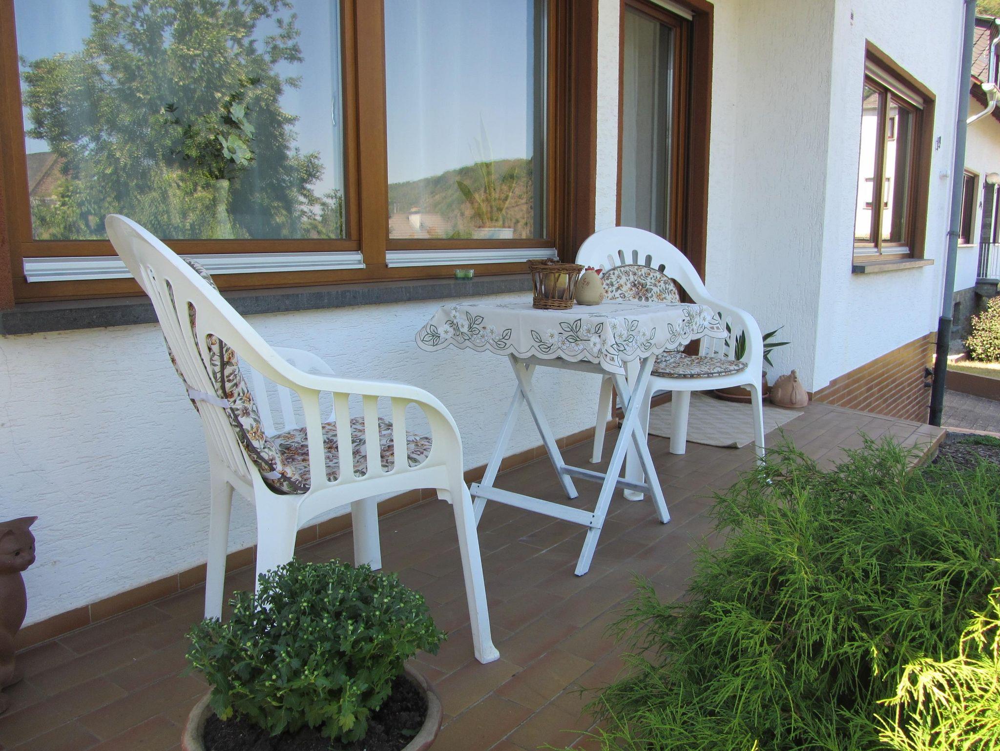 Die im Erdgeschoss gelegene Ferienwohnung bietet auf ca. 68 m² eine geräumige und gut ausgestattete Küche (u. a. Kaffeemaschine, Toaster, Kühlschrank mit Gefrierfach und Sat-TV), ein Wohnzimmer (mit internetfähigem TV), ein Schlafzimmer mit Doppelbett sowie ein Tageslichtbad (WC/Dusche). Vom Wohnzimmer aus haben Sie einen direkten Zugang zum Freisitz mit Burgblick. Ihr Auto hat einen Platz direkt am Haus. Ebenso können Sie mitgebrachte Fahrräder in der Garage unterstellen.