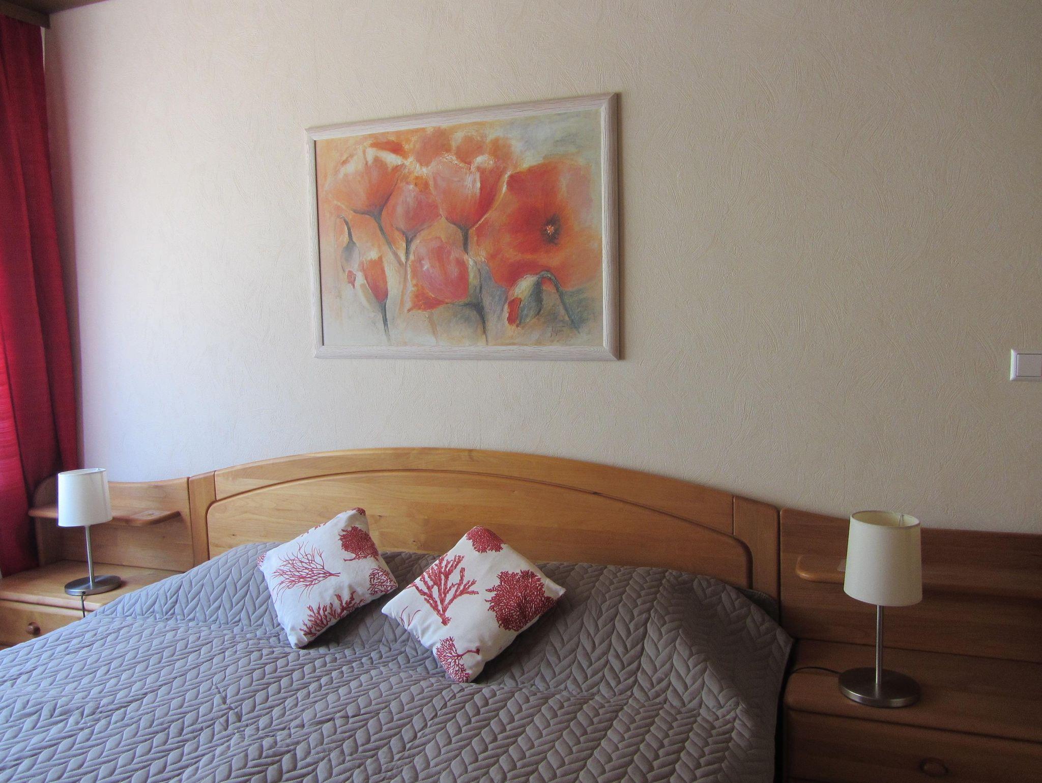 Die 69 qm große Ferienwohnung liegt im Erdgeschoss eines Wohnhauses und ist über 2 Treppenstufen erreichbar. Sie verfügt über eine große Küche und das Schlafzimmer hat ein 2 x 2 Meter großes Doppelbett. Die Wohnung ist für max. zwei Personen buchbar.