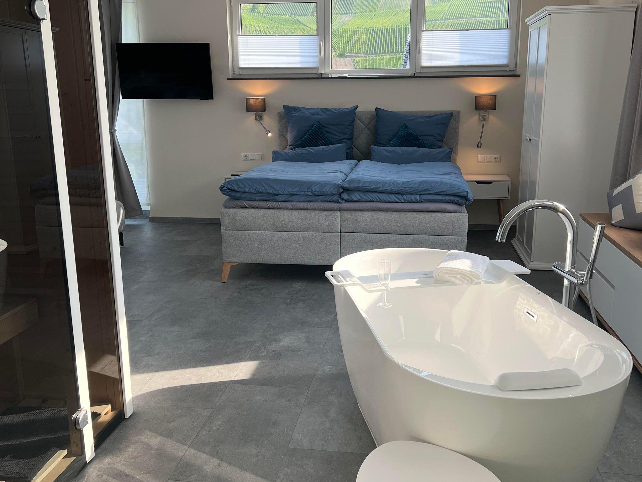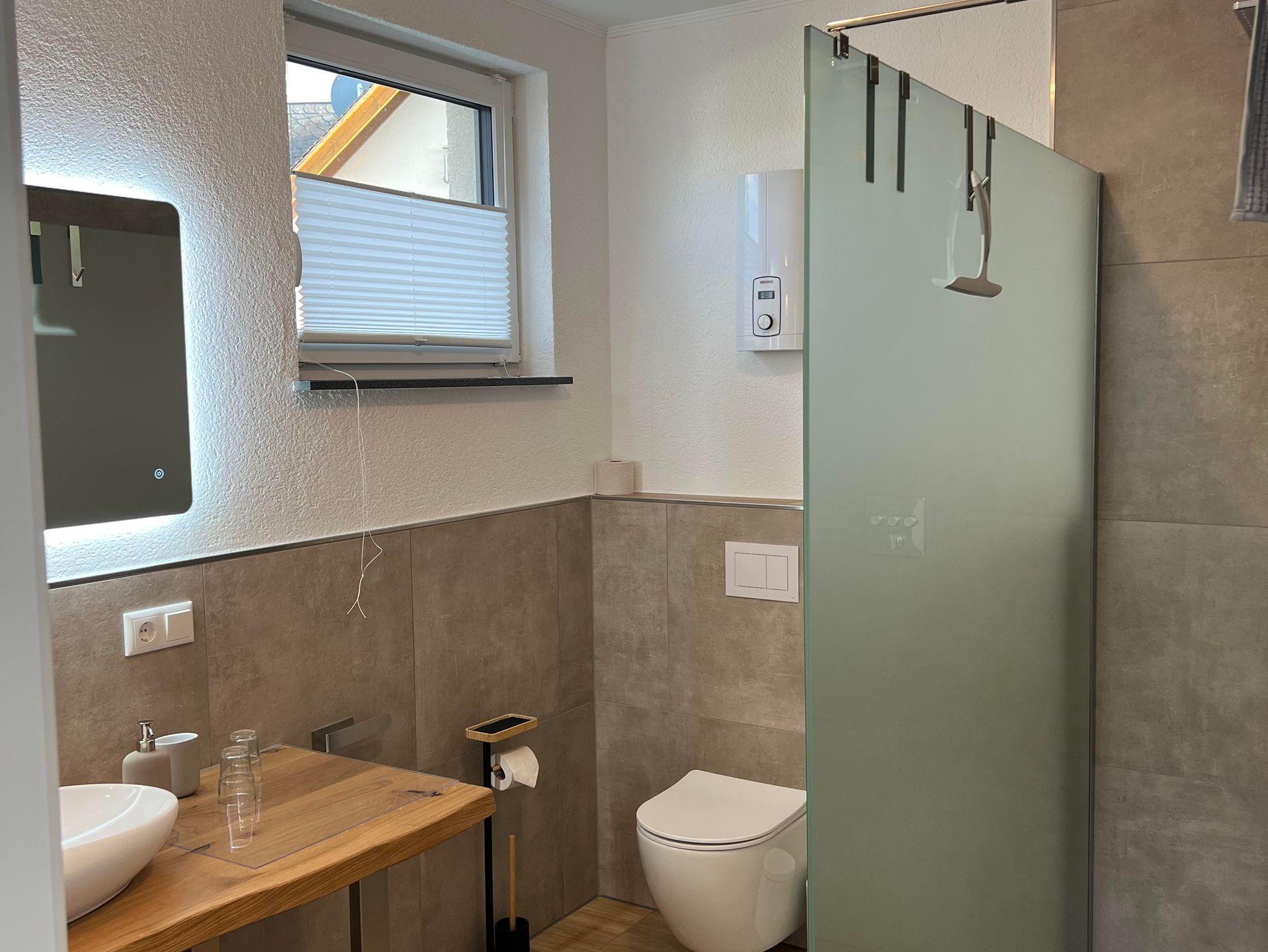 Im modernen Badezimmer erwartet Sie eine Badewanne für entspannte Stunden, dazu steht eine separate Toilette zur Verfügung. Auf dem sonnigen Balkon genießen Sie den Blick ins Grüne – perfekt für ein Frühstück an der frischen Luft oder einen entspannten Abend.