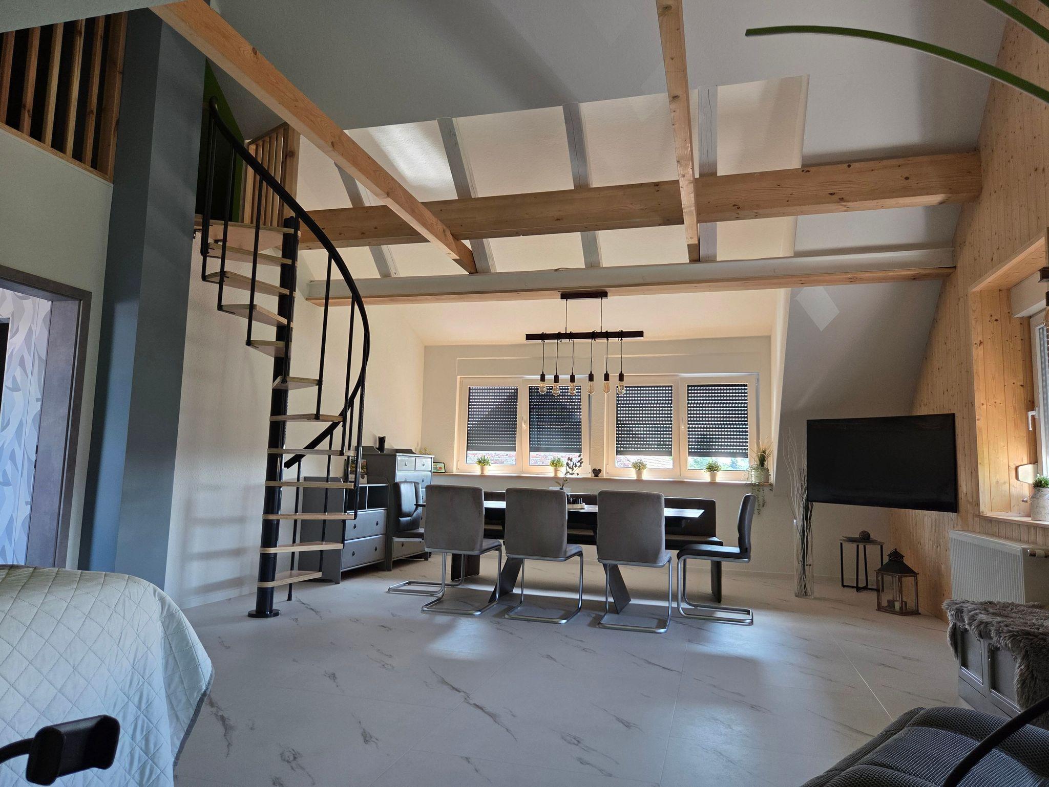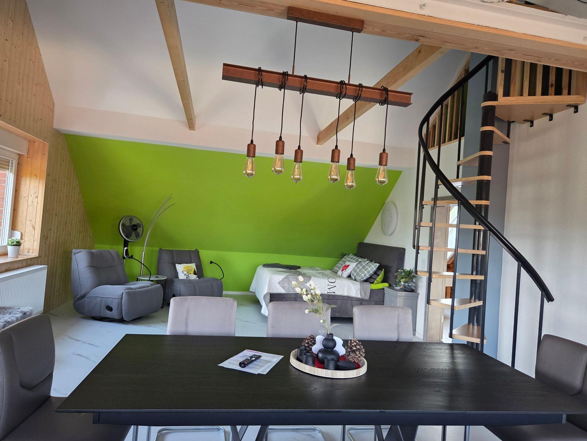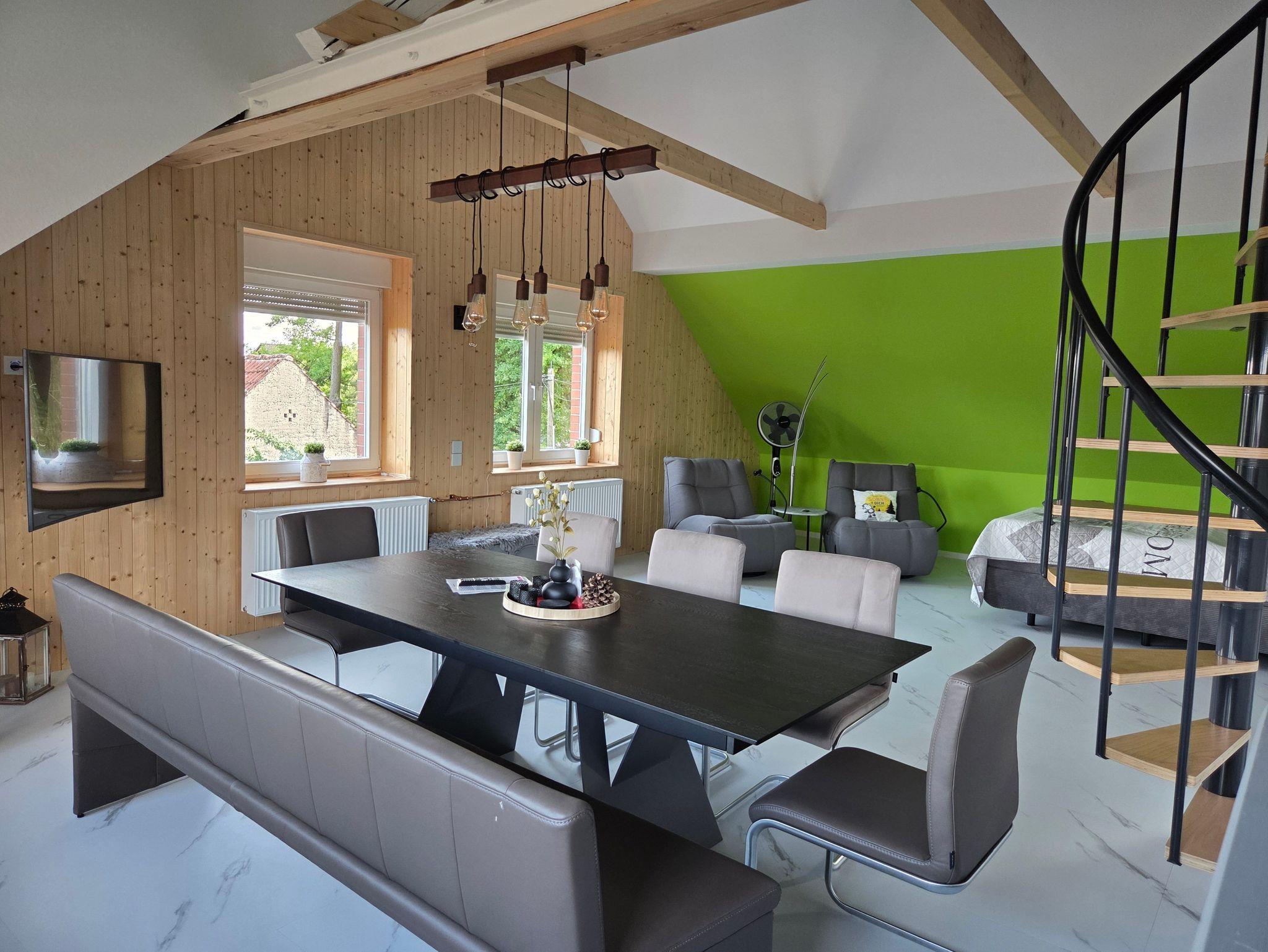 Ein Zuhause zum Wohlfühlen und Entspannen. Wir wohnen mit unseren Tieren (zwei große Hunde, eine Katze, Enten, Gänse, Hähne und Hühner) auf einen alten ehemaligen Bauernhof von 1918, in Radensdorf, bei Lübben im schönen Spreewald. Radensdorf liegt im Biosphärenreservat im Spreewald, ca. 6km von Lübben entfernt. Uns kann man auch mit Bus und Bahn erreichen. Ein Zuhause zum Wohlfühlen, Wir bieten auf 105m² Wohnfläche eine Ferienwohnung zum wohlfühlen für die Familie, Freunde bis 8 Personen, oder auch nur zu zweit an. Die Wohnung hat einen separaten Eingang mit einem kleinen Vorgarten. Sie ist unterteilt auf zwei Zimmer, mit einer separater Küche und Bad. Das erste Zimmer ist ca. 40m² groß, die sehr helle und große Wohnstube ist mit einem Boxspringbett (180x200), einem Esstisch mit Platz für 8 Personen, zwei Relaxsessel, einen Smart TV und alle Fenster sind mit Rollläden ausgestattet. Von dort aus geht eine Wendeltreppe zum Spitzboden, wo wir noch ein Palettenbett (140x200) und eine kleine Kuschelecke mit Sitzkissen haben. Das zweite Zimmer ist ca. 24 m² groß, mit einem Schlafsofa, Smartphone TV, Fenster mit Rollläden und einer Schlafnische mit einem Doppelbett (180x200). Für die ganz kleinen, steht ein Kinderreisebett und ein Hochstuhl zur Verfügung. Die Einbauküche ist komplett ausgestattet mit Herd, Dampfgarer, Mikrowelle und Kühlschrank. Das Bad / WC ist mit einem Doppelwaschtisch mit Unterschrank, einer Dusche und einer Badewanne ausgestattet. Für Hundebesitzer wäre es uns wichtig, dass ihre Vierbeiner sozialisiert sind und eine Haftpflichtversicherung besitzen. Gerne kann vor der Buchung bei Fragen Kontakt mit uns aufgenommen werden. VOR ORT WIRD EINE KURTAXE VON 2,- EURO PRO NACHT UND PERSON AB 18 JAHREN, IN BAR ERHOBEN.