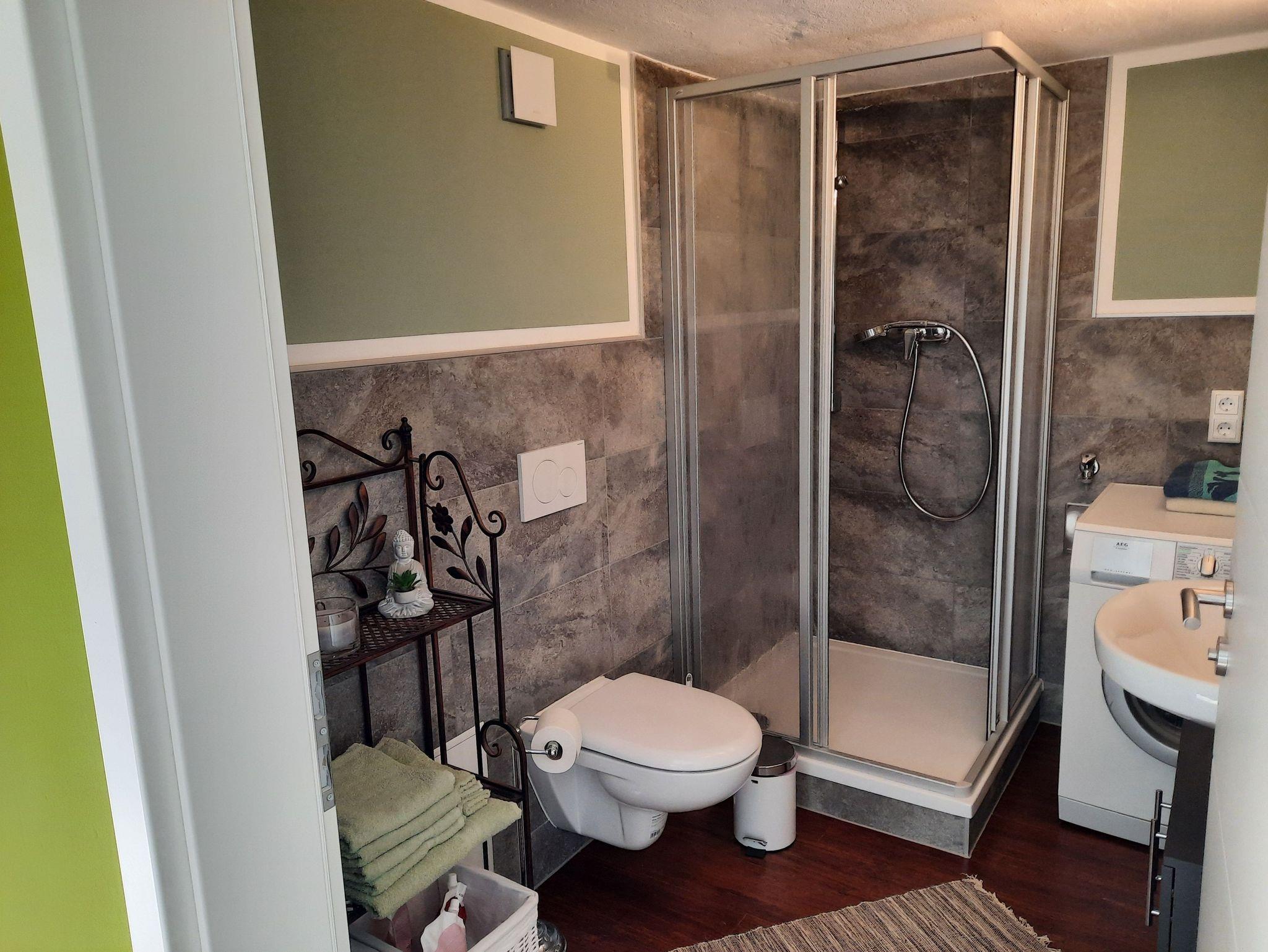 Es erwartet Sie eine vollausgestattete komfortable 50 m² Wohnung mit einem Parkpaltz direkt im Hausgarten.