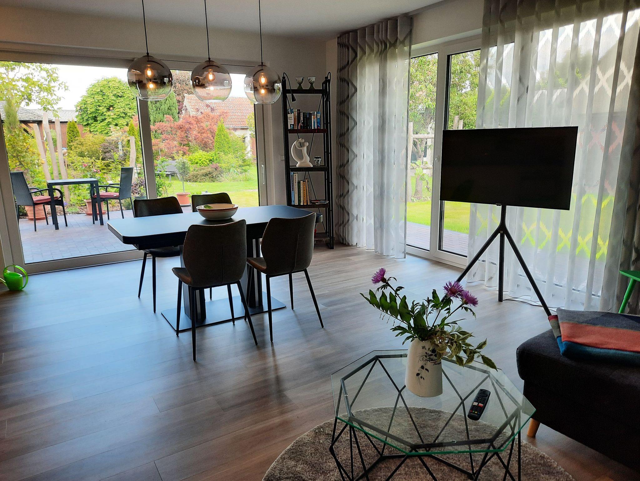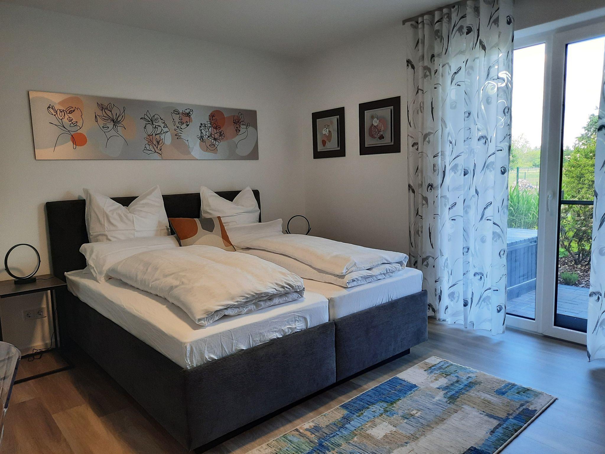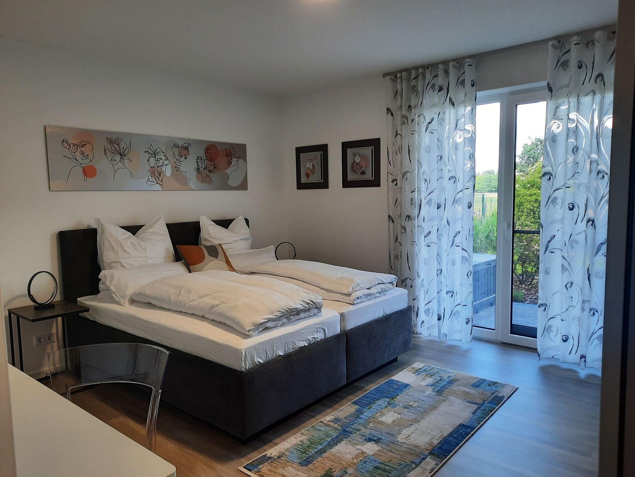 Beide Ferienwohnungen sind je 100 m groß, haben 2 Schlafräume und 2 Bäder. Eine Ferienwohnung ist mit Balkon und eine Ferienwohnung ist mit Terrasse. In dem großen Garten können Sie die Seele baumeln lassen und entspannen.