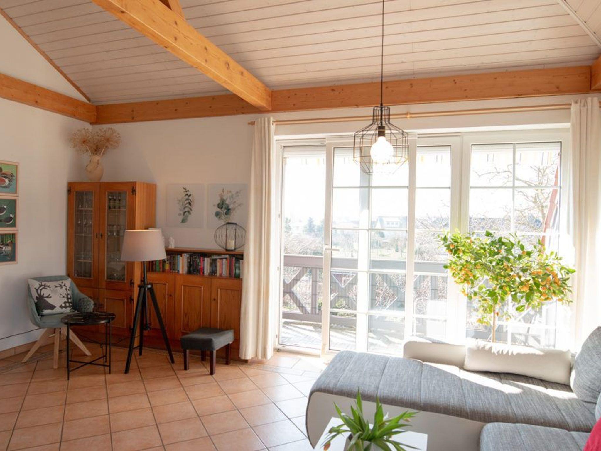 Eine weitere kleinere Ferienwohnung liegt ebenerdig und ist barrierefrei. Sie verfügt über einen gemütlichen Wohn-Essbereich, Schlafzimmer, TV, WLAN, moderner Küche, barrierefreies Bad mit Dusche, WC und Fön, Fußbodenheizung und eine Terasse.