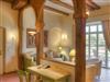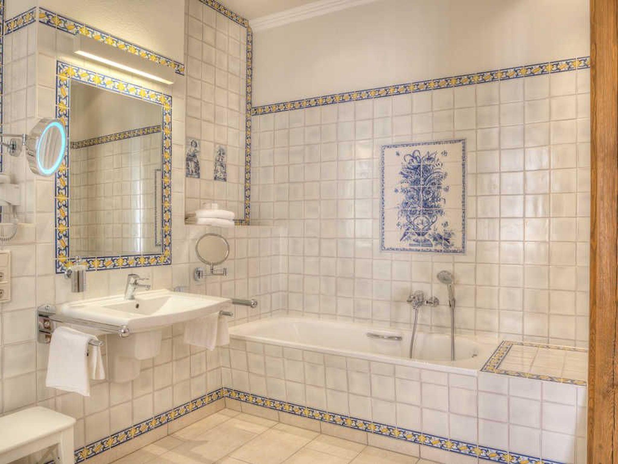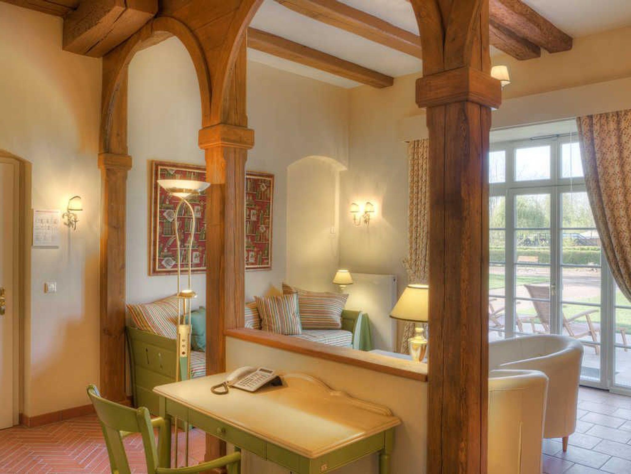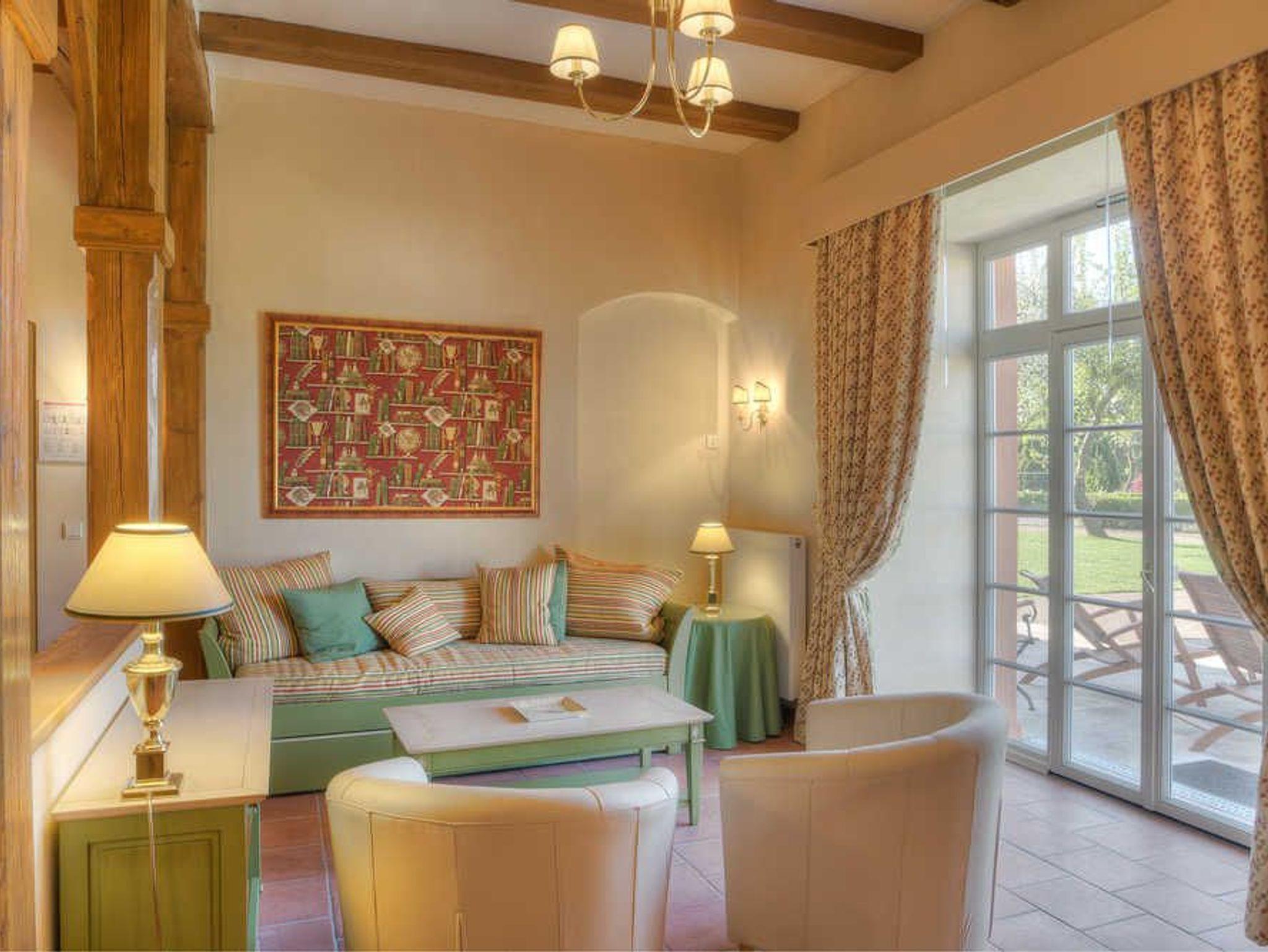 Großzügige Suite, im Landhausstil eingerichtet, mit eigenem Zugang und direkter Gartenanbindung. Garten- und Parkblick. Charmantes Wohnzimmer im ehemaligen Pferdestall mit Sitzecke, Schreibtisch und Sofabett als Aufbettungsmöglichkeit sowie Flatscreen und Minibar. Separates Schlafzimmer mit Doppelbett. Großes Bad mit Duschbadewanne, Handtuchwärmer, reichlich Ablagefläche. Vom Wohnzimmer aus direkter Zugang auf die Terrasse und in den Garten.