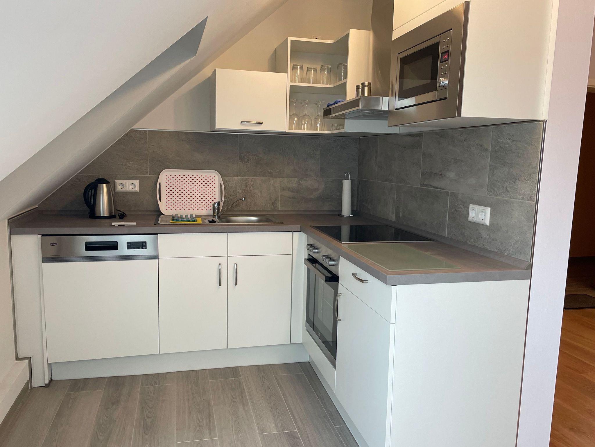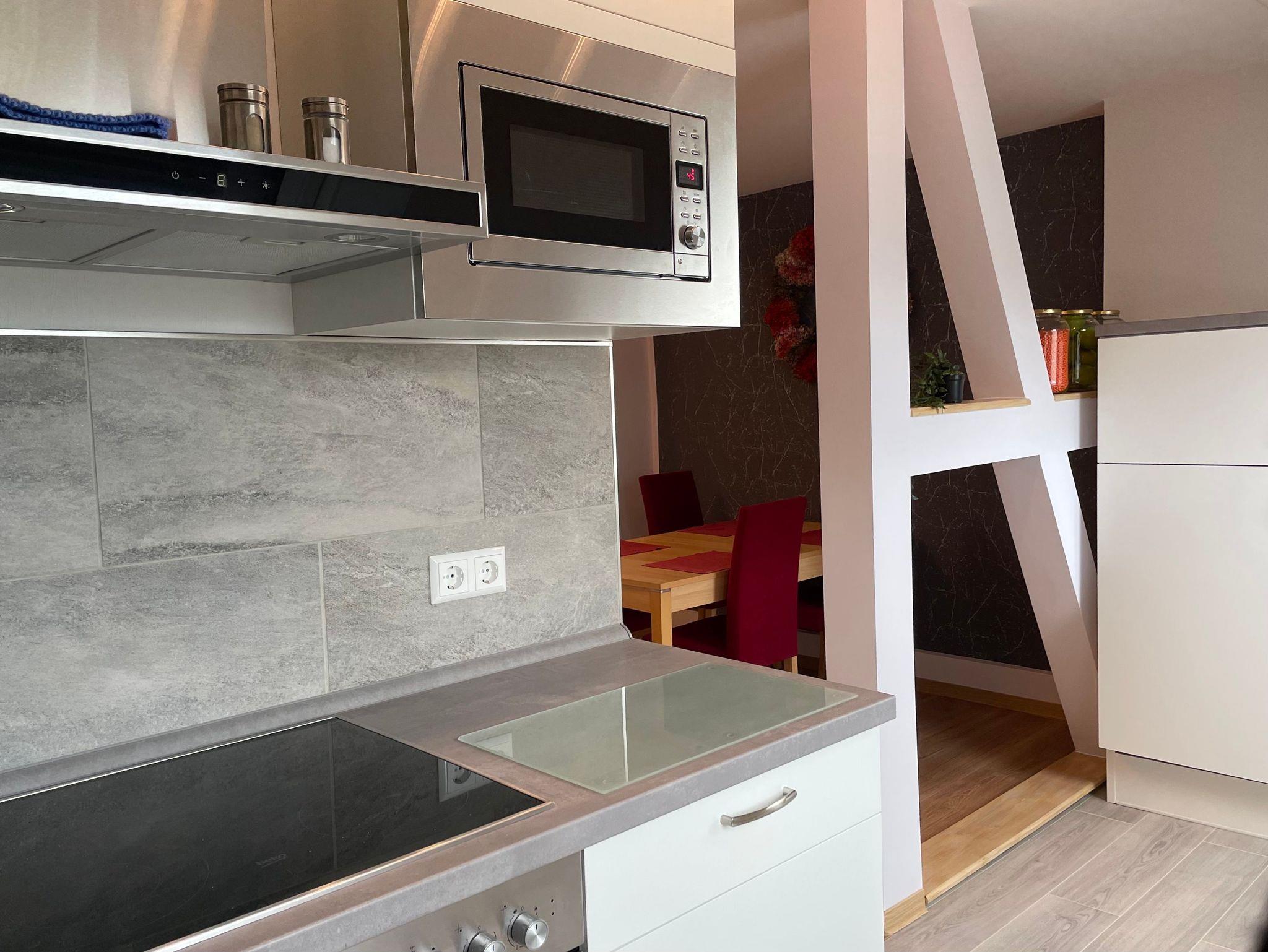 Die offene Küche zum Wohnraum hat ein vollausgestattetes Equipment für bis zu vier Personen.