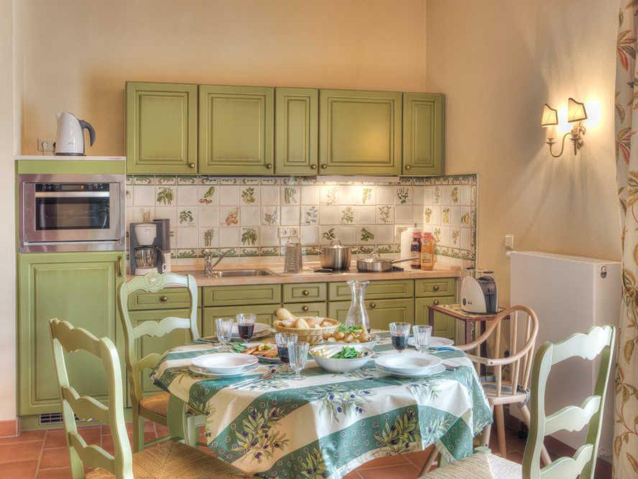 Apartment, bis 5 Personen. Wohnbereich mit offener Küche, zwei Schlafzimmer, Bad. Direkter Gartenzugang.