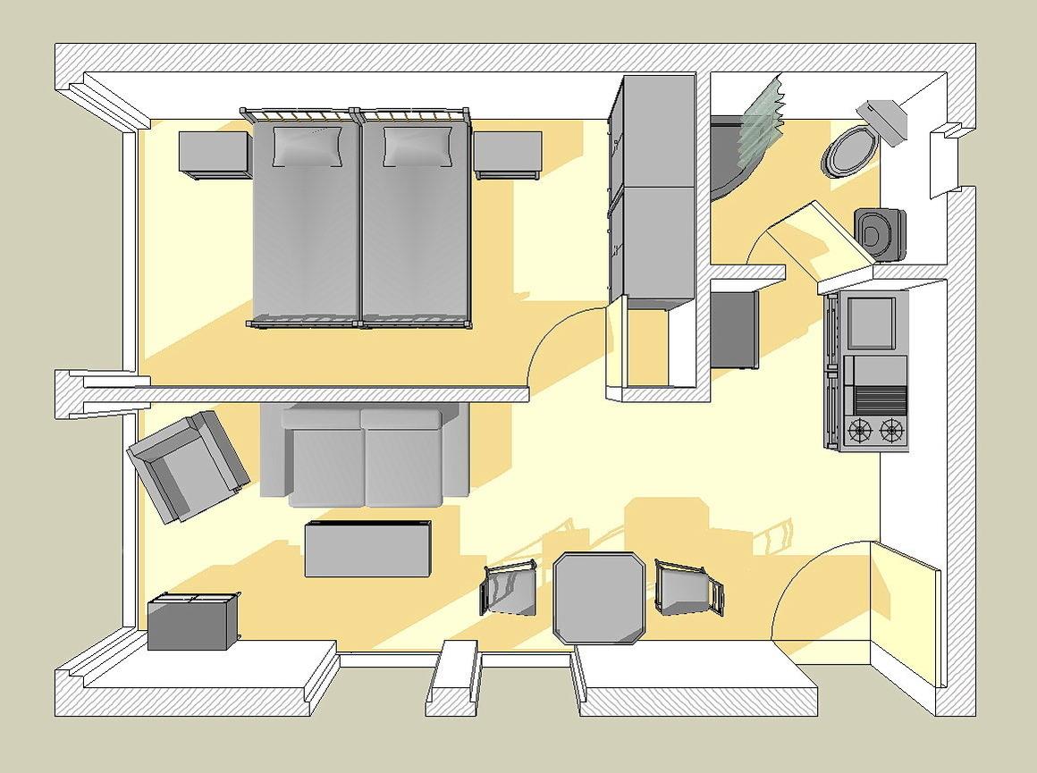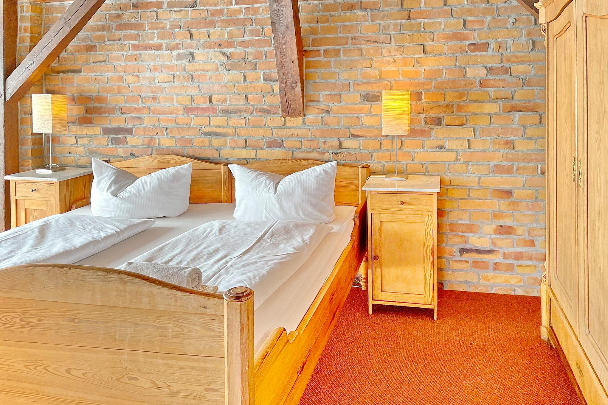 Die Ferienwohnung Rüster befindet sich in der 1. Etage. Sie ist unterteilt in Wohnzimmer mit Küchenzeile und einem separaten Schlafzimmer mit einem Doppelbett. Das Bad ist mit einer Dusche und WC ausgestattet.