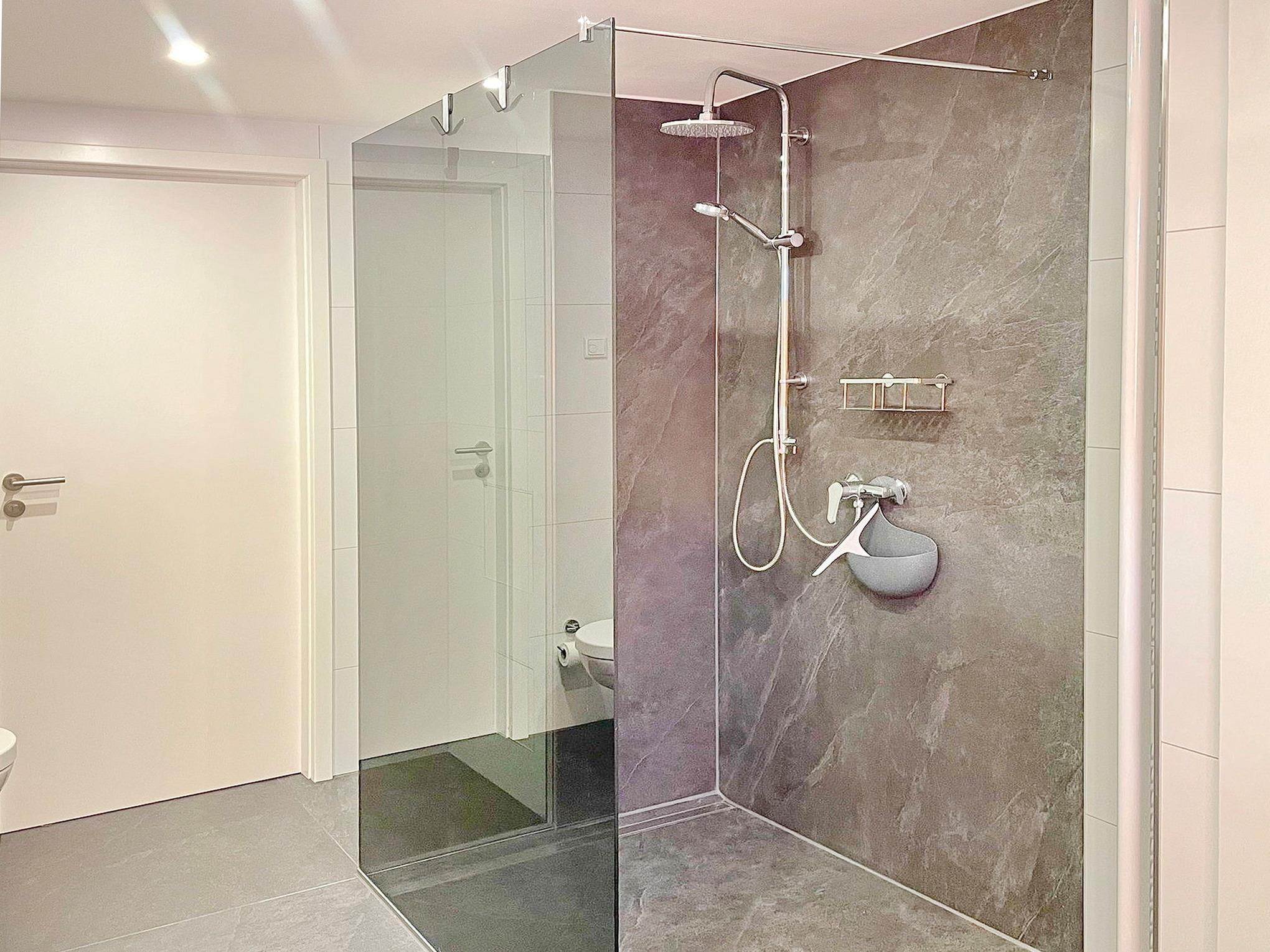 Badeværelse med bruser og badekar