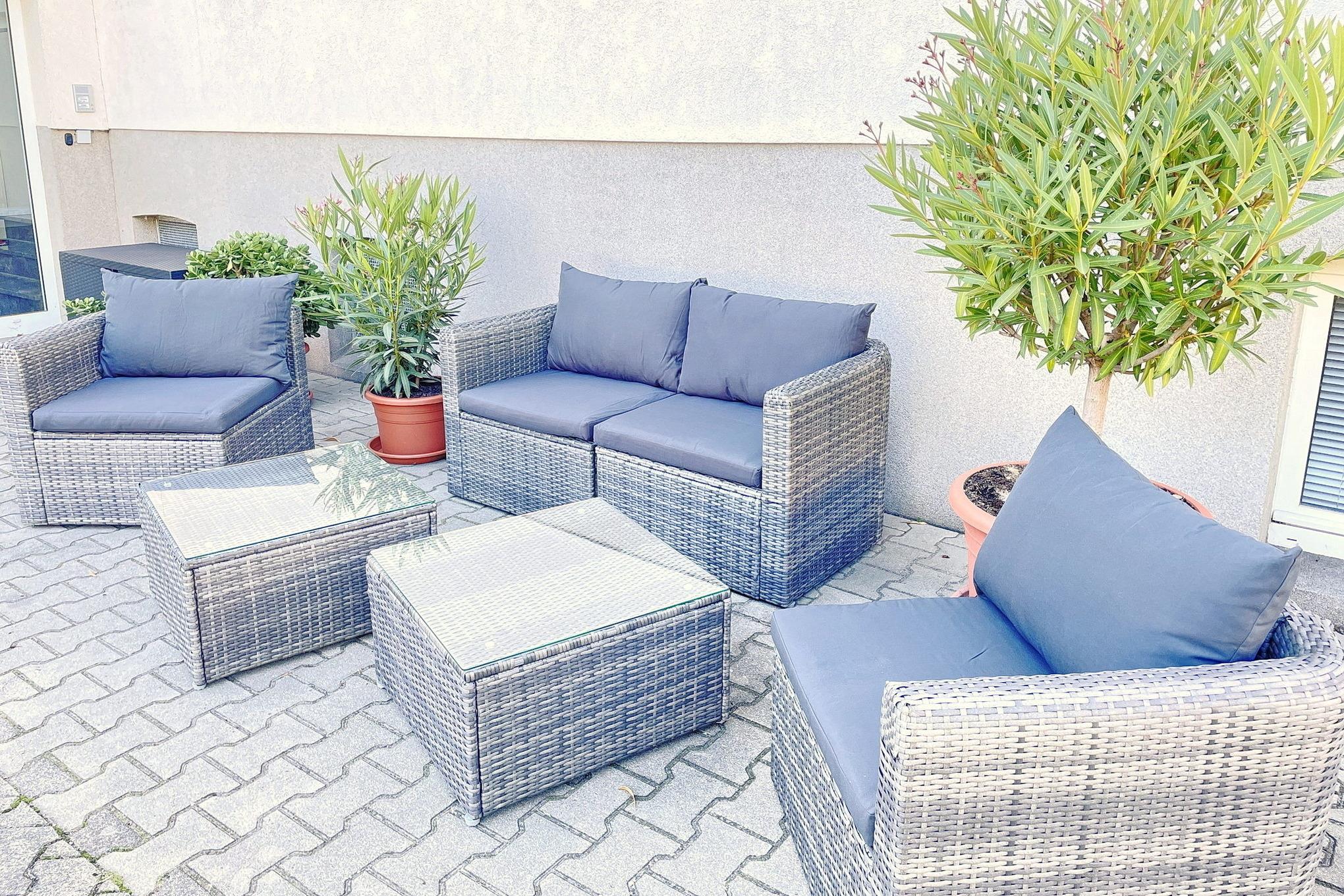 Sie kommen mit einer großen Familie oder mit Freunden, dann sind Sie hier genau richtig. Sie haben genug Platz, ein Esszimmer mit großem Tisch und kochen in einer voll ausgestatten Küche. Das große Sofa für die gemütlichen Stunden und die zwei sehr großen Badezimmer runden die Annehmlichkeiten ab.