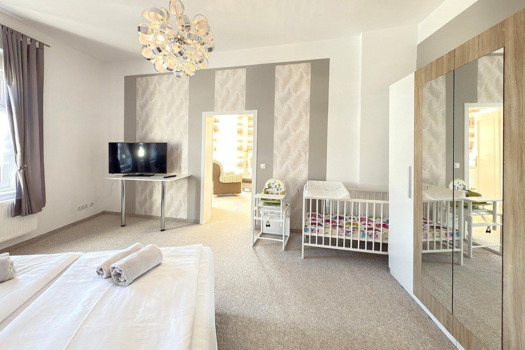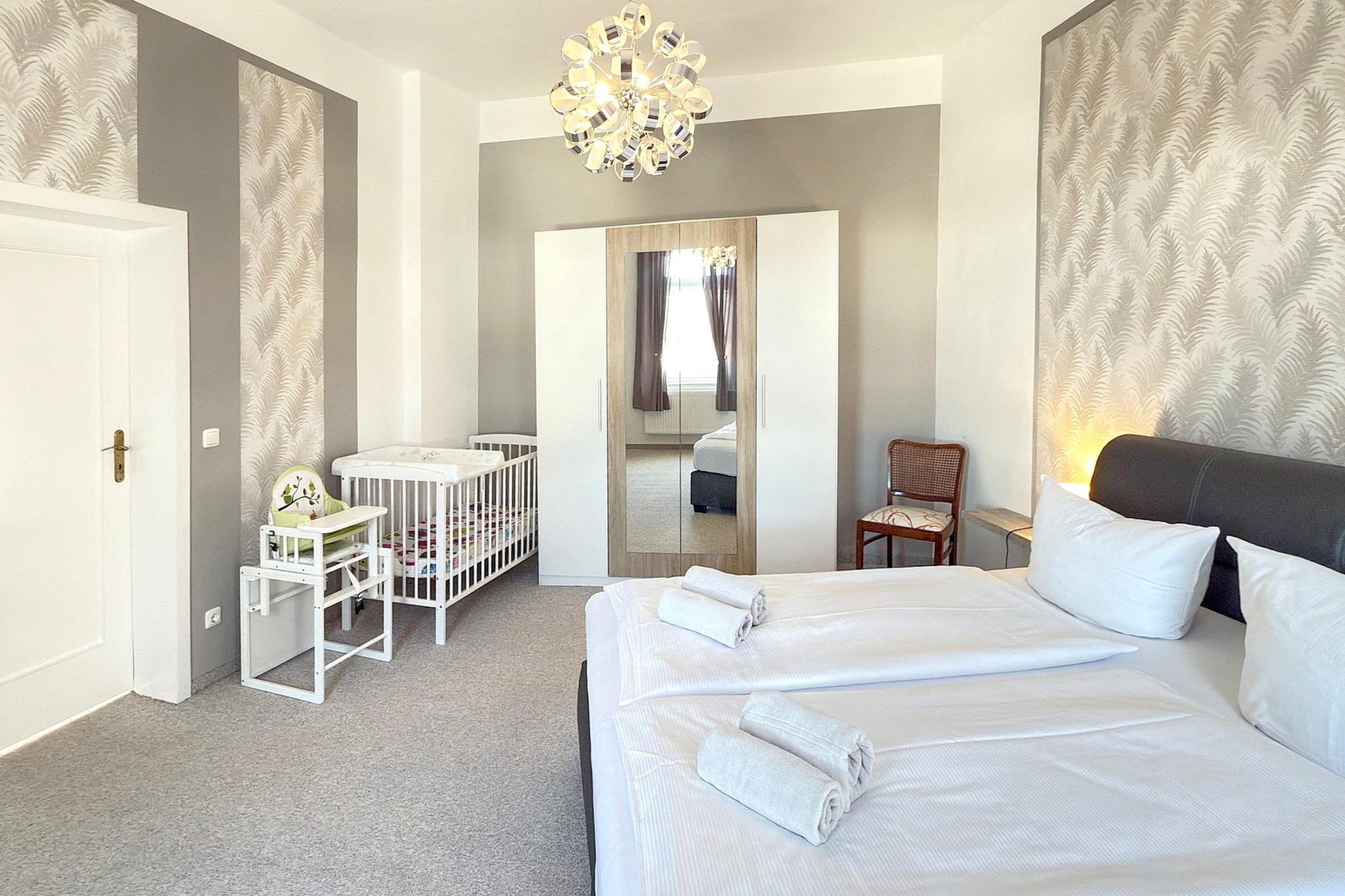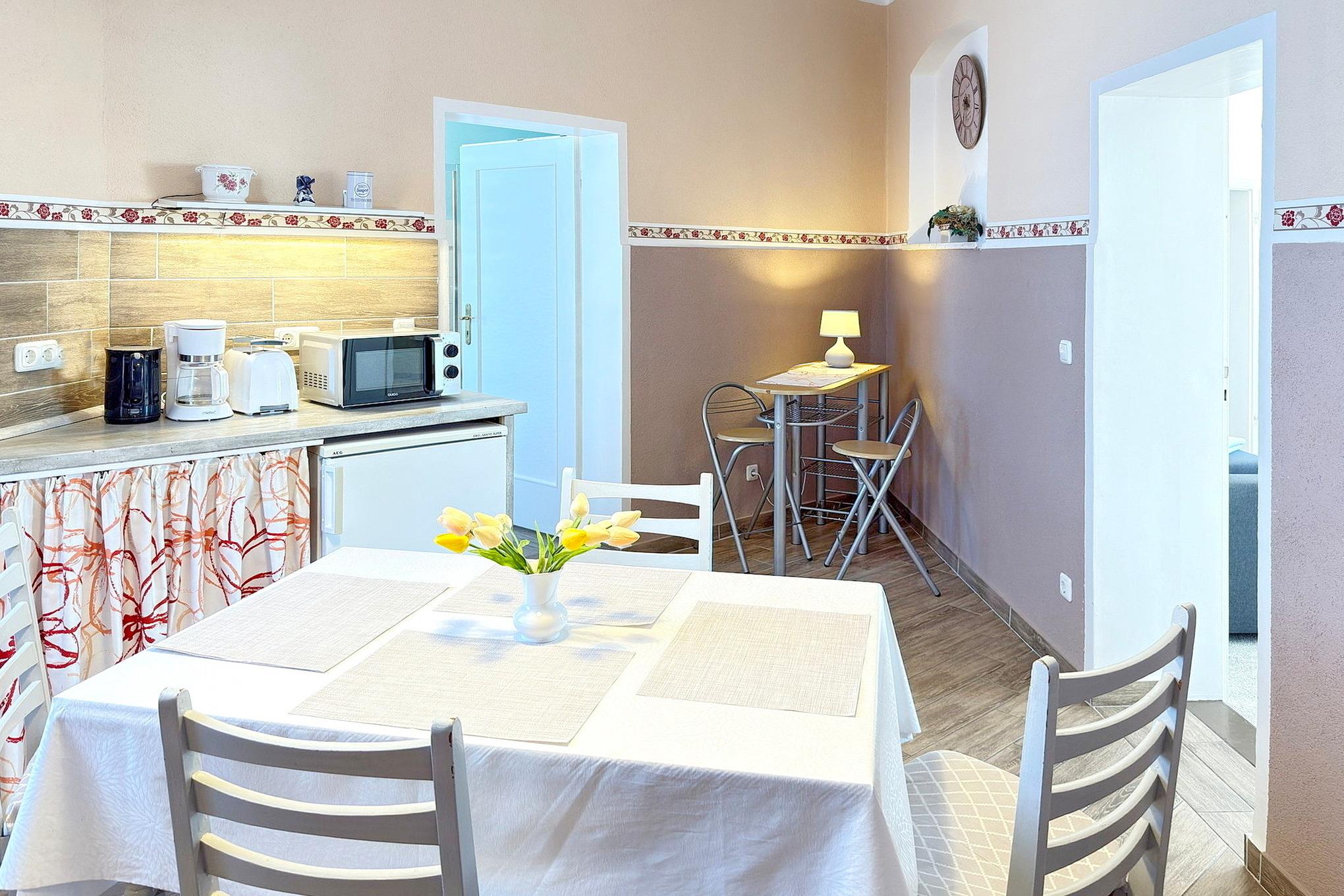 Die Ferienwohnung befindet sich auf einer gesamten Etage des Hauses, insgesamt 110 m², mit hohen Fenstern die viel Licht reinlassen. Sie ist sehr geräumig und bietet viel Bewegungsfreiheit. Jedes Zimmer ist separat und sehr groß. Das Haus liegt zentral in der Lübbenauer Vorstadt. Sie laufen ca. 15 Minuten bis ins Zentrum der Altstadt und 10 Minuten bis zum Bahnhof. Die Fahrräder und Motorräder können überdacht abgestellt werden. Im Innenhof haben Sie die Möglichkeit zum Enstpannen in der Sitzecke und zum gemütlichen Beisammensein mit Grill und einem kleinen hübsch angelegten Garten.