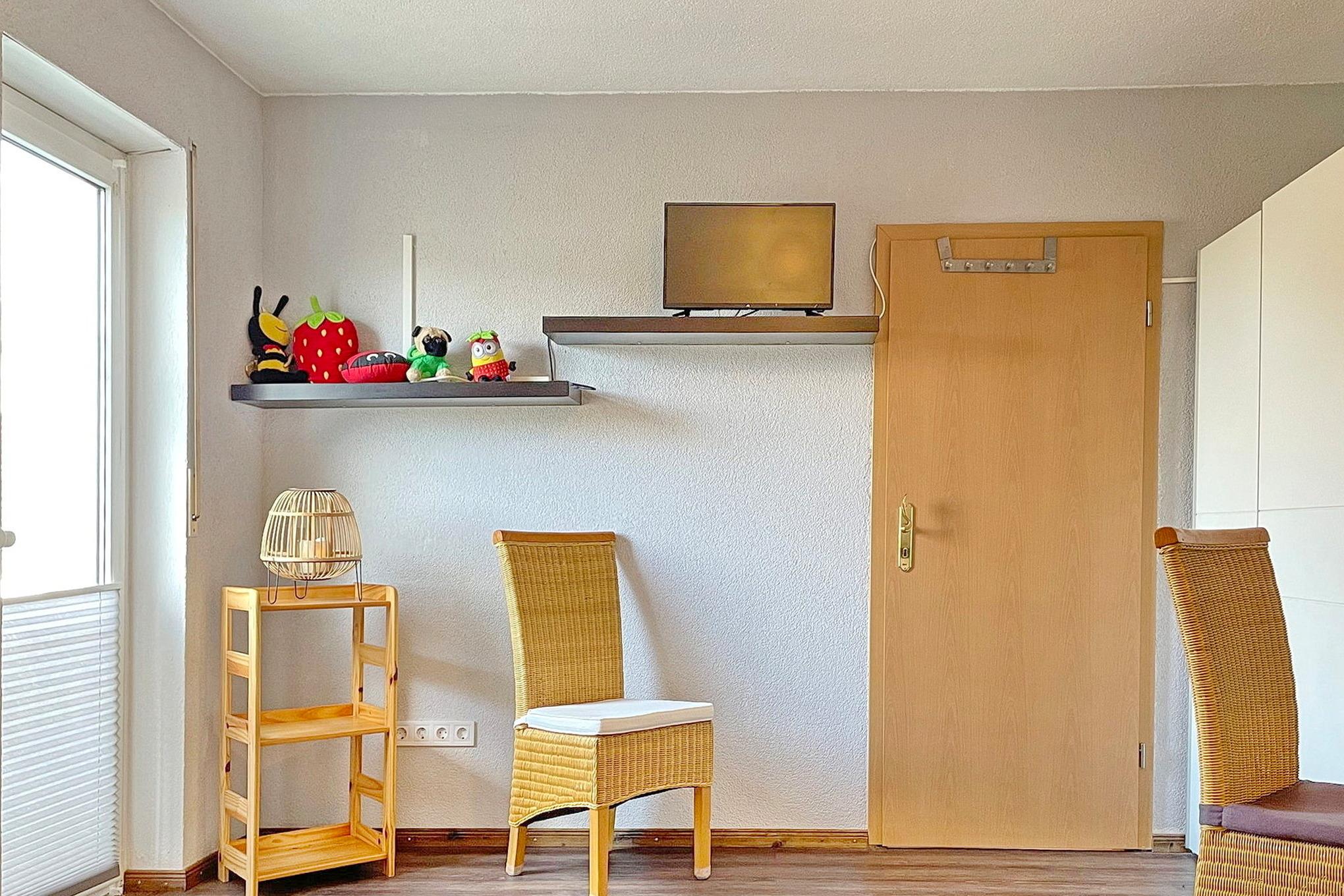 Die Ausstattung umfasst einen Fahrradabstellplatz und einen Parkplatz direkt vor dem Haus. Auch WLAN/Internet steht den Gästen zur Verfügung. Auf der Terrasse können Sie die ruhige Umgebung genießen und auch Ihr Hund ist in der Ferienwohnung herzlich willkommen. Für Familien mit kleinen Kindern sind ein Kinderhochstuhl und ein Kinderreisebett inklusive.