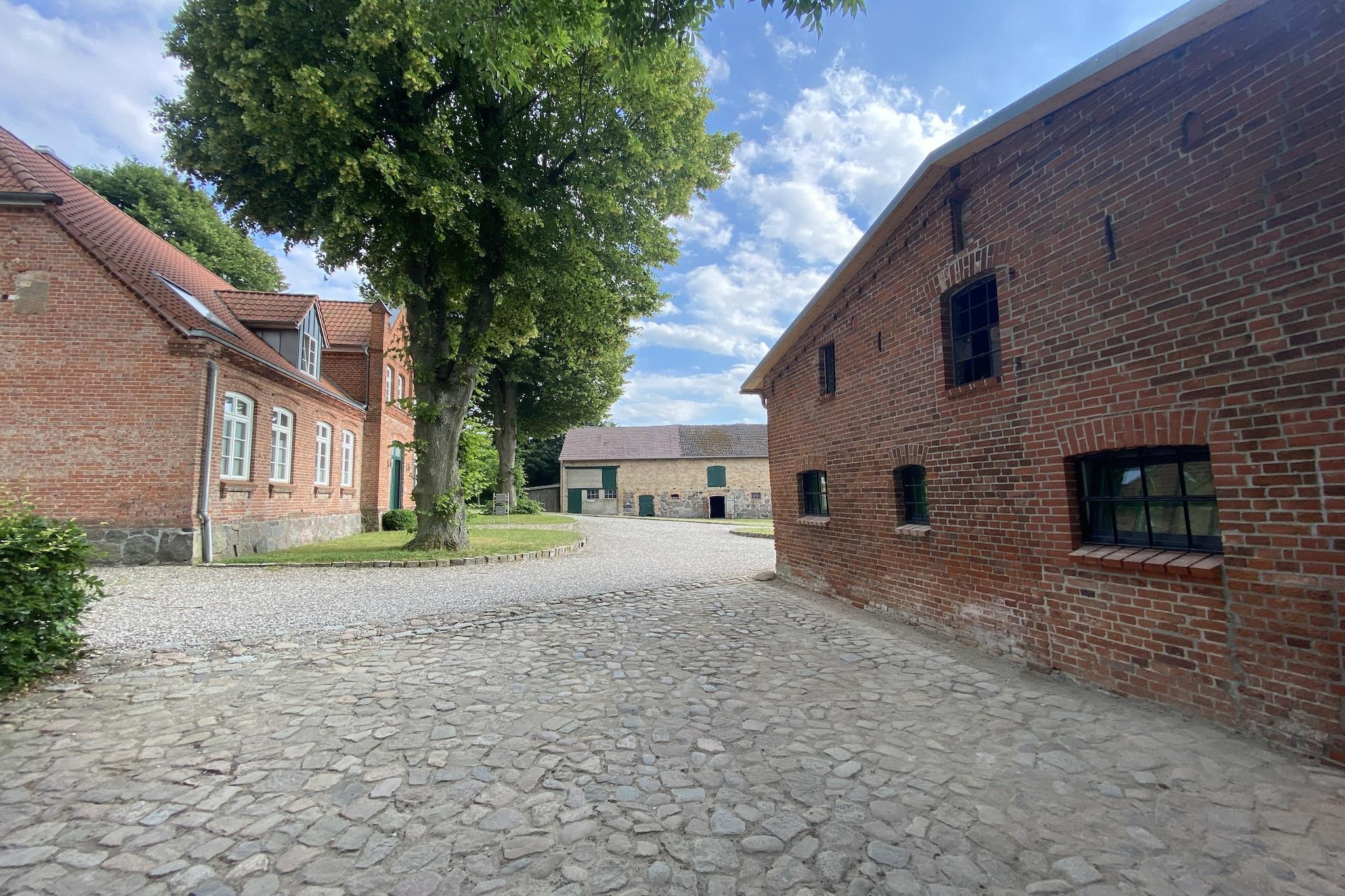 Gemt i den naturskønne landsby Lübberstorf tilbyder denne 4-værelses ferielejlighed et roligt tilflugtssted på landet nær hansestaden Wismar. Herregårdens lejlighed på første sal er omgivet af 10.000 m² frodig have og har en hyggelig stue/spisestue med pejs, aircondition og et fuldt udstyret køkken. Det rummelige badeværelse, master bedroom, to børns soveværelser og en legende hems gør den ideel til familier. Gæsterne kan nyde direkte adgang til Neuklostersees svømmeområde kun 1,5 km væk, og maleriske stier gennem marker og skove. Den charmerende hems, der nås via en stejl trappe, er perfekt for børn at lege på, mens voksne slapper af i det private udendørs opholdsområde. Nærliggende attraktioner omfatter Sternberger Lake District og kystbyer. Væsentlige bekvemmeligheder er inkluderet: gratis Wi-Fi, alle energiomkostninger og parkering. Dette varme og indbydende hjem er en del af en restaureret bondegård og kombinerer rustik charme med moderne bekvemmeligheder, hvilket gør det til en fredelig base for naturelskere.