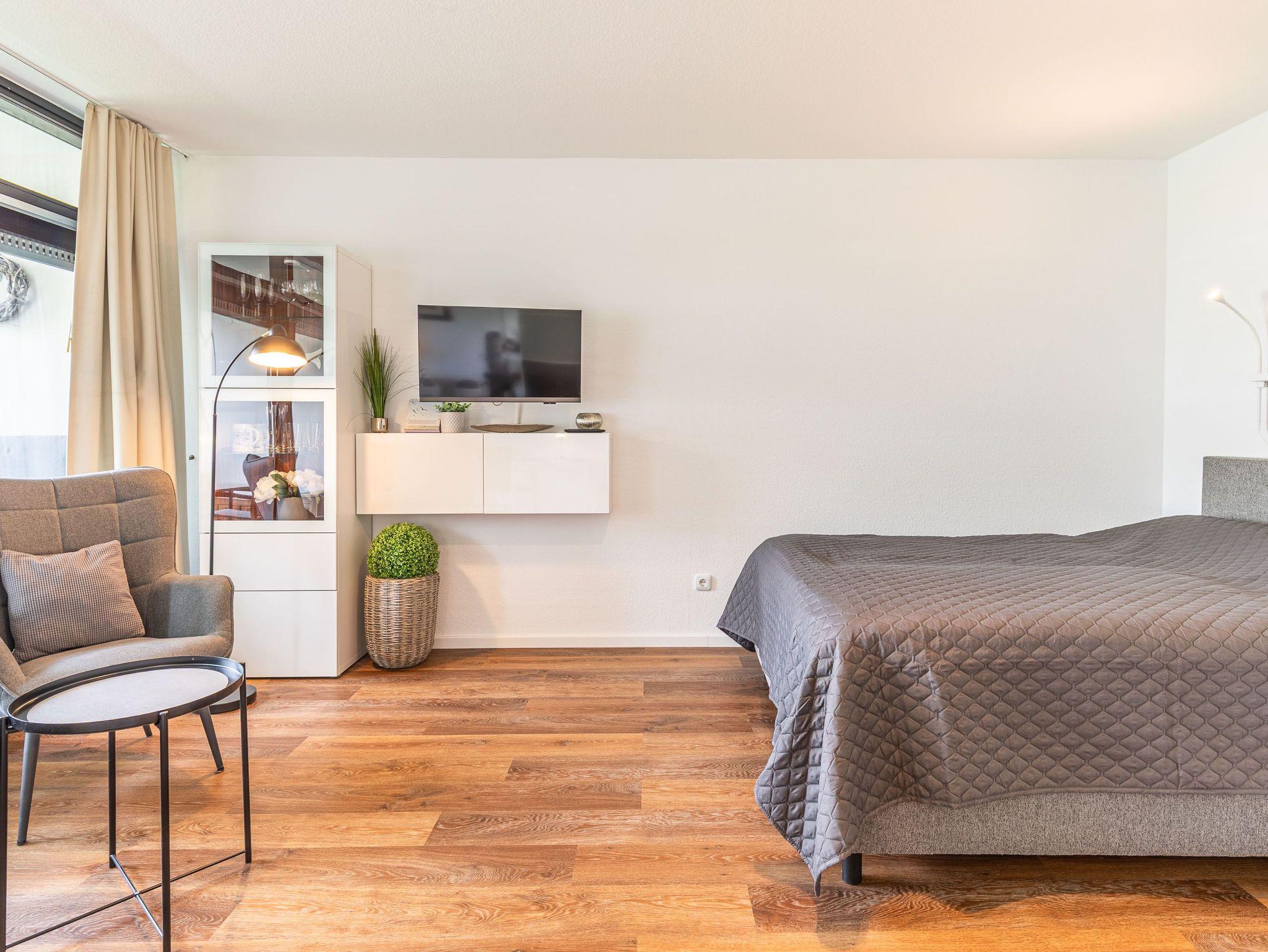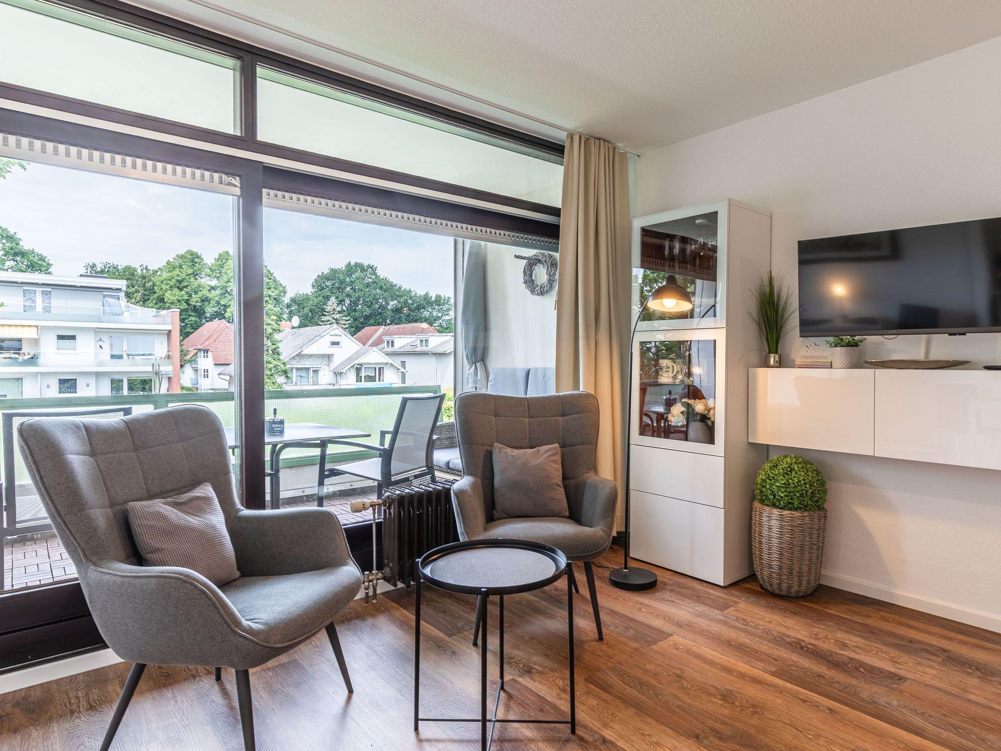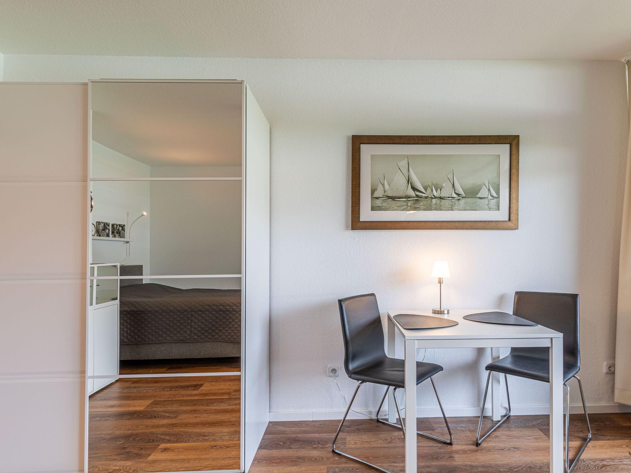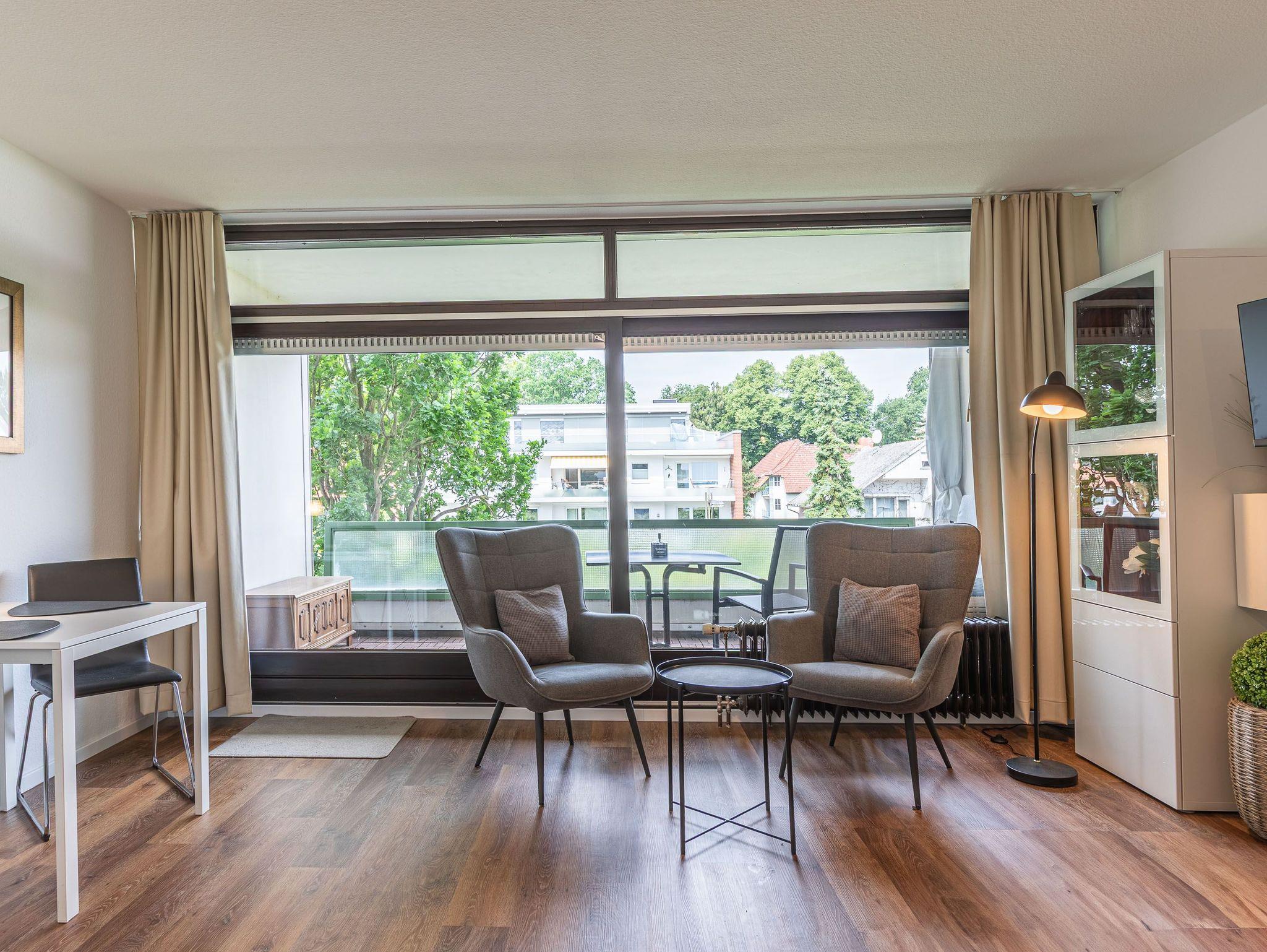 1-Zimmer-Ferienwohnung, 2. OG, ca. 36 m² mit sonnigem Westbalkon.