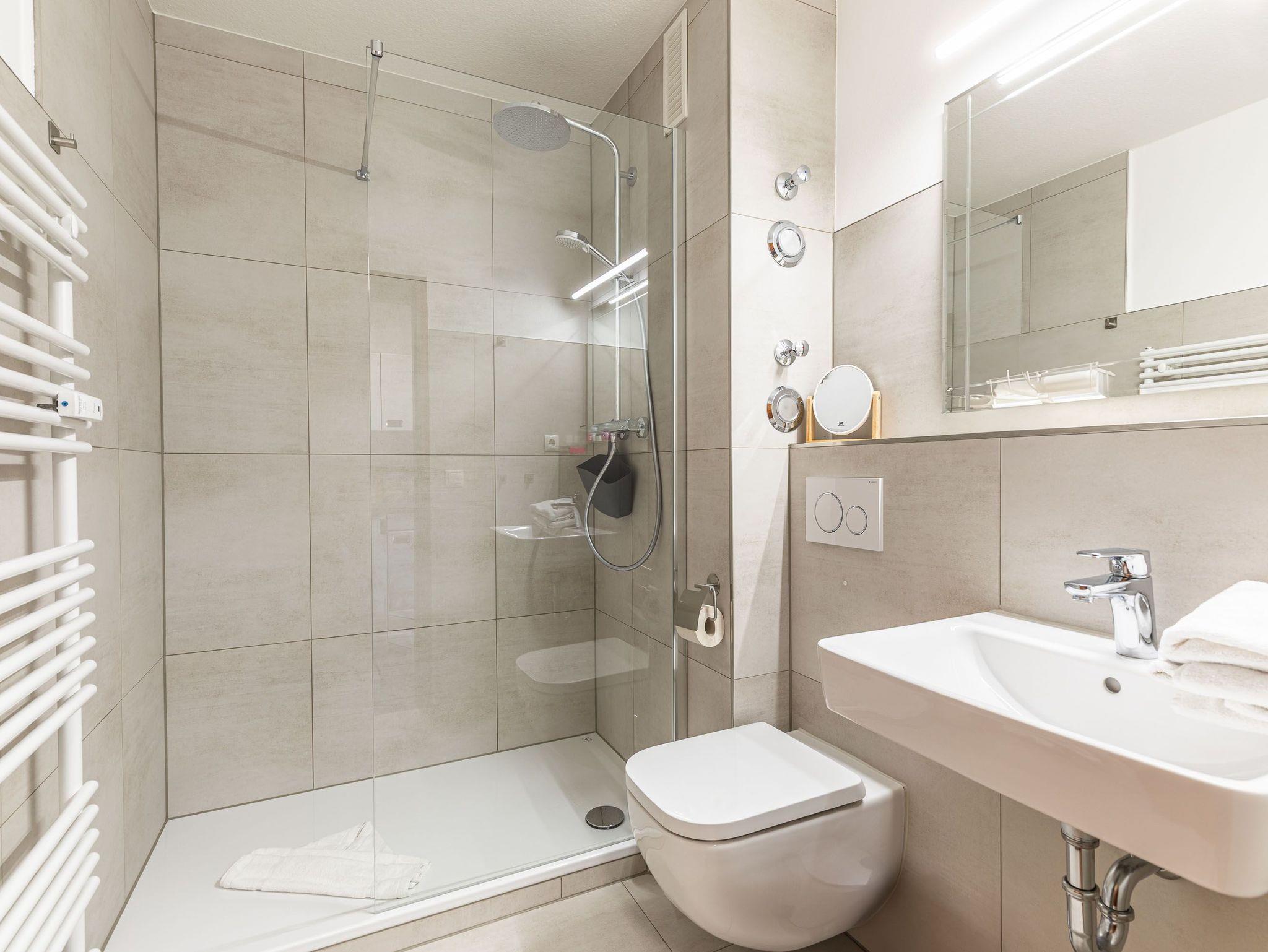 Balkon, Küchenzeile, Duschbad/WC, Fön, (Waschmaschine und Trockner im Haus), TV, Toaster, kostenl. W-Lan, Aufzug, inkl. Tiefgaragenstellplatz (Einfahrtshöhe: 1,85 m).