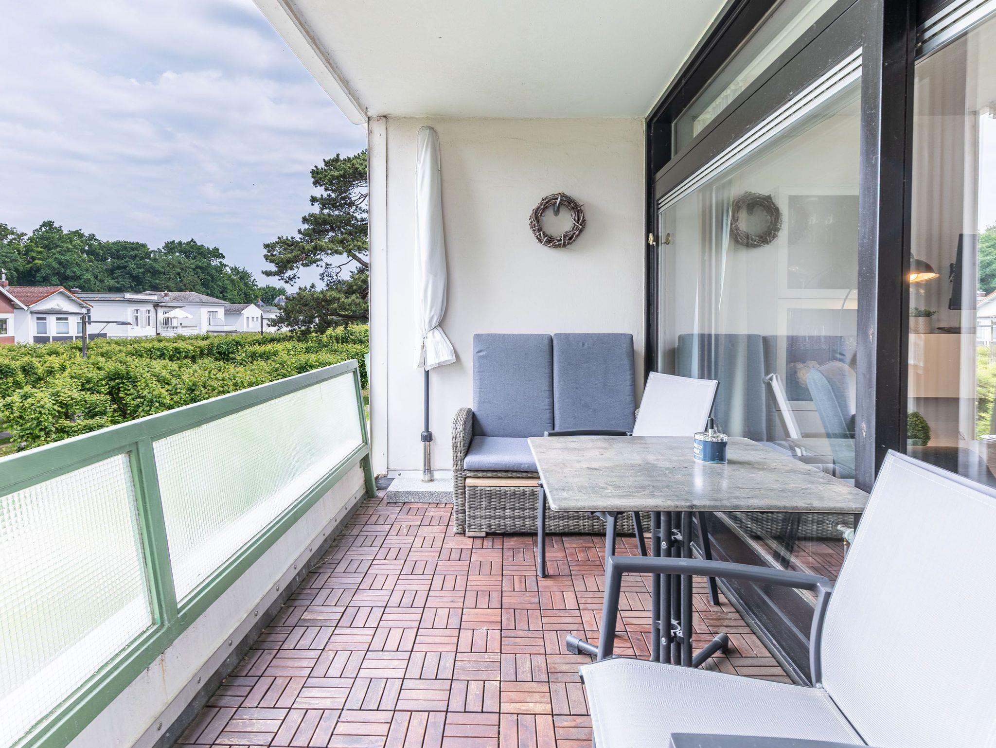 Sie möchten Ihren Badeurlaub unmittelbar am Travemünder-Strand verbringen? Dann ist dieses frisch renovierte und neu eingerichtete Appartement bestens für Sie geeignet! Der helle und modern eingerichtete Wohnraum ist mit 2 komfortablen Sesseln mit Tisch, sowie mit einer schönen Essecke bestehend aus Esstisch und 2 gemütlichen Stühlen ausgestattet. Das Wohnzimmer lässt sich zudem komplett verdunkeln. Des Weiteren finden Sie einen Kleiderschrank mit großer Spiegel-Schiebetür und ein komfortables Boxspringbett (160 cm x 200 cm) vor. Die Küchenzeile ist im Flur integriert, von dem Sie auch das moderne Badezimmer mit Walk-In Dusche, Waschbecken, WC und Handtuchheizkörper erreichen. Wohnraum und Flur sind mit einem modernen Design-Fußbodenbelag in Eichenoptik ausgestattet, das Bad ist gefliest. Der sonnige Westbalkon lädt mit seinen gemütlichen Lounge Möbeln zum Relaxen ein. Diese schicke Ferienwohnung vermittelt schnell eine vertraute Umgebung, in der Sie sich sofort wohlfühlen und Ihren Strandurlaub genießen können.