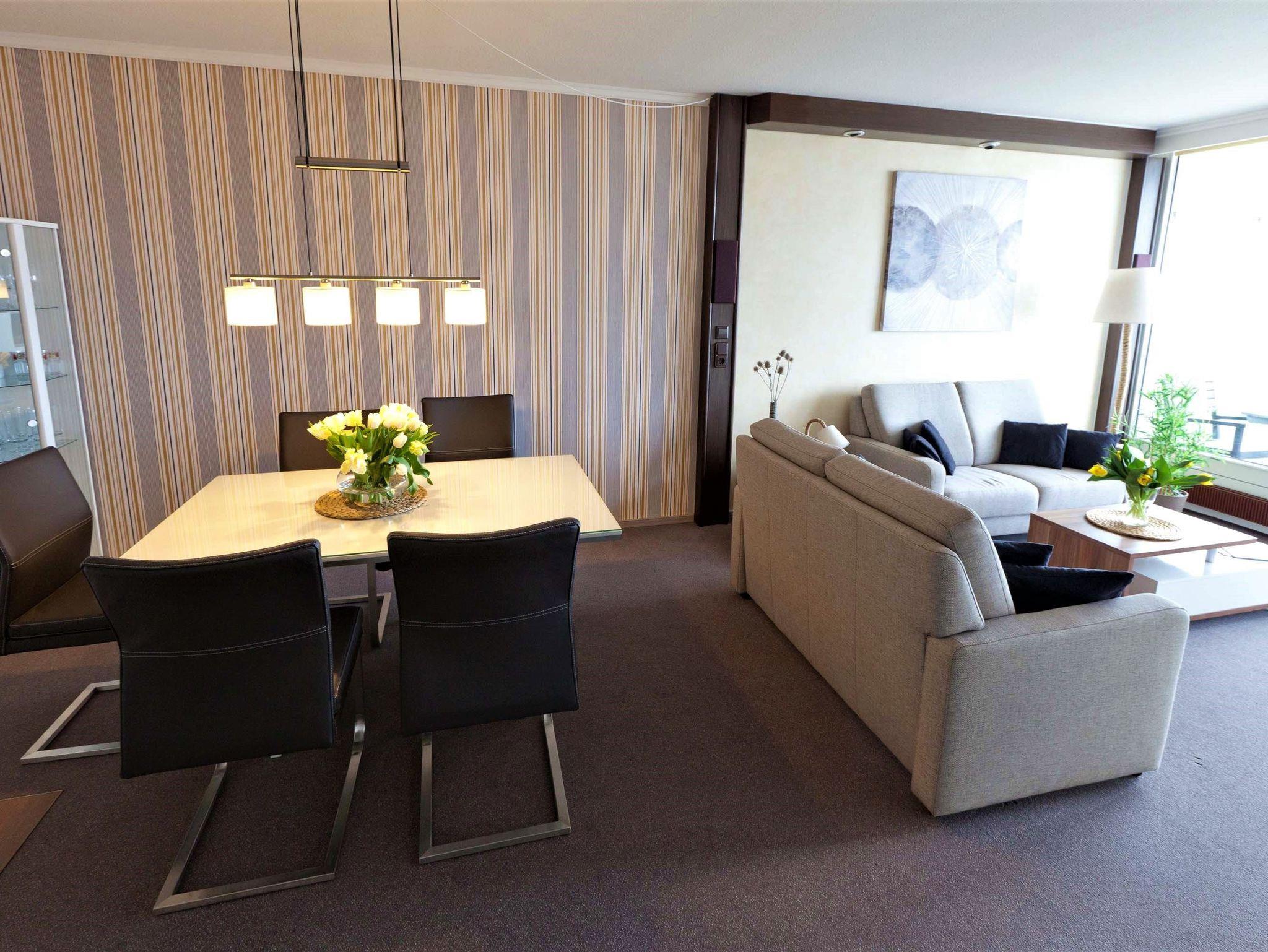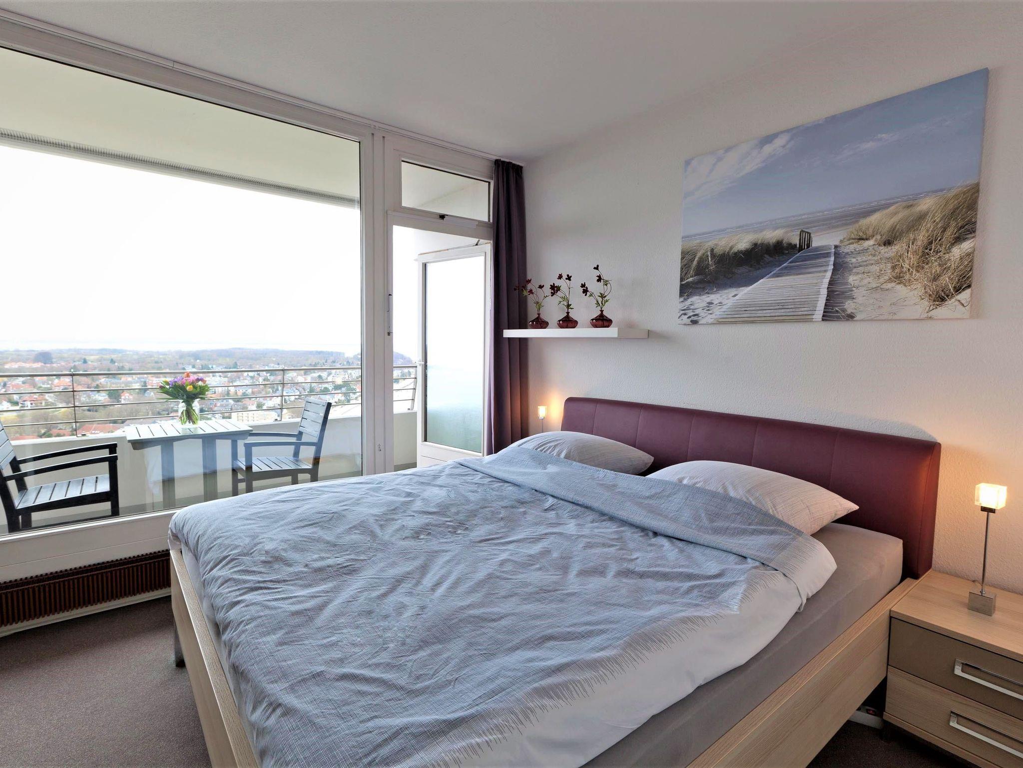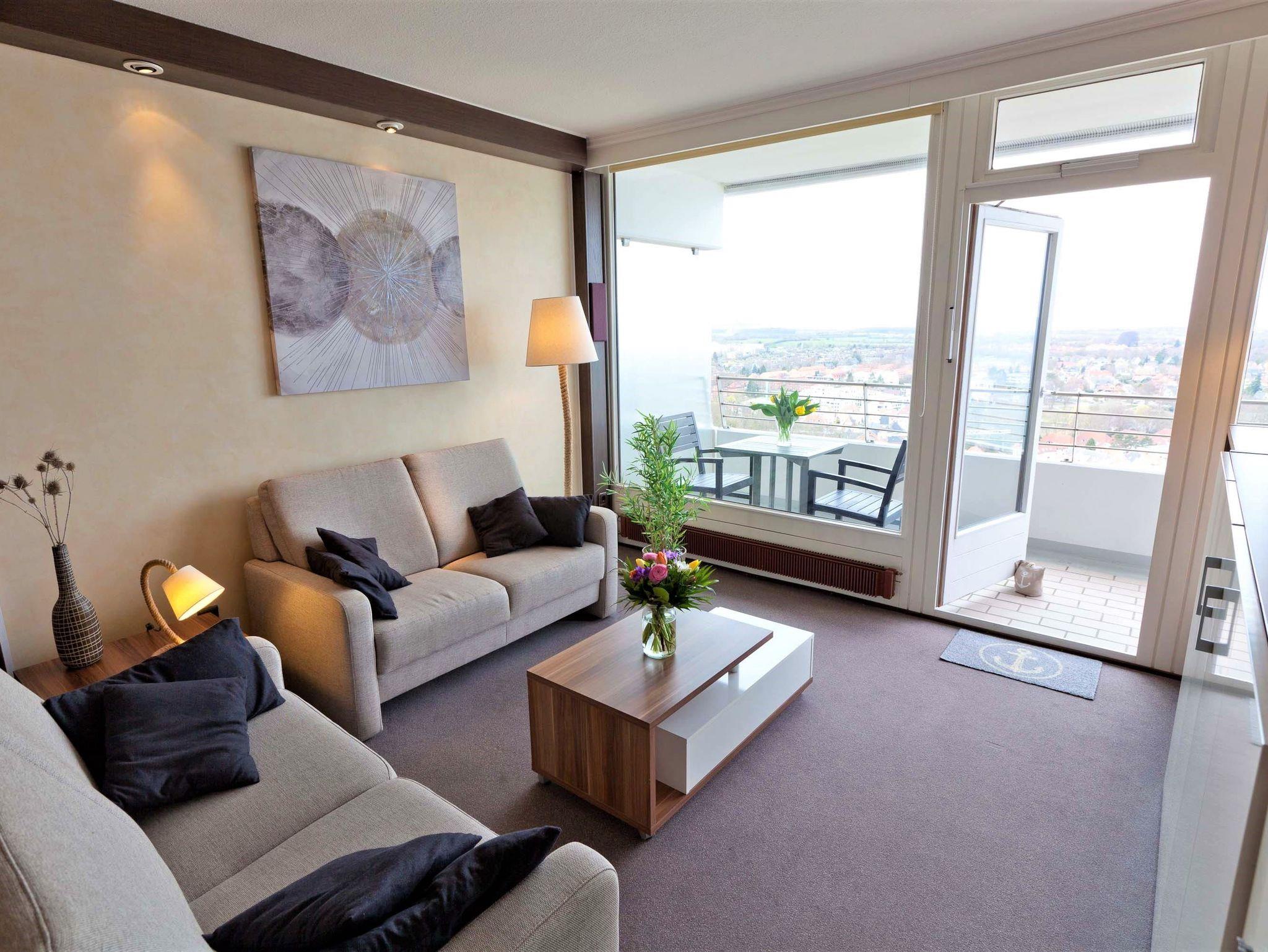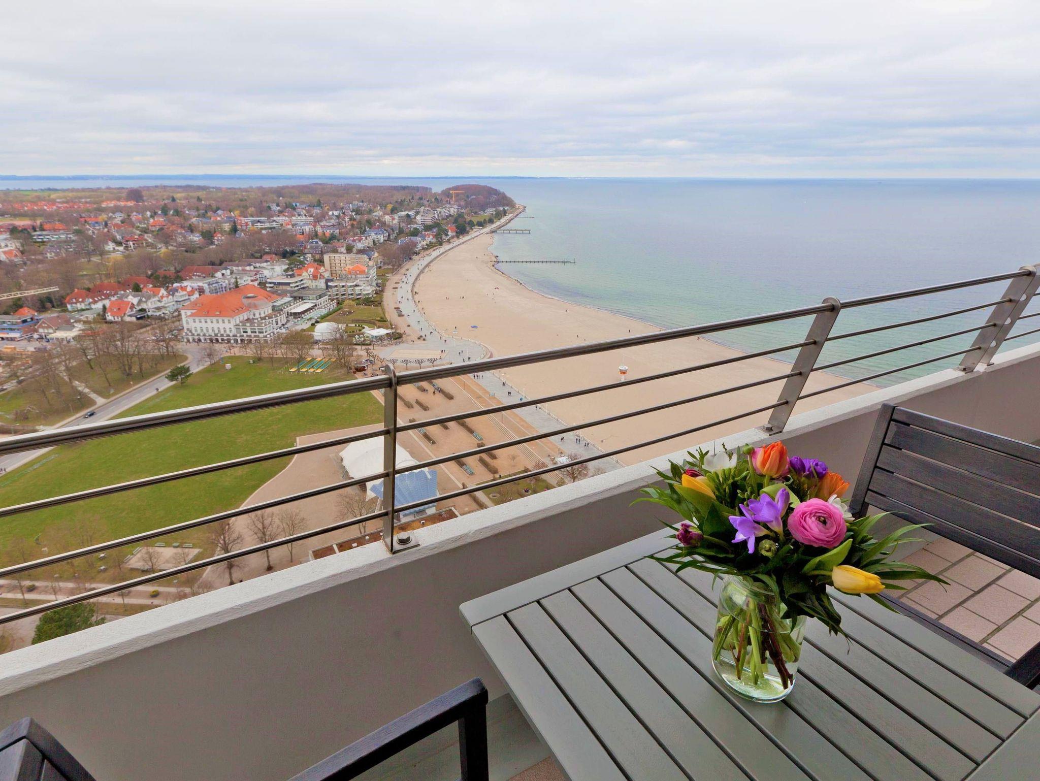 Dieses Appartement hat einen besonderen Erholungswert an Ausstattung und Bequemlichkeit. Es wurde im Jahr 2025 frisch renoviert, was zusätzlich zur modernen Atmosphäre beiträgt. Von der Eingangstür erreichen Sie den Flur, von dem das moderne Duschbad abgeht. Durch eine Glastür gelangen Sie in den schönen Wohnraum, der in warmen Erdtönen gehalten ist. Dieser ist mit einer zweiteiligen Couchgarnitur mit Tisch, einer Schrankwand mit integriertem Schrankbett (145 cm x 190 cm) sowie mit einer gemütlichen Essecke neben der offenen Einbauküche eingerichtet. Vom Wohnzimmer erreichen Sie ein kleines, zusätzliches Zimmer (ähnlich einer Kajüte) mit einem Einzelbett (80 cm x 190 cm). Das lichtdurchflutete Schlafzimmer besteht aus einem bequemen Doppelbett (2x 90 cm x 200 cm) und einem großzügigen Kleiderschrank. Vom Wohn- und Schlafraum erreichen Sie den großen Balkon, um den traumhaften Ausblick auf die Ostsee, die Strandpromenade und die Lübecker Bucht zu genießen.