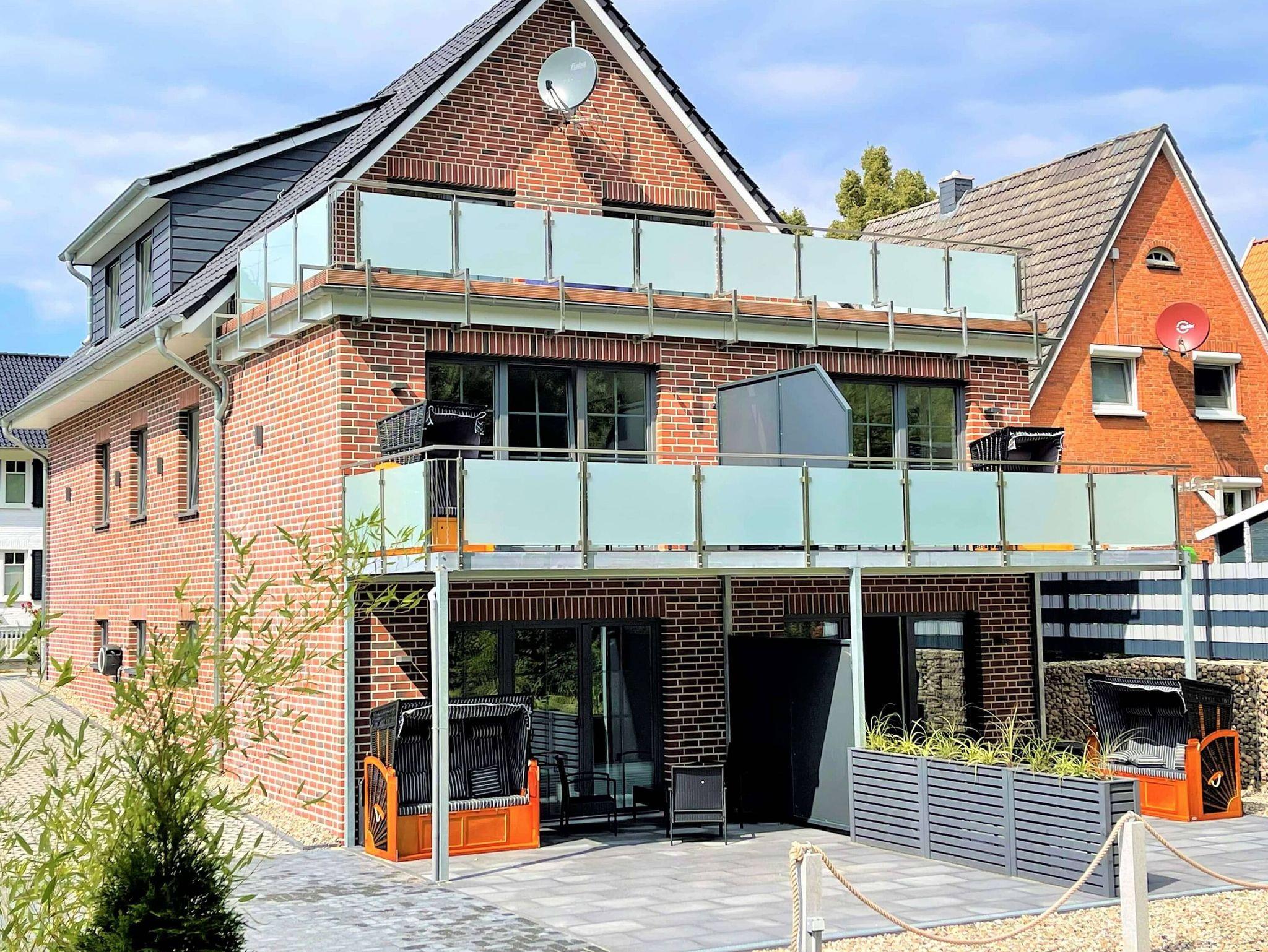 Freuen Sie sich auf diese exklusive Ferienwohnung mit reichlich Komfort. Die Ferienwohnungen im Haus Aaron sowie das Appartementhaus wurden im Jahr 2022 neu erbaut. Im hellen, und modern eingerichteten Wohnzimmer erwartet Sie eine gemütliche Couchgarnitur, einen Esstisch mit eleganten Stühlen, sowie eine komfortable offene Küche mit einem Geschirrspüler. Vom Wohnzimmer gelangen Sie auf den große Sonnen-Balkon mit Ihrem privaten Strandkorb. Vom Flur dieser modernen Ferienwohnung erreichen Sie in das große Schlafzimmer, welches über einen geräumigen Kleiderschrank sowie zwei Einzelbetten (90cmx200cm), diese können aber auch auseinander geschoben werden, verfügt. Im zweiten Schlafzimmer erwartet Sie ebenfalls ein Kleiderschrank und sowie ein Doppelbett (160 cm x 200 cm). Die Ferienwohnung verfügt zusätzlich über zwei moderne Bäder, eins mit Dusche [&] WC und das zweite Badezimmer mit einer Badewanne [&] WC. Genießen Sie Ihren Urlaub in tollen Ambiente und mit exklusiver Ausstattung. Ihren PKW können Sie auf dem großen Grundstück auf der privaten Parkfläche abstellen. Eine Wallbox zum laden von E-Autos ist ebenfalls auf dem Gelände vorhanden (gegen Gebühr buchbar).
