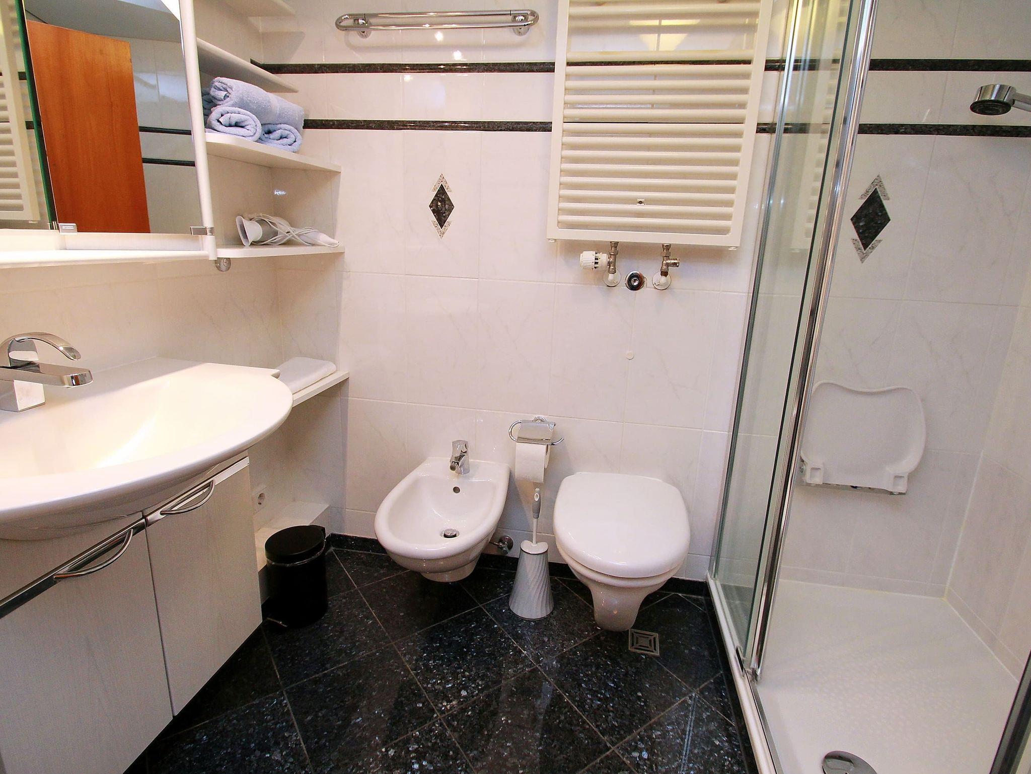 Balkon, Küche, Geschirrspüler, Mikrowelle, Duschbad/WC, Fön, 2x TV, Stereoradio mit CD, kostenl. W-Lan, Aufzug, inkl. Tiefgaragenstellplatz (Einfahrtshöhe: 1,85 m).