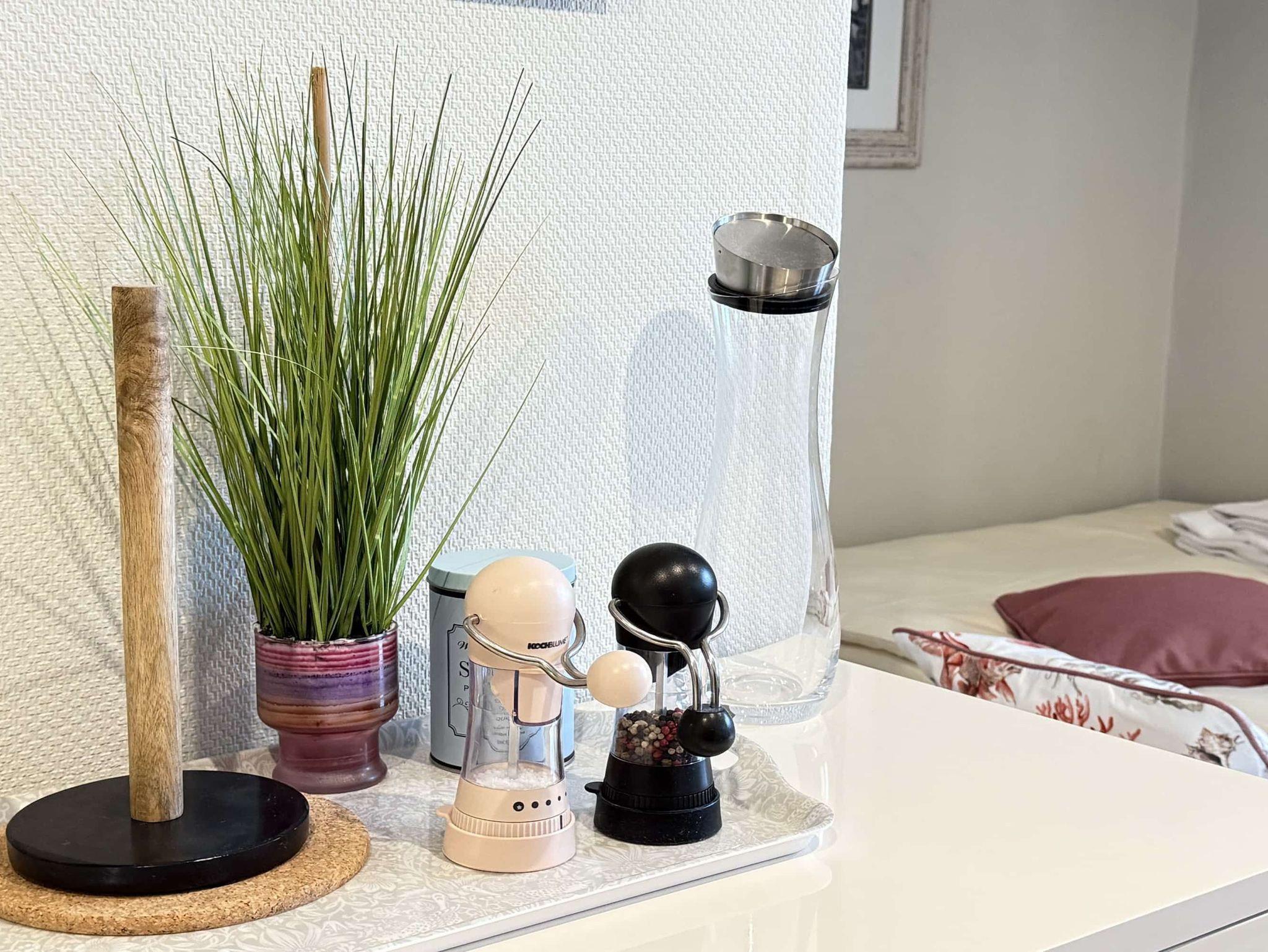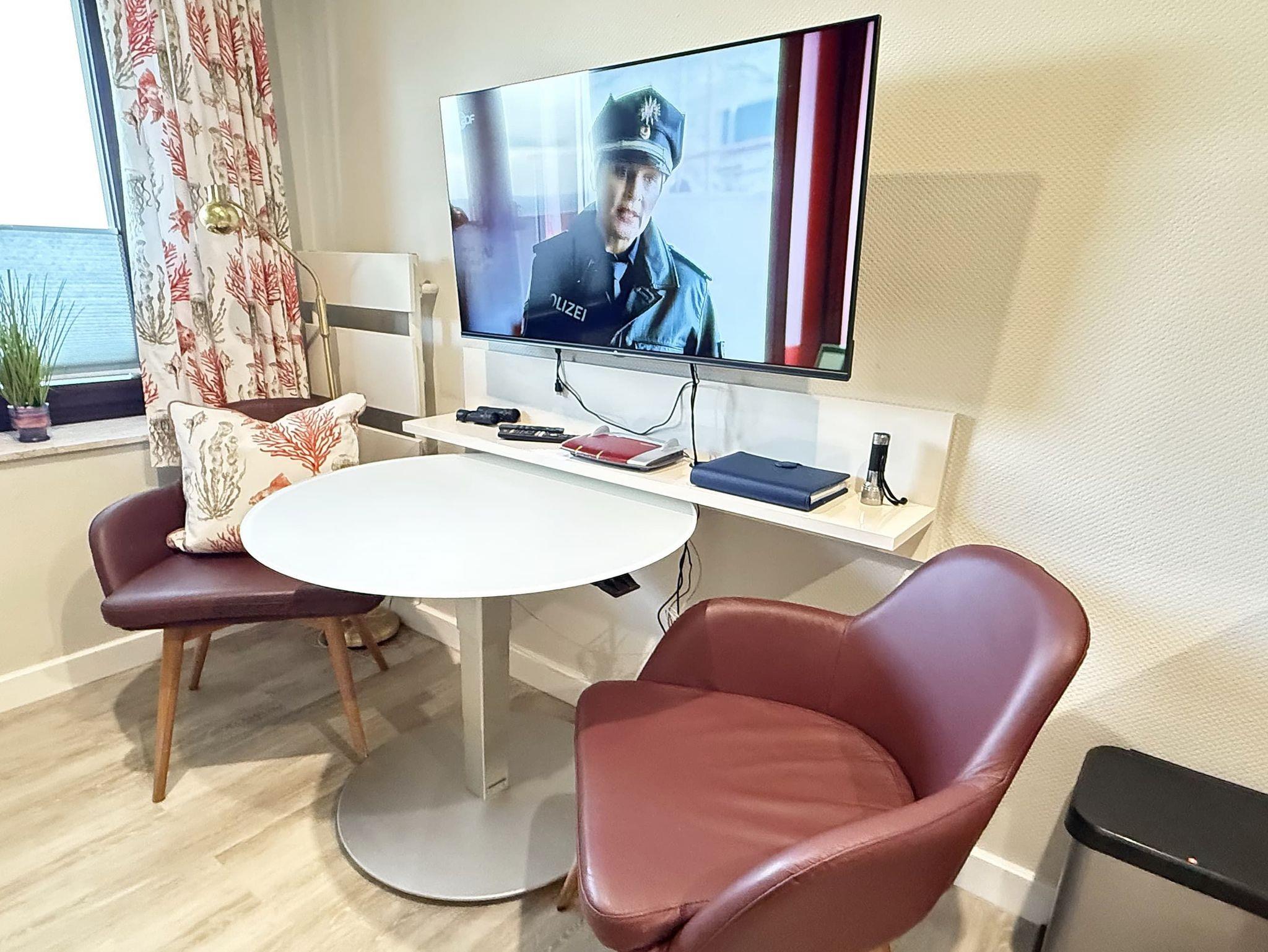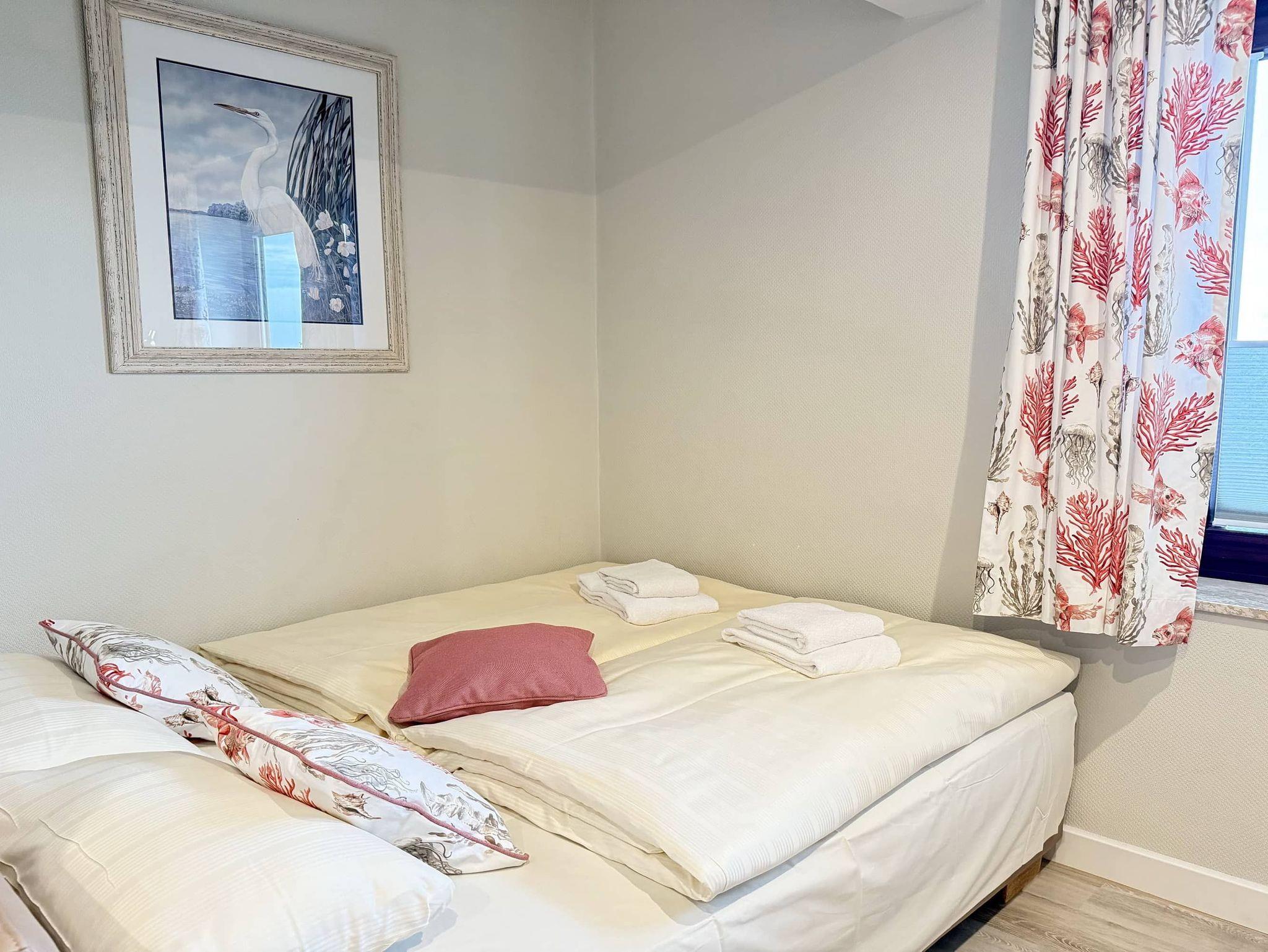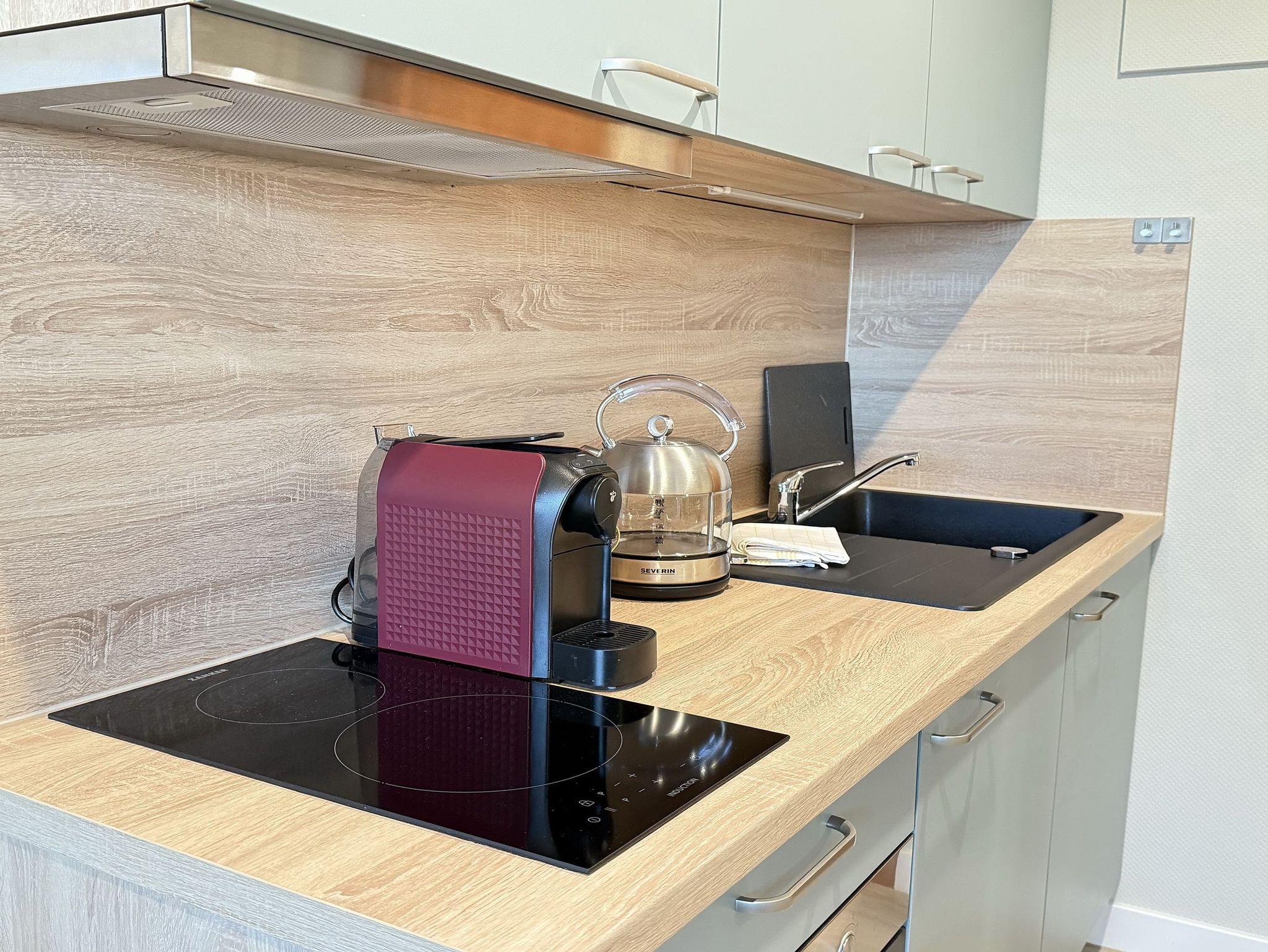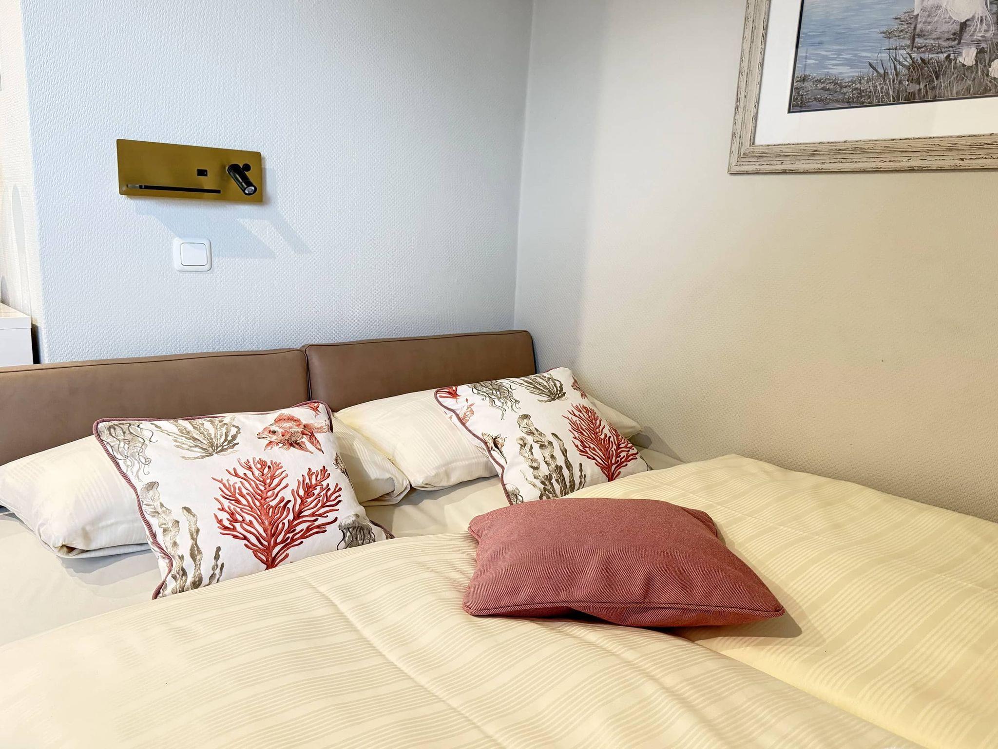 Diese Studio ist ideal für Paare, Kinder oder Singels, die einen komfortablen und praktischen Aufenthalt genießen wollen. Der Wohn- und Schlafbereich bietet eine gemütliche Schlafcouch (160cm x 200cm) und einen Sitzbereich mit Flachbild-TV. Die offene Wohnküche ist sehr gut ausgestattet. Das moderne Duschbad sorgt für angenehmen Komfort. Das Studio bietet einen Teilseeblick auf die Trave.