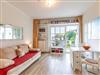1-Zimmer-Appartement, 1. OG, ca. 30 m² mit Südbalkon zur Gartenanlage und seitlichem Meerblick.