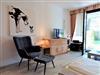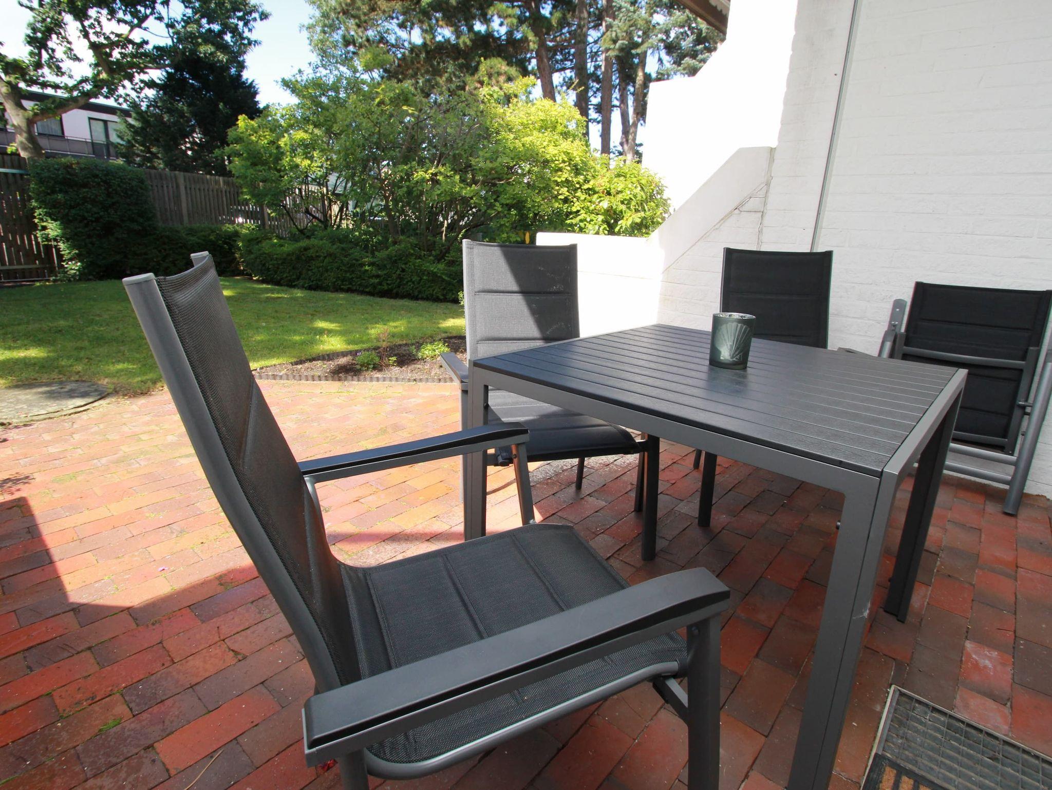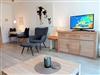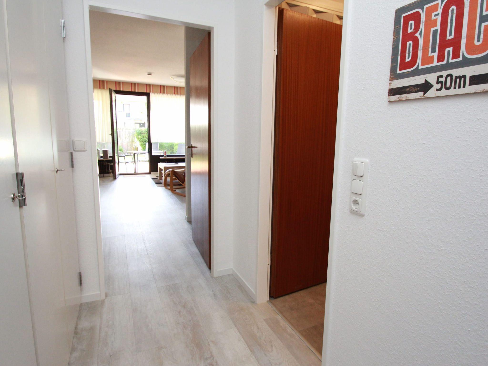 In einer gepflegten, ruhigen Wohnanlage erwartet Sie hier ein sehr schönes Appartement mit viel Komfort für Ihren Urlaub in strandnaher Lage. Der helle, gemütliche Wohnbereich besteht aus einer bequemen Couch mit einem Relaxsessel und einem Tisch. Des Weiteren befinden sich daneben eine Anrichte sowie zwei Einzelschrankbetten (je 90 cm x 190 cm). Gegenüber der Einbauküche steht eine schöne Essecke. Das neuwertige Bad geht separat vom Flur mit Garderobenschrank ab. Durch die Balkontür geht es zur großen, sonnigen Terrasse mit Gartenmöbeln. Hier genießen Sie die frische Seeluft und schauen in die gepflegte Grünanlage. Rundum ein Appartement zum Wohlfühlen.