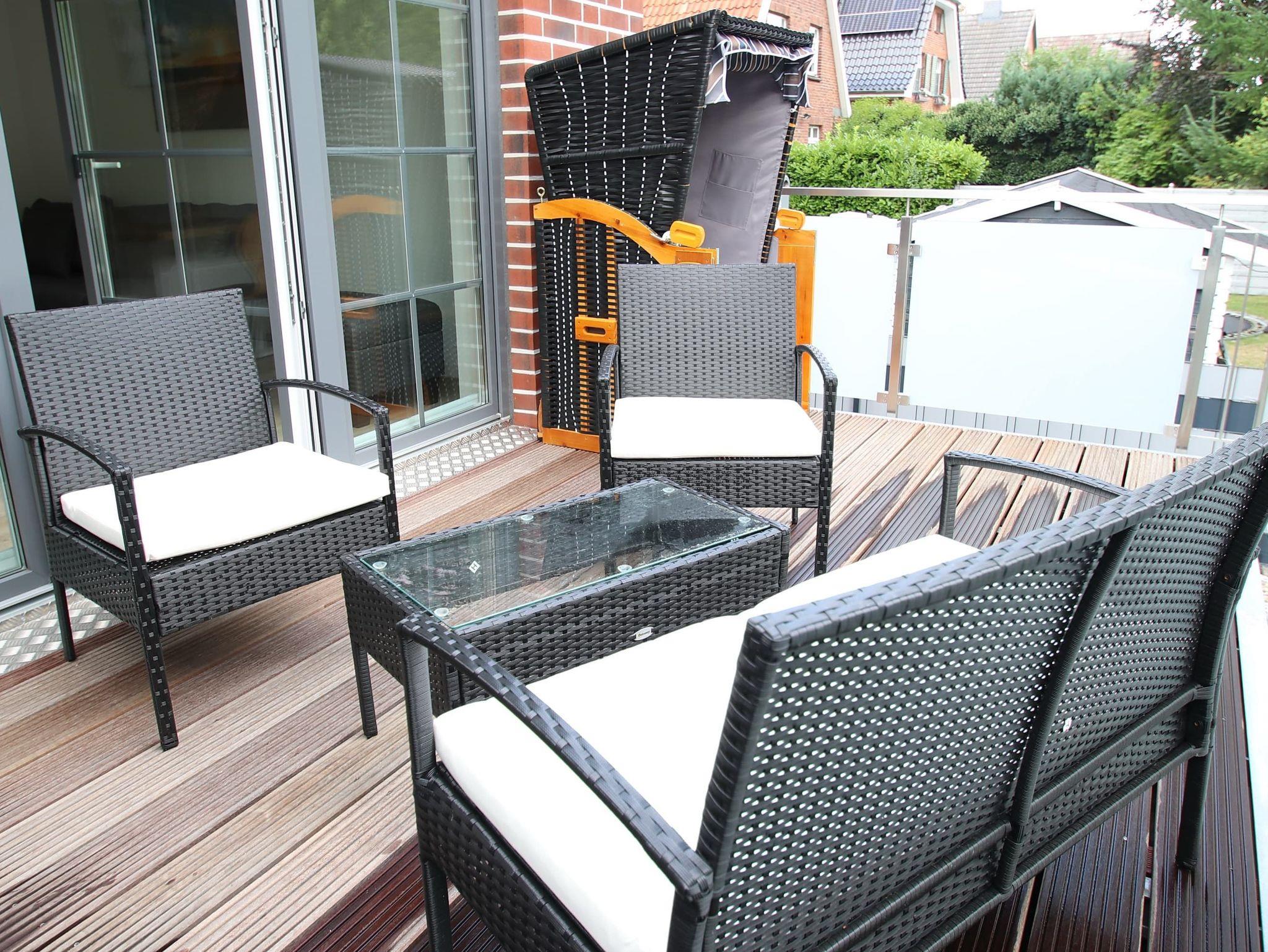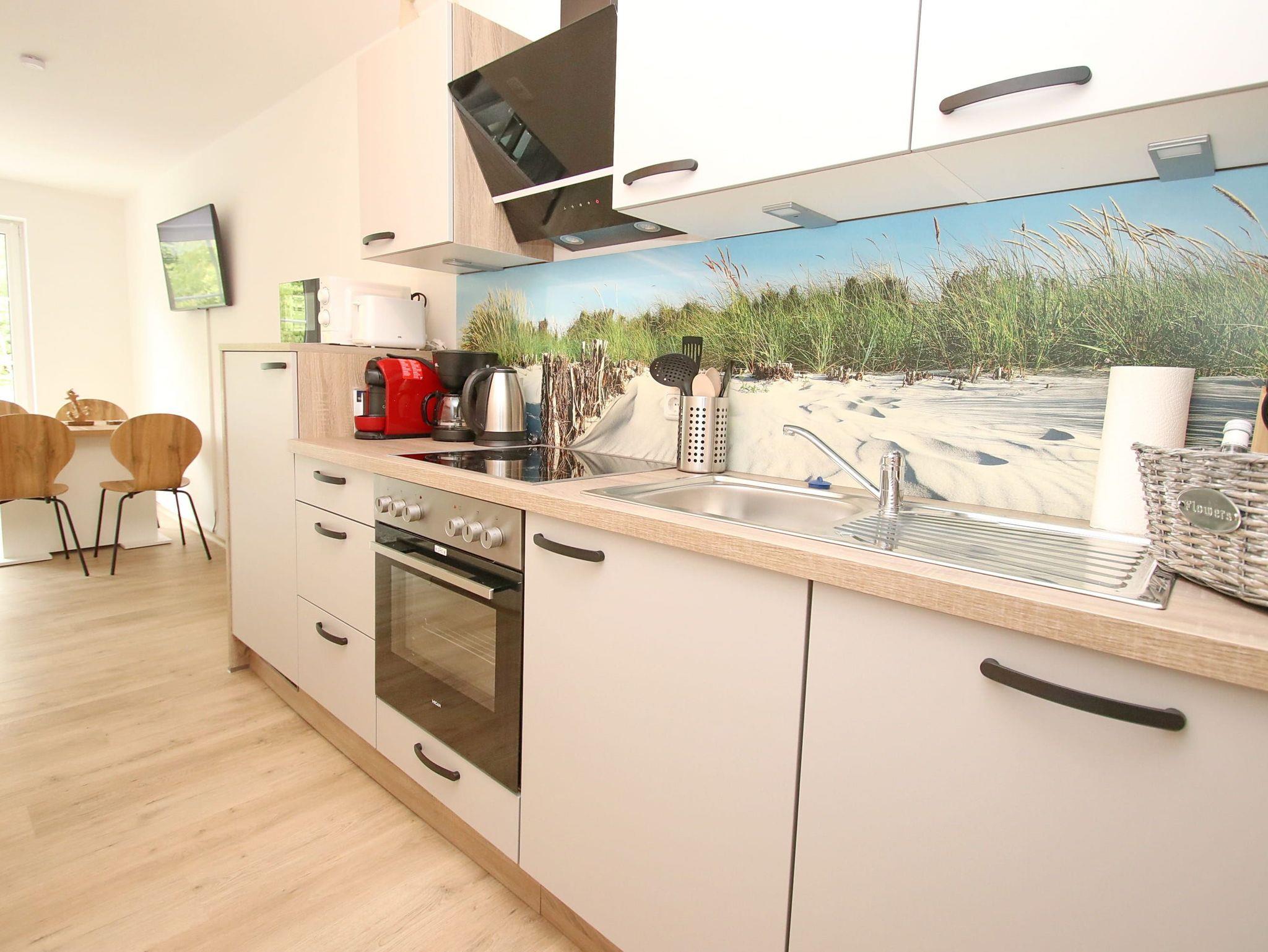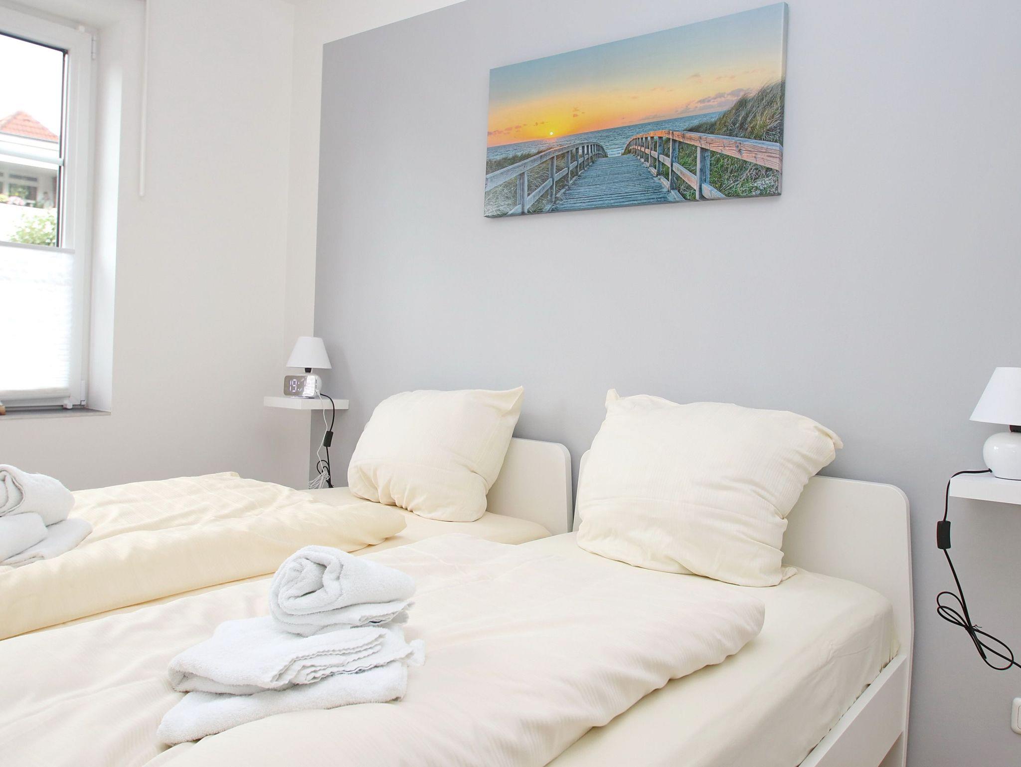 Balkon, Fußbodenheizung, Küchenzeile, 2 Schlafzimmer, Geschirrspüler, 2xBäder (1x Duschbad/WC, 1x Vollbad/WC), Fön, TV, Strandkorb auf dem Balkon, kostenl. W-Lan, inkl. PKW-Außenstellplatz vor dem Haus, Wallbox auf dem Grundstück (gegen Gebühr).