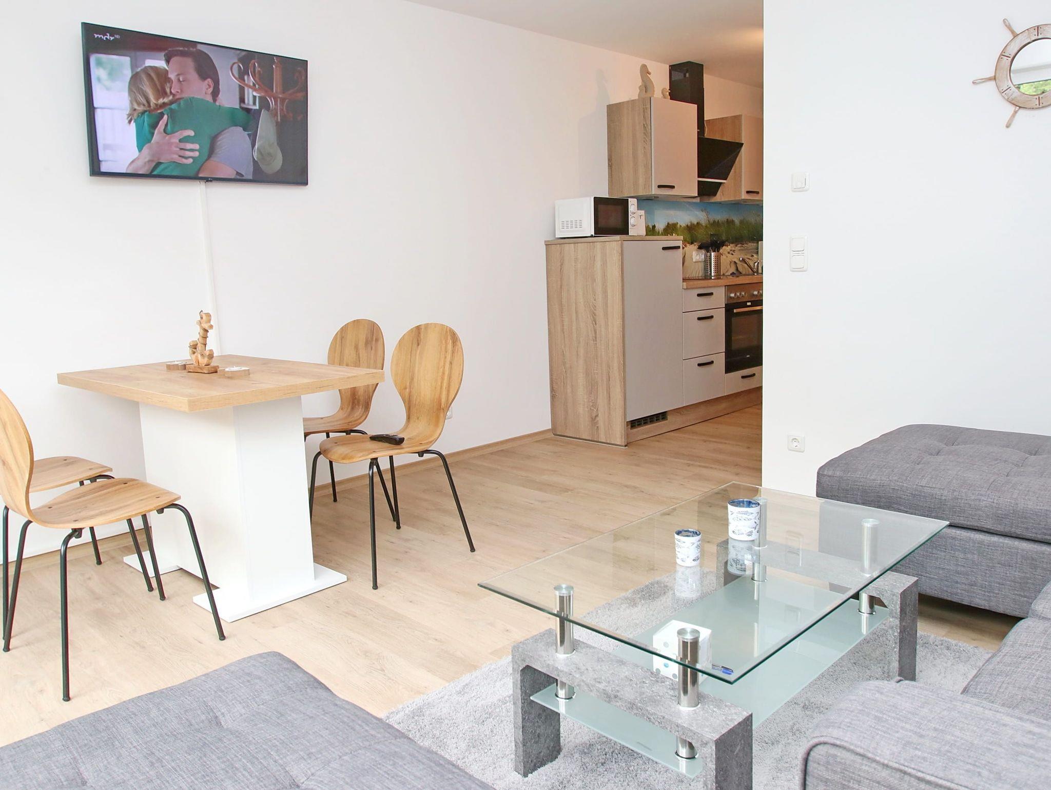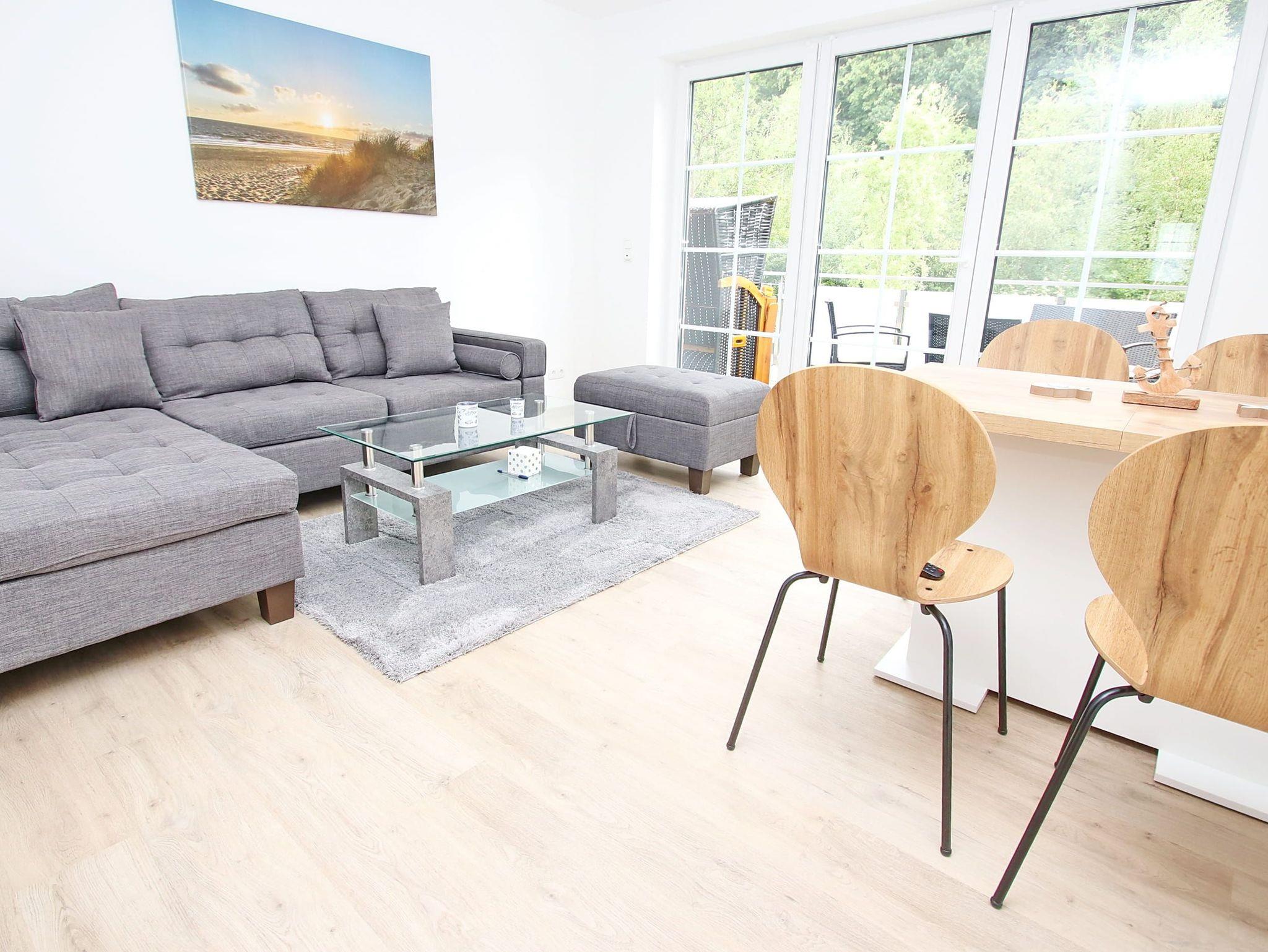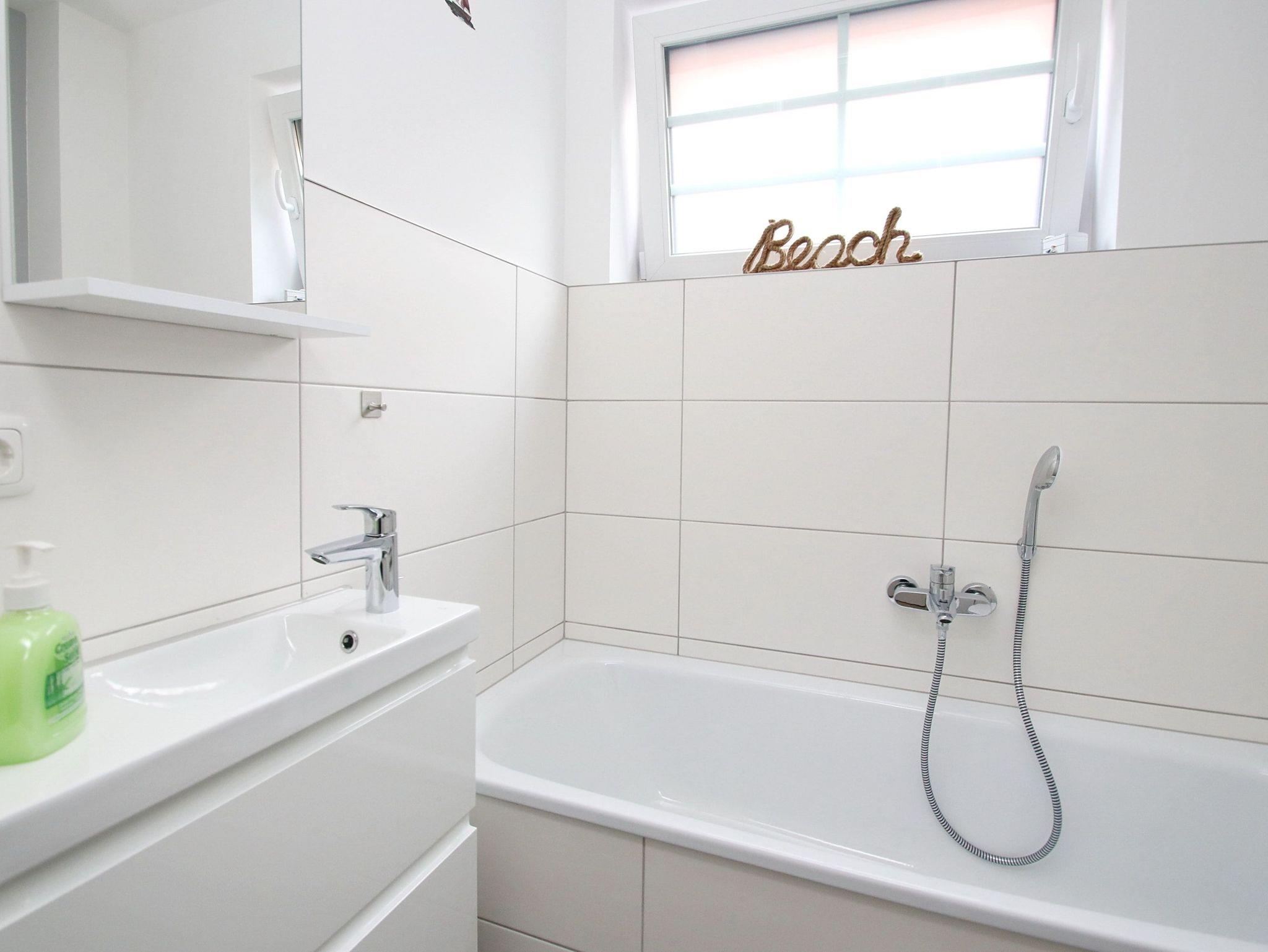 Balkon, Fußbodenheizung, Küchenzeile, 2 Schlafzimmer, Geschirrspüler, 2xBäder (1x Duschbad/WC, 1x Vollbad/WC), Fön, TV, Strandkorb auf dem Balkon, kostenl. W-Lan, inkl. PKW-Außenstellplatz vor dem Haus, Wallbox auf dem Grundstück (gegen Gebühr).