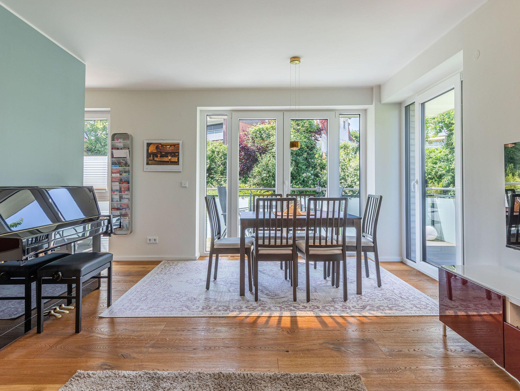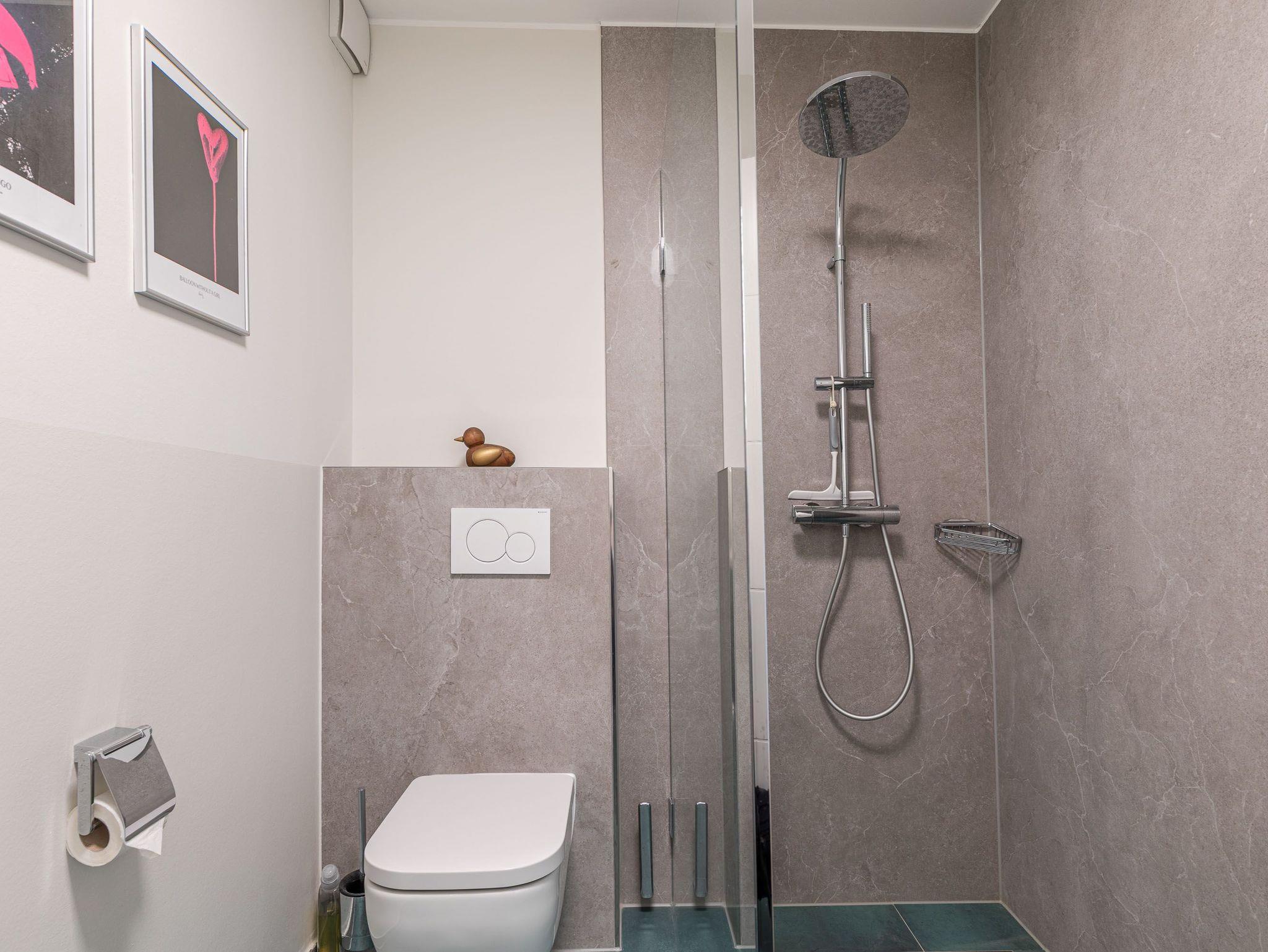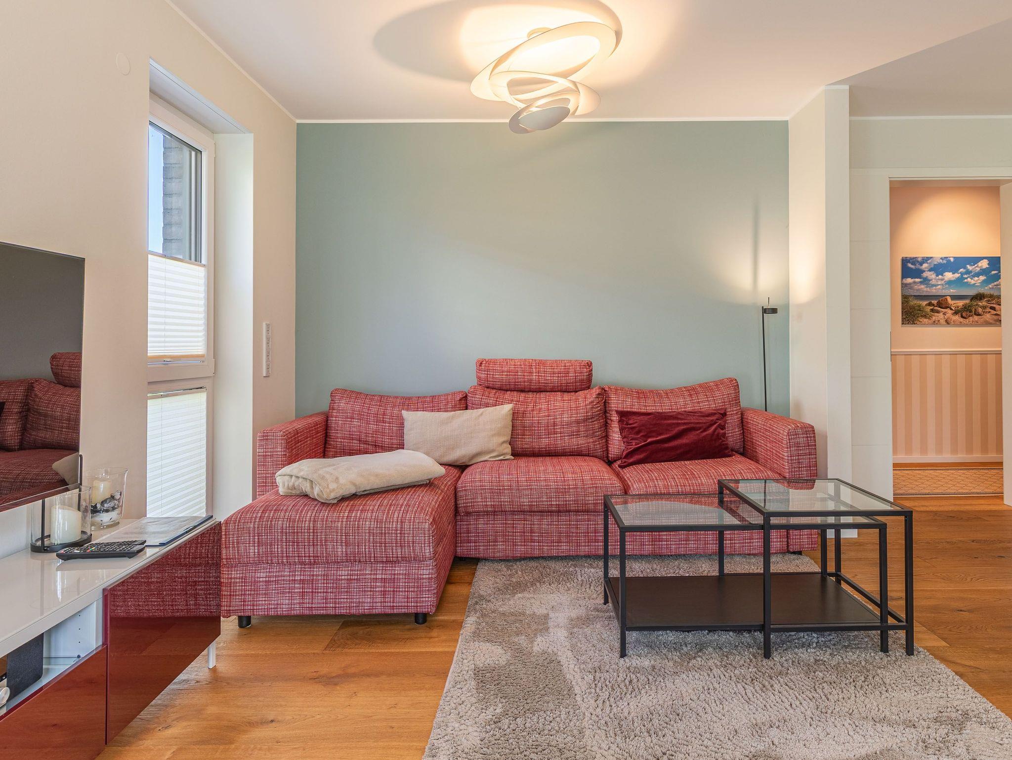 Hier erwartet Sie eine neu errichtete Wohnung mit gehobenem Wohlfühlcharakter in einem exklusiven Appartementanlagenneubau. Mit ihrem hochwertigen Ambiente lässt sie keine Wünsche offen. Der Wohnraum ist mit einer gemütlichen Couch mit Récamiere, einem Sessel und einem Couchtisch ausgestattet. Die Einrichtung wird mit einem Sideboard ergänzt. Die hochmoderne Küche ist im offenen Wohn- und Essbereich integriert, von dem Sie auch einen der großzügigen Balkone erreichen. Das erste Schlafzimmer ist mit einem Boxspringbett (180 cm x 200 cm) und einem Kleiderschrank ausgestattet. Das weitere Schlafzimmer verfügt über ein Boxspringbett (180 cm x 200 cm) und ebenfalls einen Kleiderschrank. Eines der beiden Duschbäder geht vom Flur ab. Das zweite Duschbad erreichen Sie direkt vom Schlafzimmer, wie auch den zweiten Balkon.