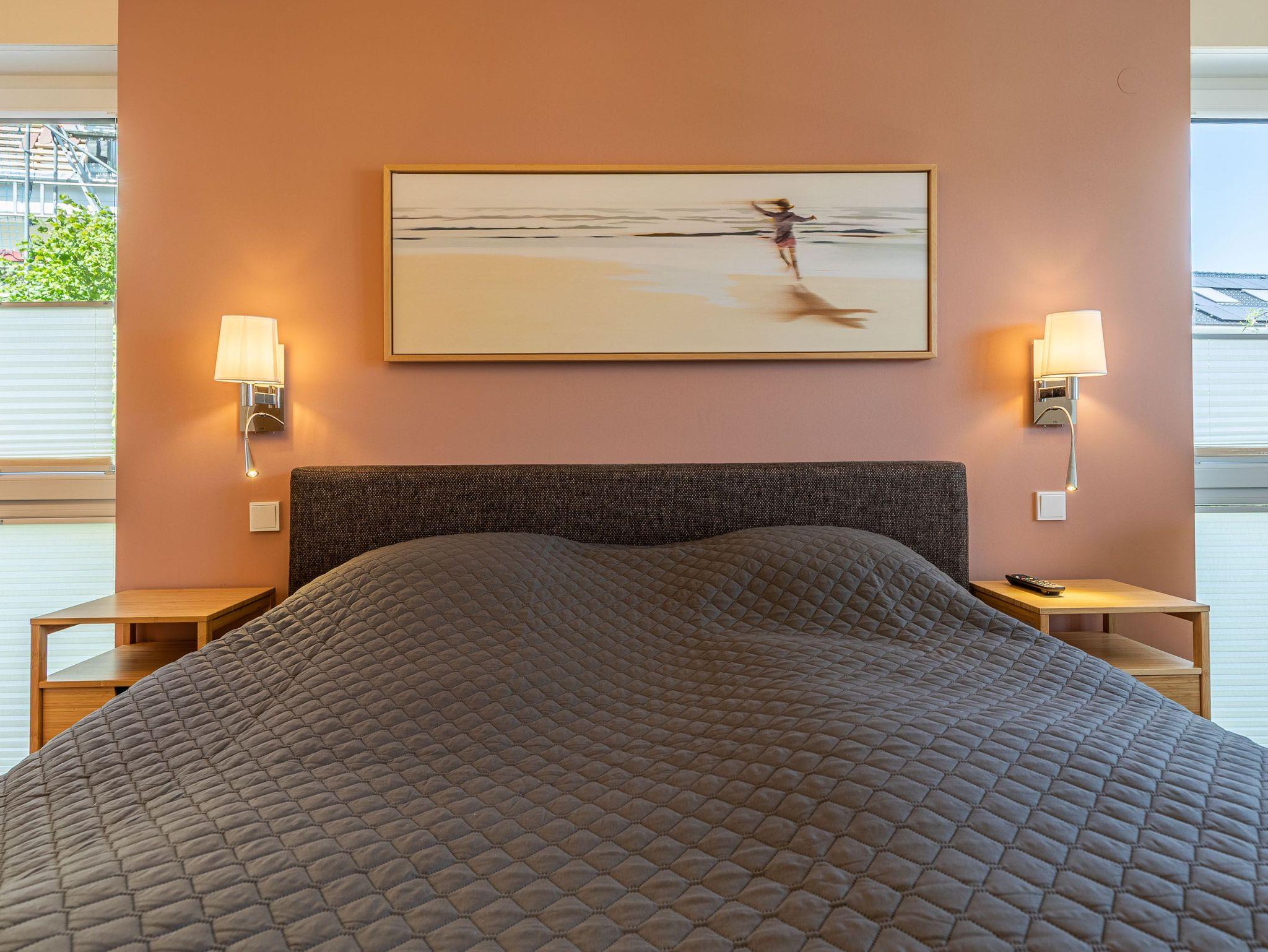 Zwei Balkone, elektr. Außenjalousien, Küche, Geschirrspüler, Mikrowelle, 2x Duschbad/WC, Fön, 3x TV, Stereoanlage mit Bluetooth, kostenl. W-Lan, Klavier (gegen Gebühr), Aufzug, Fahrradkeller, inkl. Tiefgaragenstellplatz (Einfahrtshöhe: 1,85 m).