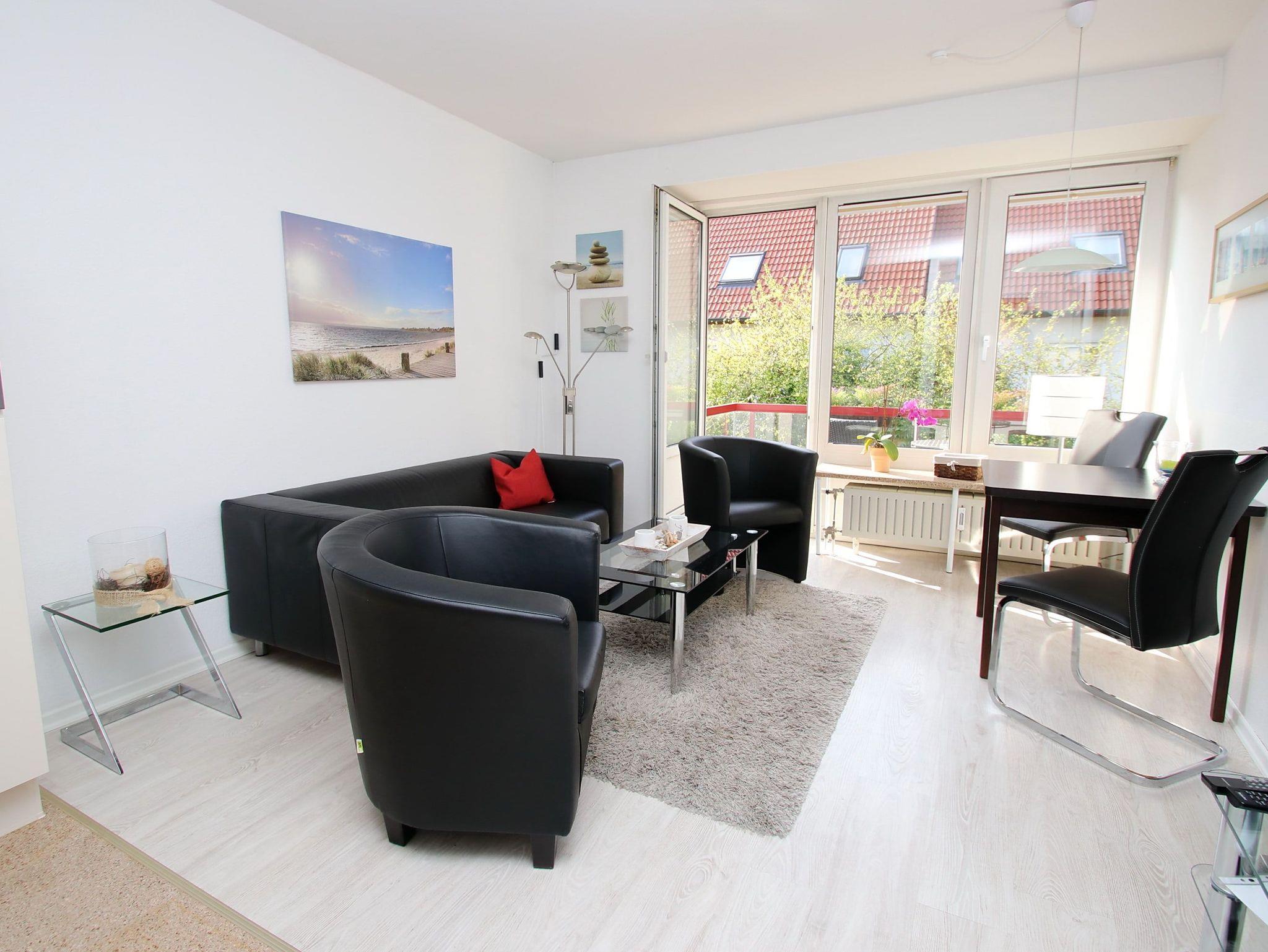 Dieses Appartement besticht mit seiner ruhigen, zentralen und strandnahen Lage in der Kaiserallee. Im Flurbereich, von dem links das Duschbad und rechts das erste Schlafzimmer abgeht, befindet sich ein kleiner und ein etwas größerer Einbauschrank. In dem ersten Schlafzimmer erwartet sie ein bequemes Doppelbett (140 cm x 200 cm) und ein kleiner TV mit DVD-Player. Gerade aus gelangen Sie direkt in den offenen, hellen Wohnbereich, der mit einer gemütlichen dreiteiligen Couchgarnitur, einer Essecke am Fenster und einer modernen Einbauküche ausgestattet ist. Das zweite, vom Wohnbereich abgehende, Schlafzimmer verfügt über ein komfortables Einzelbett (90 cm x 200 cm) und einen Kleiderschrank. Der sonnige Südbalkon lädt zum Verweilen ein.