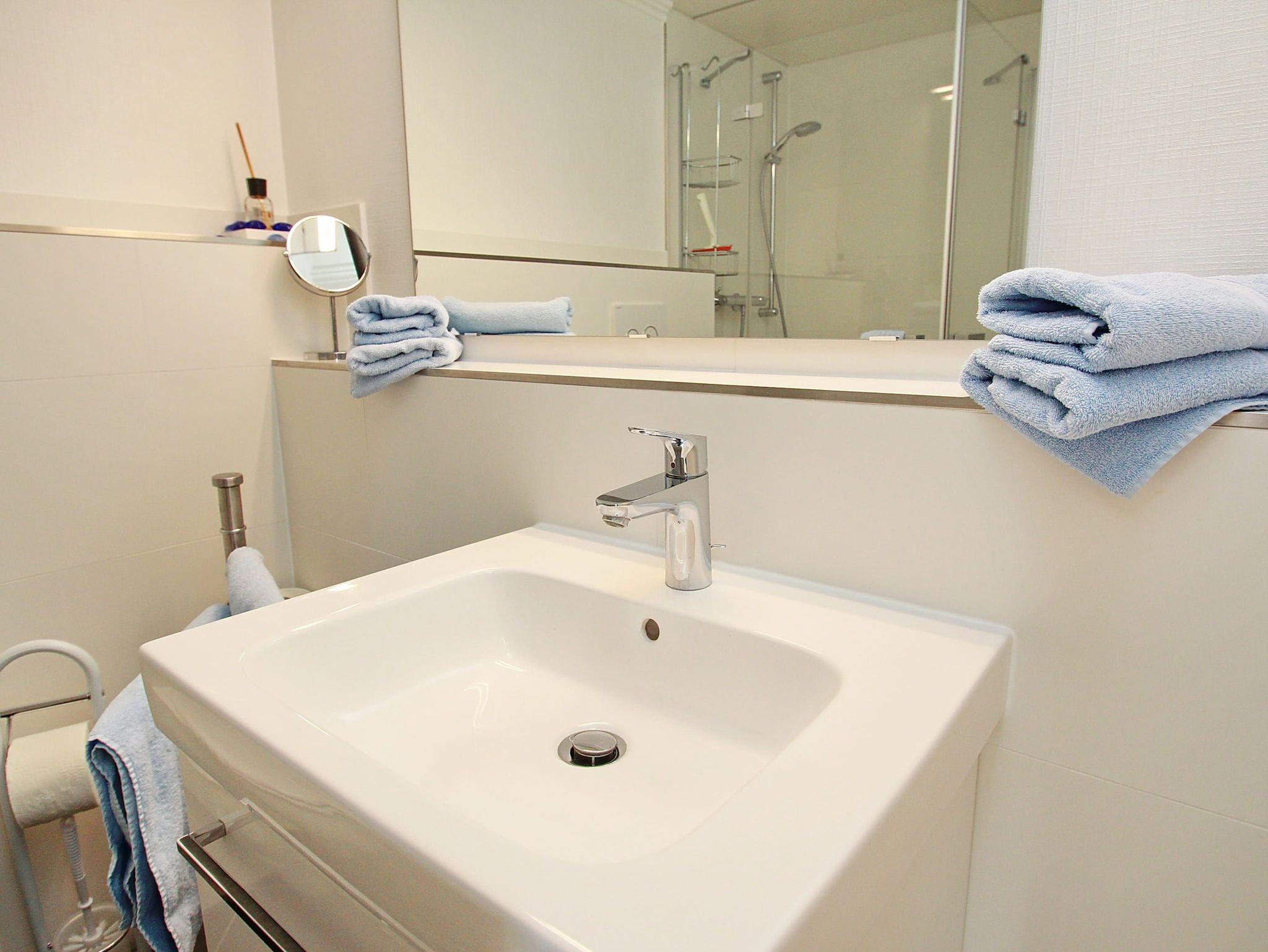 Balkon, Markisen, Küche, Geschirrspüler, Mikrowelle, Duschbad/WC, Fön, TV, DVD, Stereoanlage, kostenl. W-Lan, Aufzug, inkl. Tiefgaragenstellplatz (Einfahrtshöhe: 1,85 m).