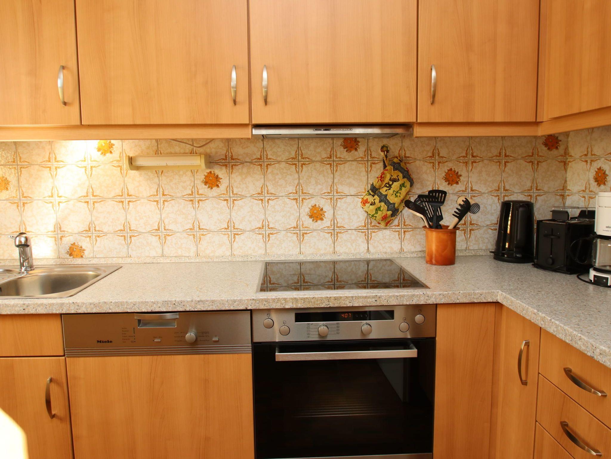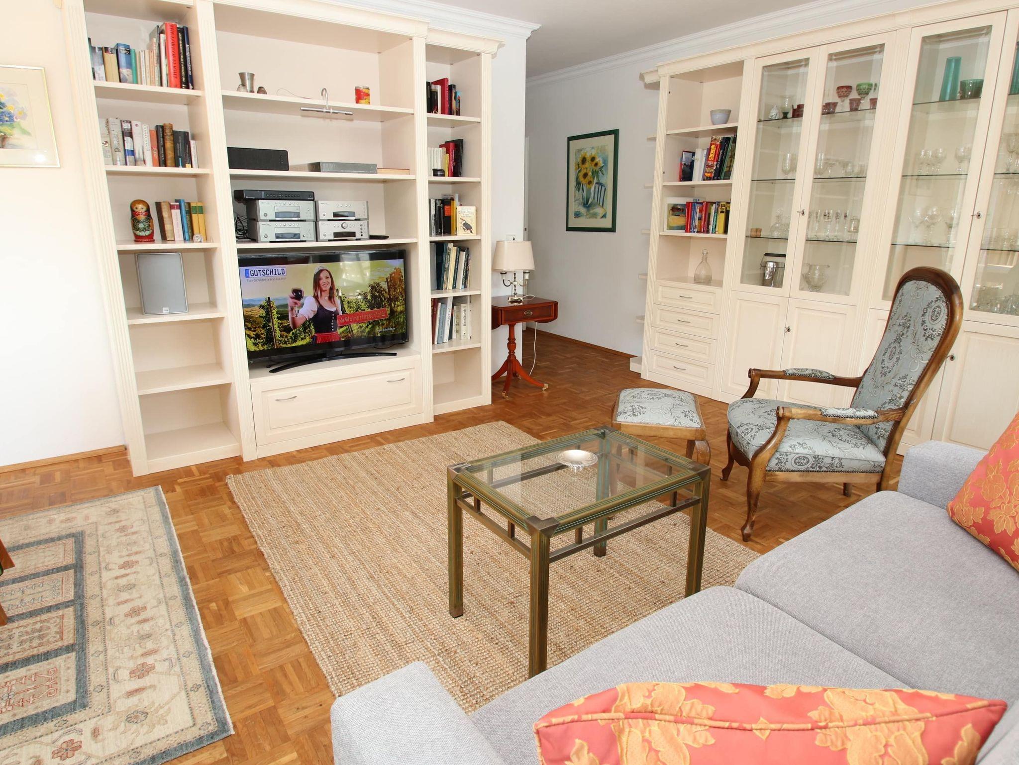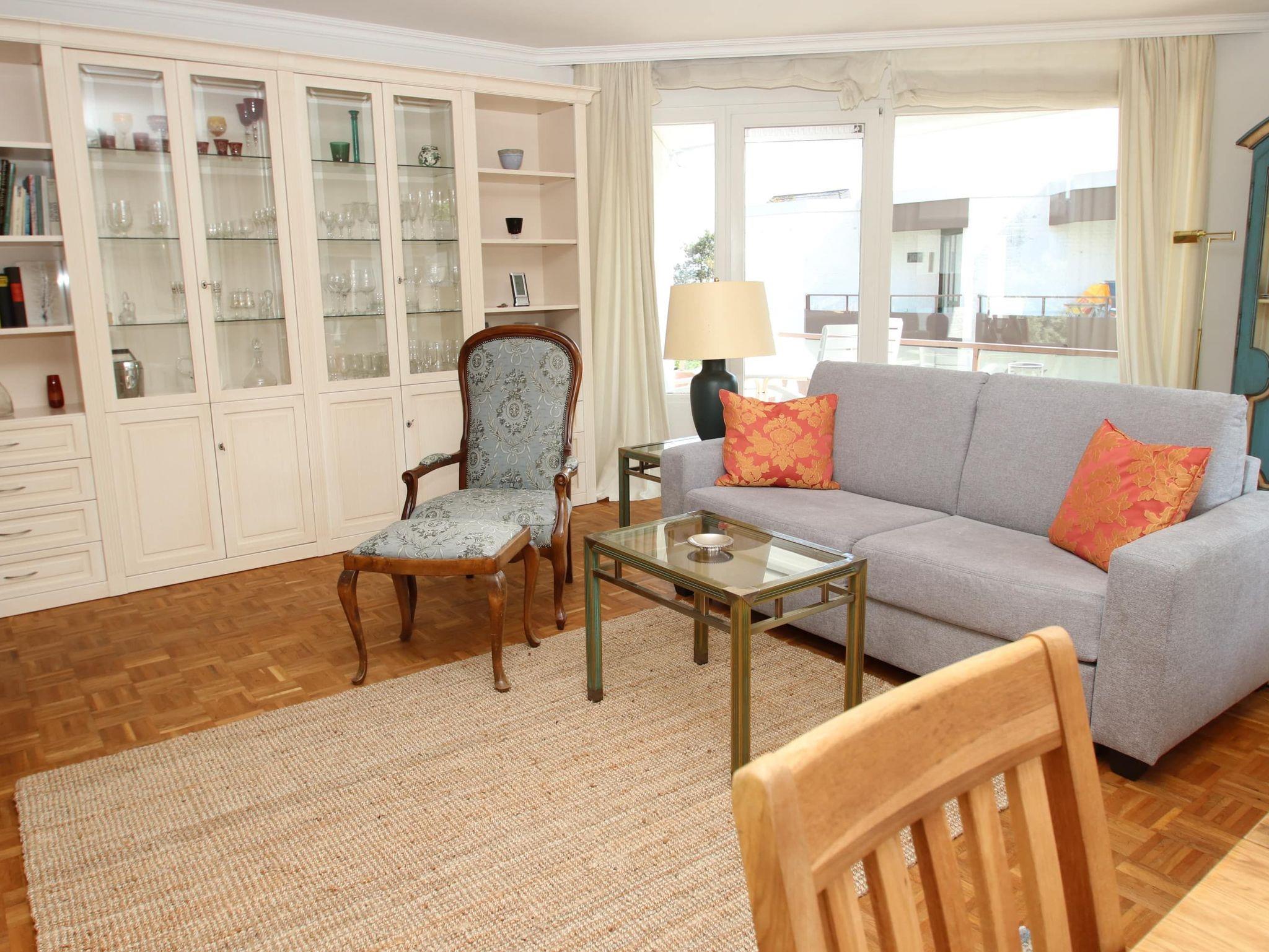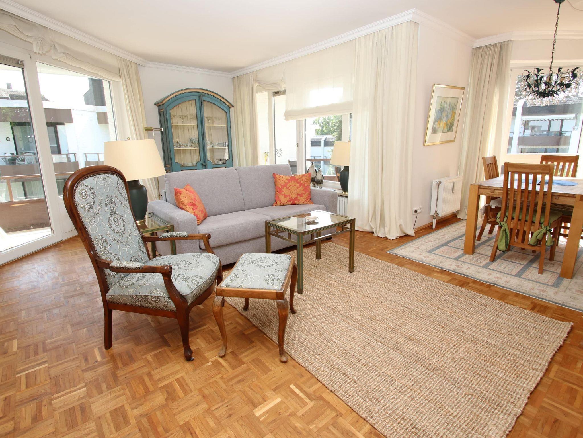 Zwei Balkone, 2 Markisen, Küche, Geschirrspüler, Waschtrockner, Duschbad/WC, Fön, 2x TV (1x nur Google Cromecast) , Stereoanlage (Sonos-Box), kostenl. W-Lan, Aufzug, inkl. Tiefgaragenstellplatz (Einfahrtshöhe: 2,0 m).