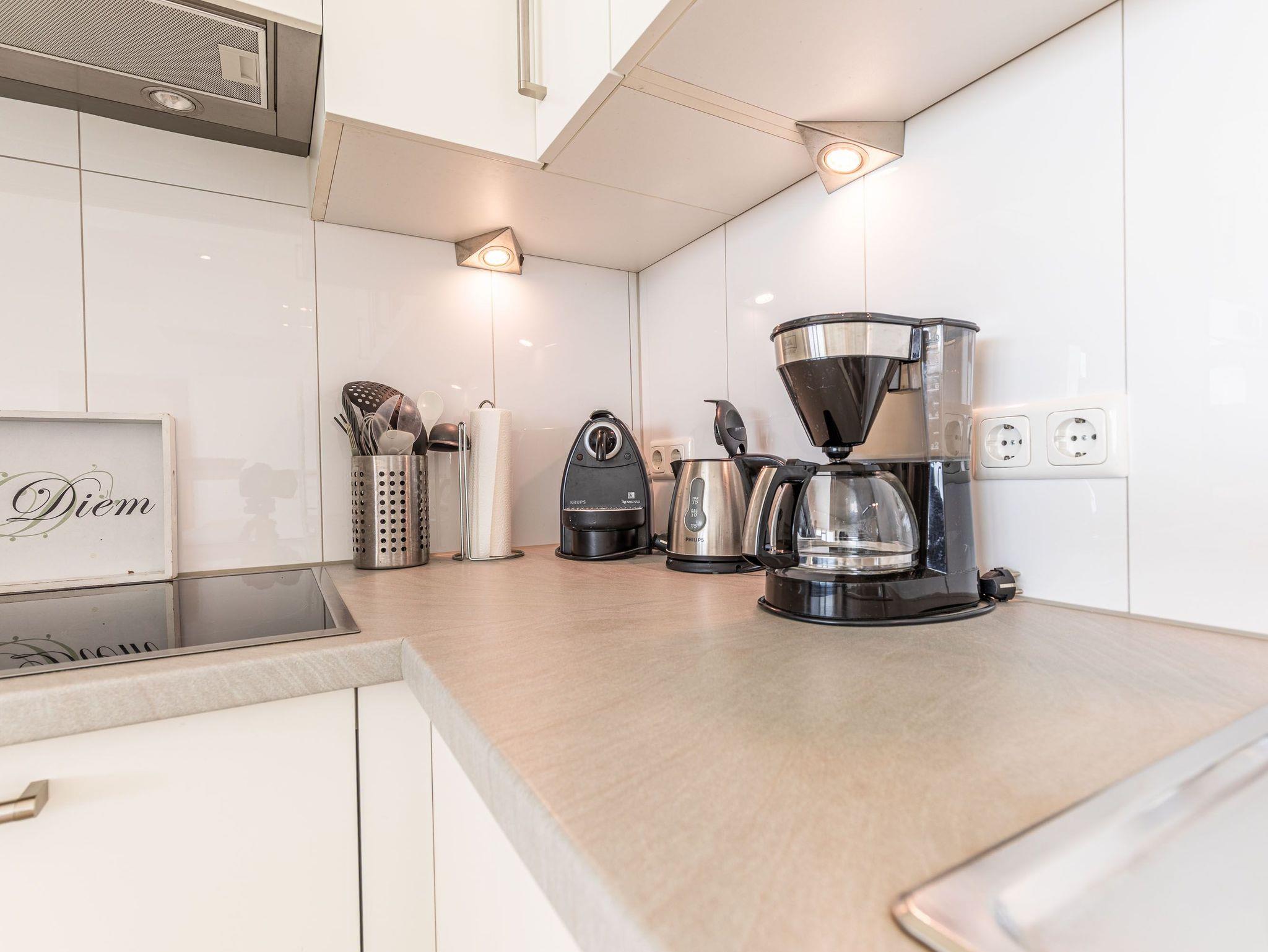 Umlaufende Loggia von ca. 26 m², Küche, Geschirrspüler, Mikrowelle, Duschbad/WC, Fön, Waschmaschine, 2x TV, DVD, Stereoanlage, kostenl. W-Lan, Aufzug, inkl. Tiefgaragenstellplatz (Einfahrtshöhe: 1,85 m).
