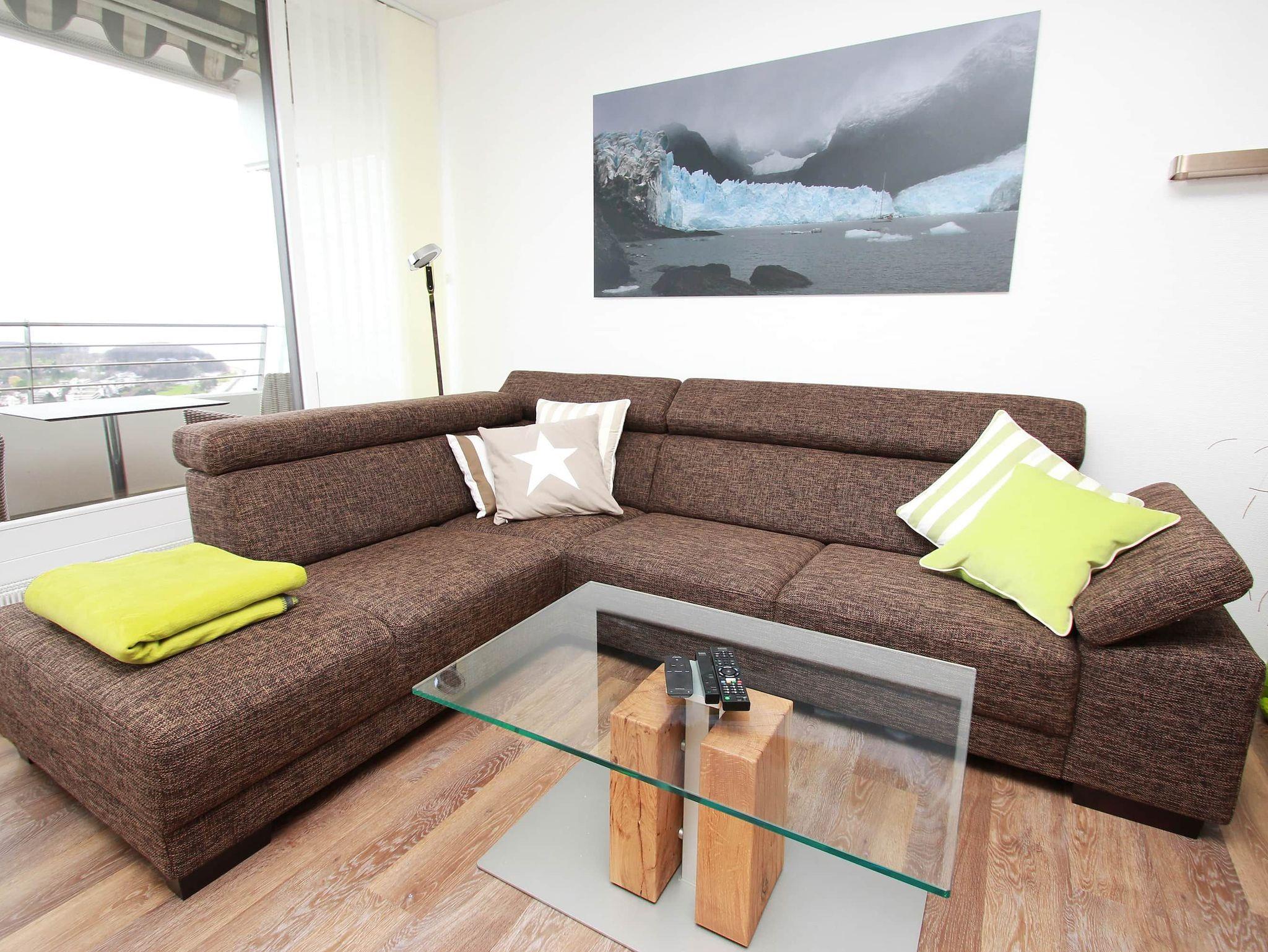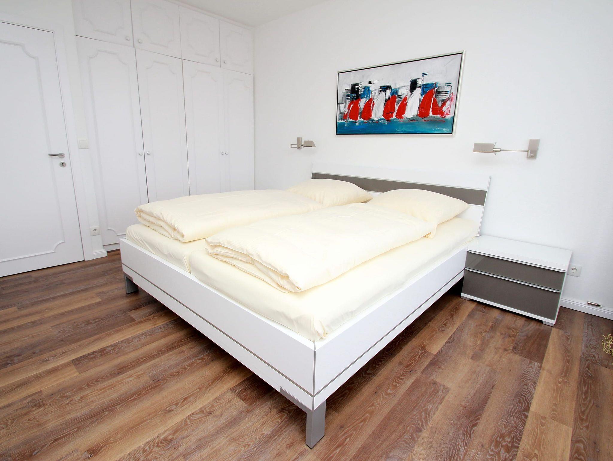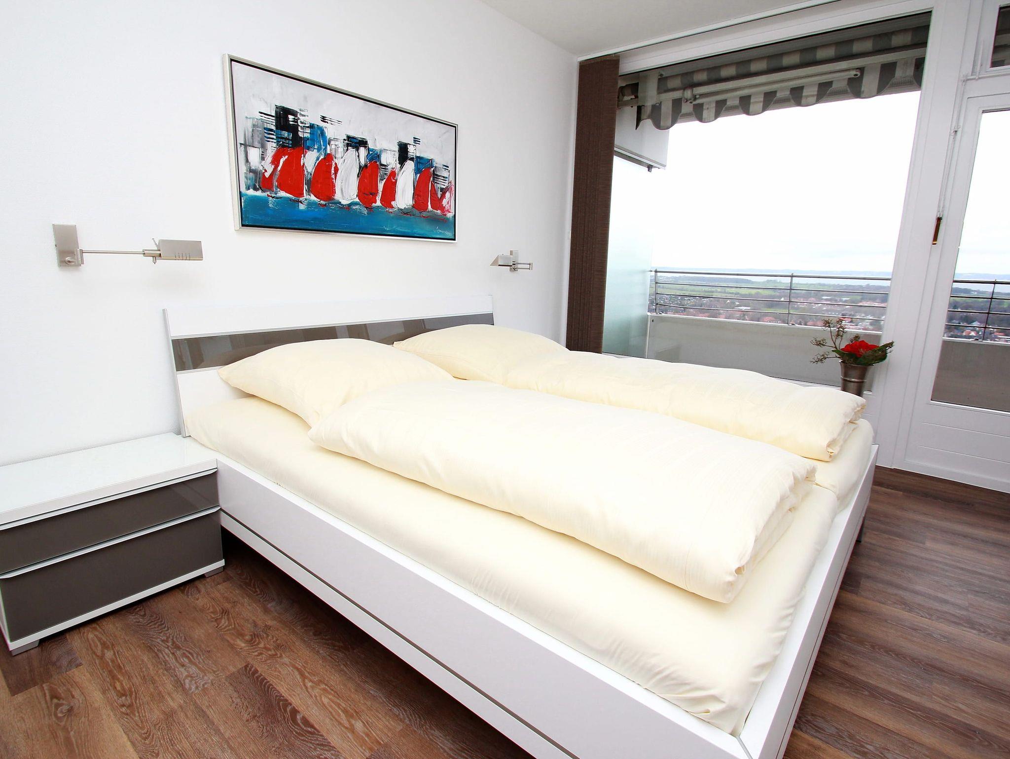 Dieses komfortable Appartement in bevorzugter Lage hat eine geschmackvolle, helle Einrichtung und lädt zu einem tollen Urlaubsaufenthalt ein. Hier können Sie aus nächster Nähe das Strandleben genießen und das beschauliche Spiel der Segelboote im Wind beobachten. Im Wohnraum stehen eine gemütliche Eckcouch mit Tisch und ein schöner Esstisch mit Stühlen neben der modernen Einbauküche. Das Schlafzimmer ist ausgestattet mit einem bequemen Doppelbett (2x 90 cm x 200 cm), einem Schminktisch und einem Einbaukleiderschrank. Das helle Duschbad geht vom Flur ab. Von Wohn- und Schlafraum erreichen sie den großen Balkon. Hier haben Sie einen traumhaften Ausblick auf die Strandpromenade, weit über die Lübecker Bucht bis hin zum Ostsee-Horizont.