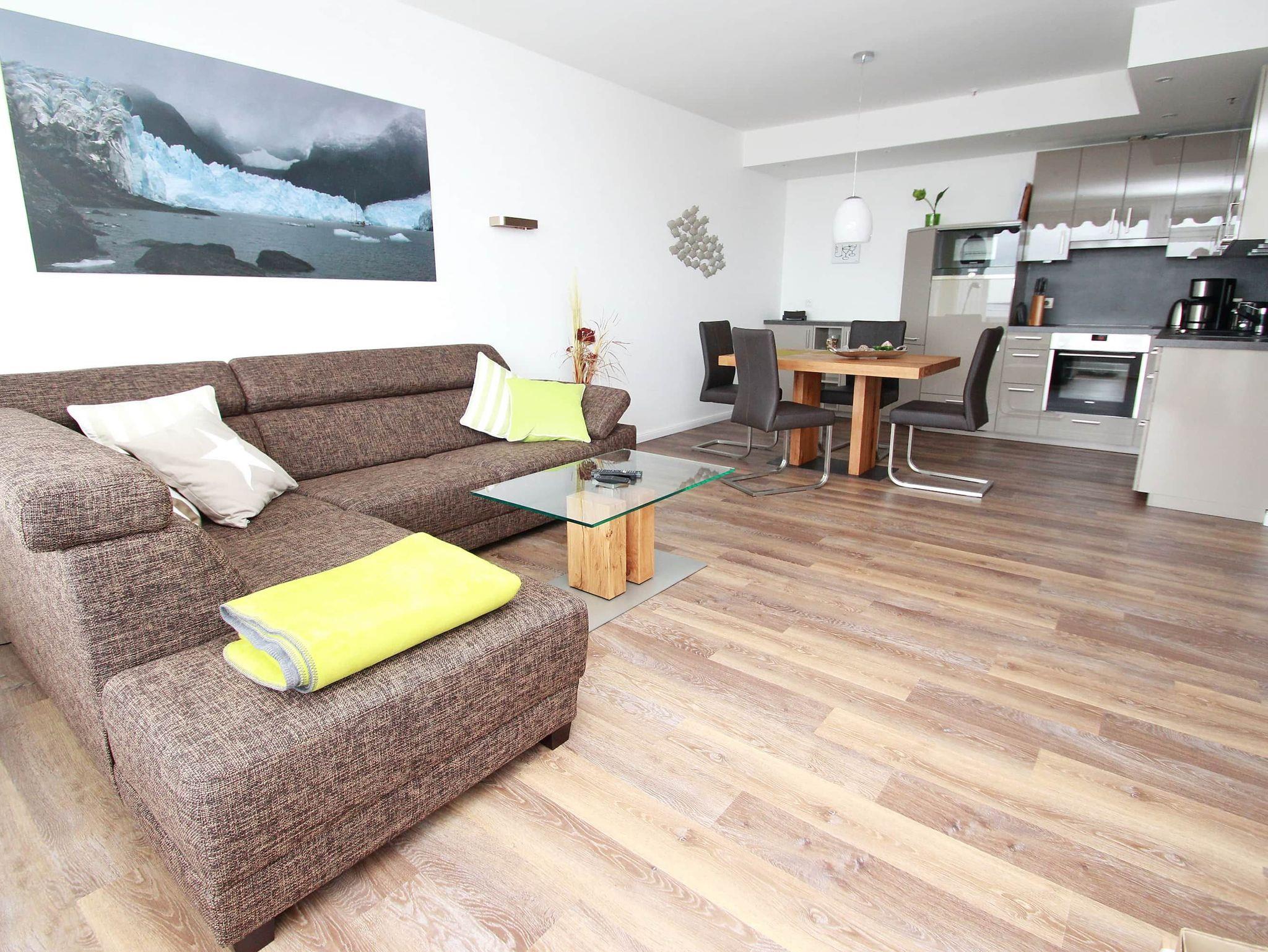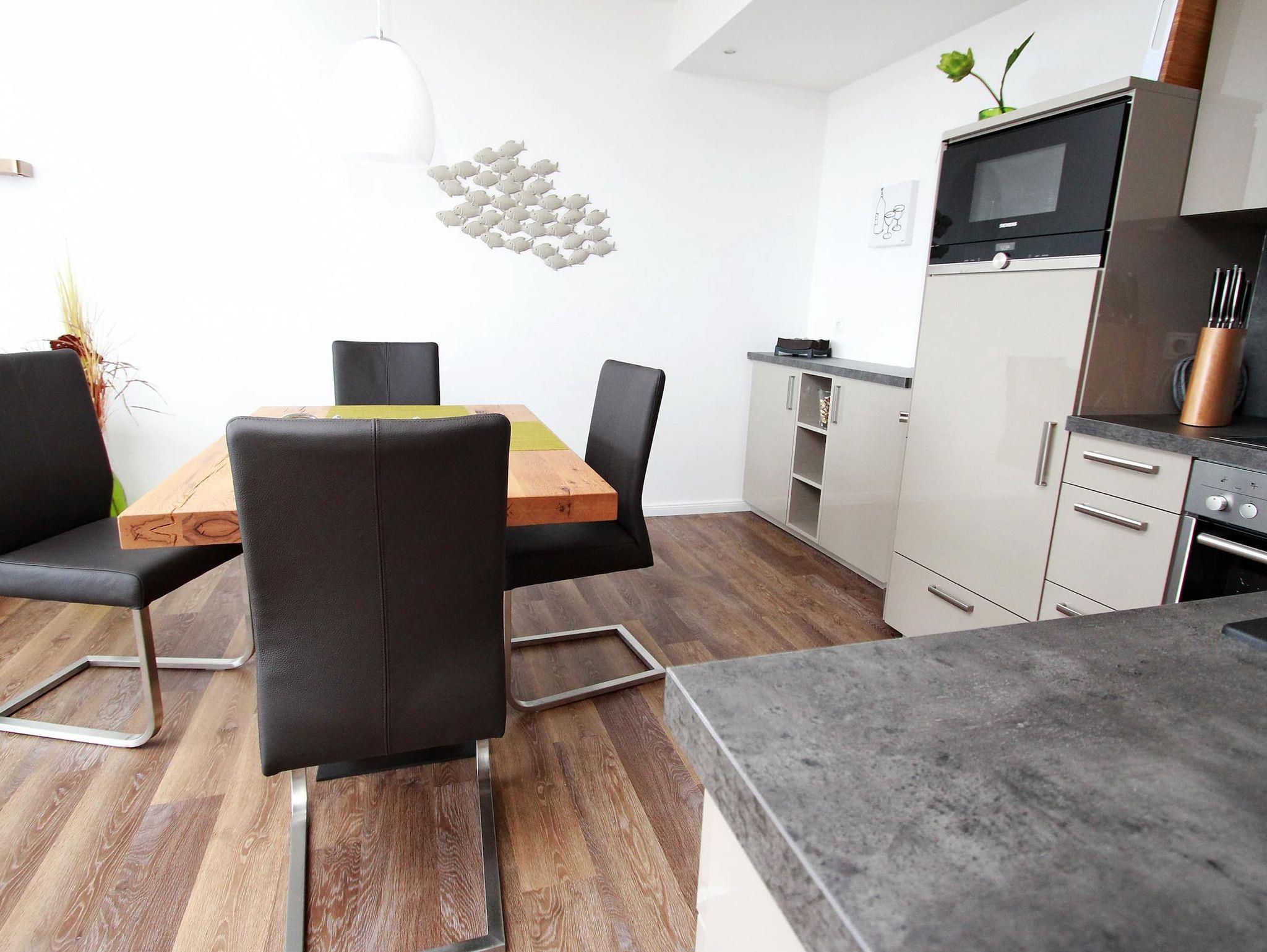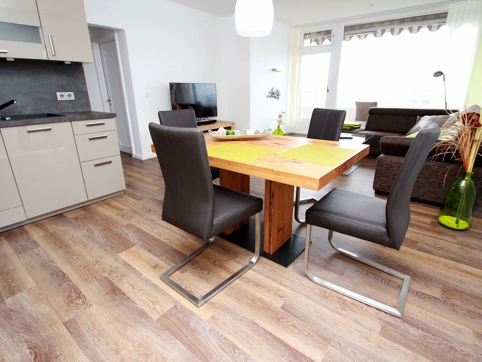 Dieses komfortable Appartement in bevorzugter Lage hat eine geschmackvolle, helle Einrichtung und lädt zu einem tollen Urlaubsaufenthalt ein. Hier können Sie aus nächster Nähe das Strandleben genießen und das beschauliche Spiel der Segelboote im Wind beobachten. Im Wohnraum stehen eine gemütliche Eckcouch mit Tisch und ein schöner Esstisch mit Stühlen neben der modernen Einbauküche. Das Schlafzimmer ist ausgestattet mit einem bequemen Doppelbett (2x 90 cm x 200 cm), einem Schminktisch und einem Einbaukleiderschrank. Das helle Duschbad geht vom Flur ab. Von Wohn- und Schlafraum erreichen sie den großen Balkon. Hier haben Sie einen traumhaften Ausblick auf die Strandpromenade, weit über die Lübecker Bucht bis hin zum Ostsee-Horizont.