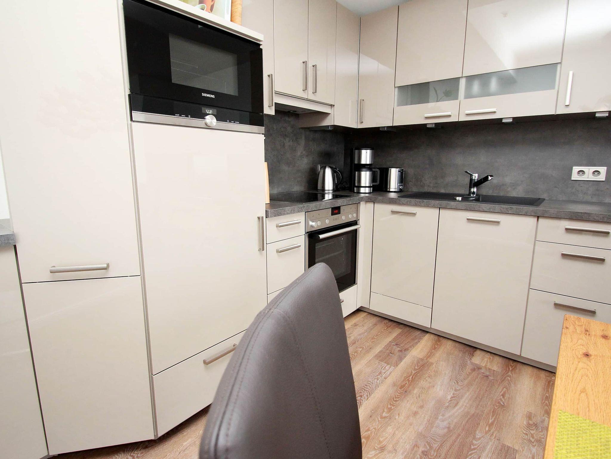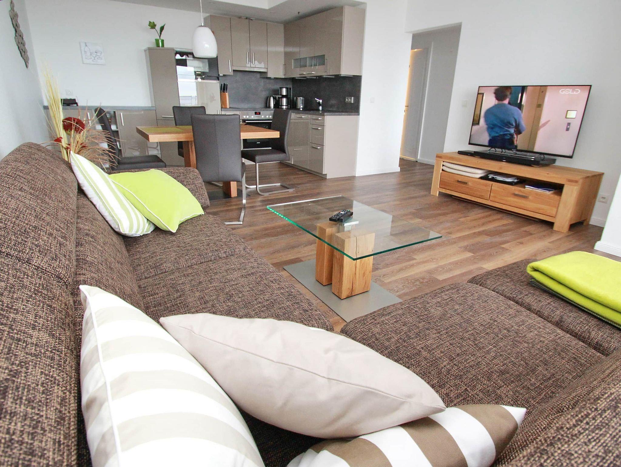 Balkon, Markisen, Küche, Geschirrspüler, Mikrowelle, Duschbad/WC, Fön, TV, DVD, Stereoradio mit CD, kostenl. W-Lan, Aufzug, inkl. Tiefgaragenstellplatz (Einfahrtshöhe: 1,85 m).