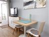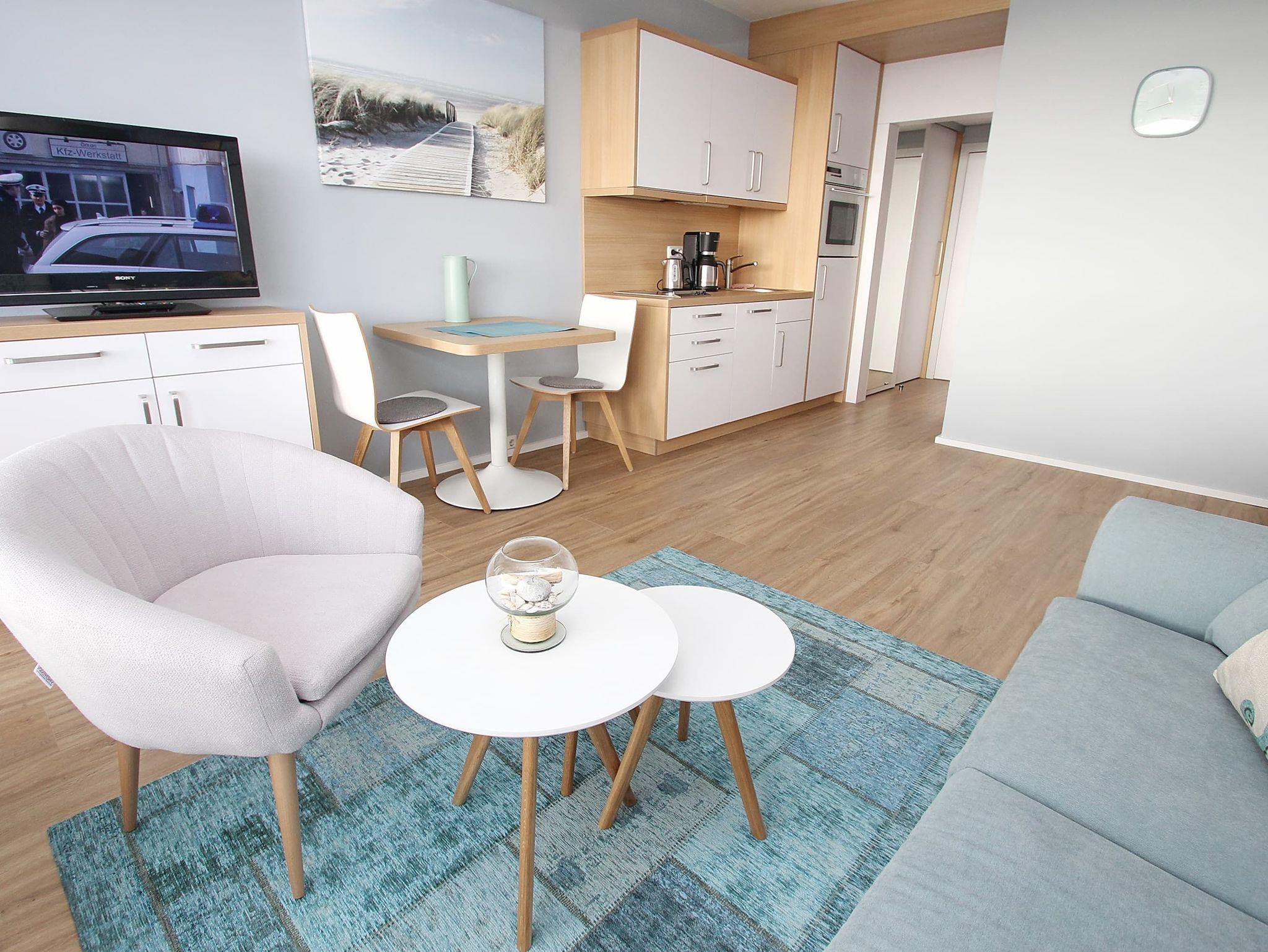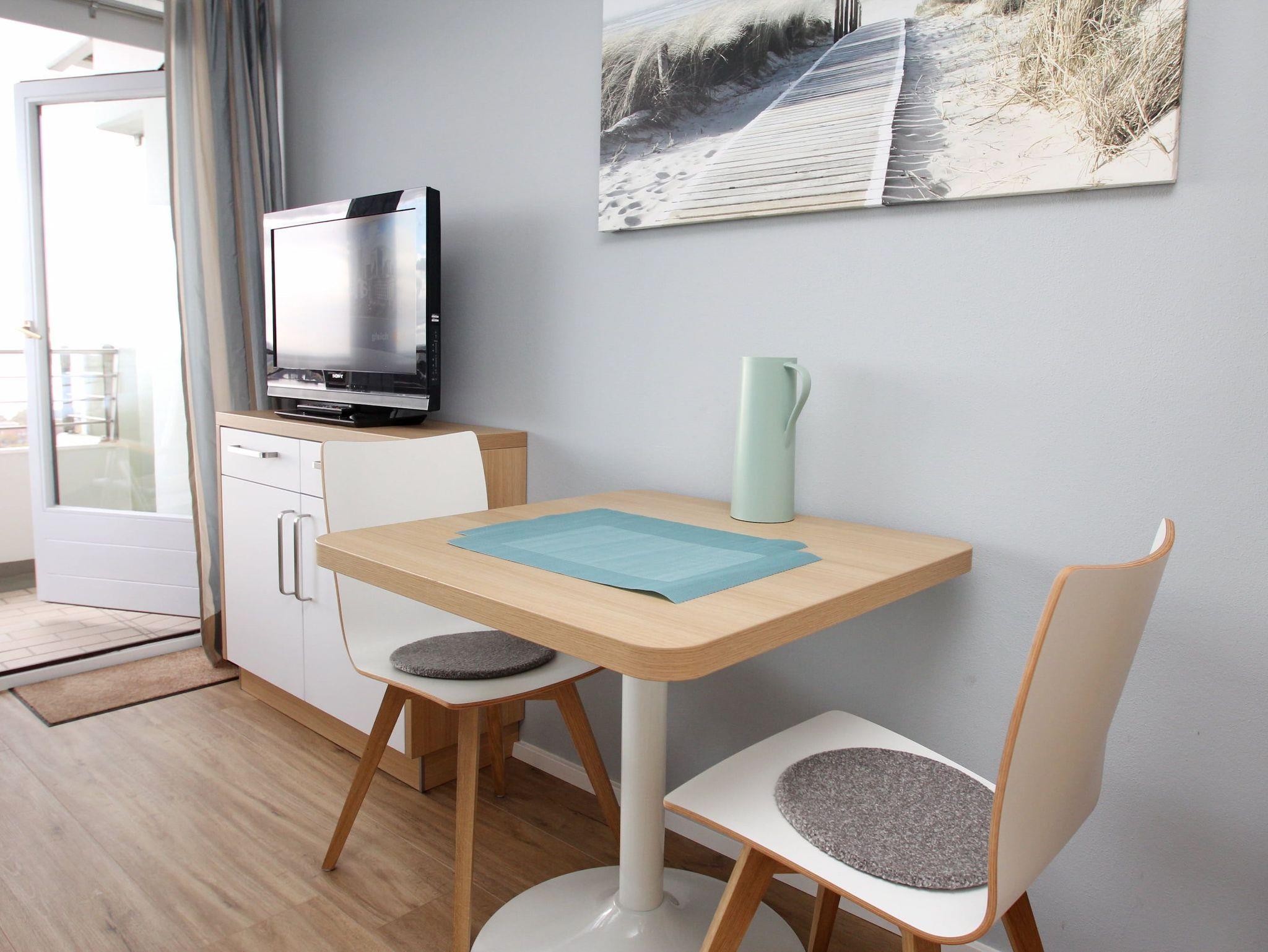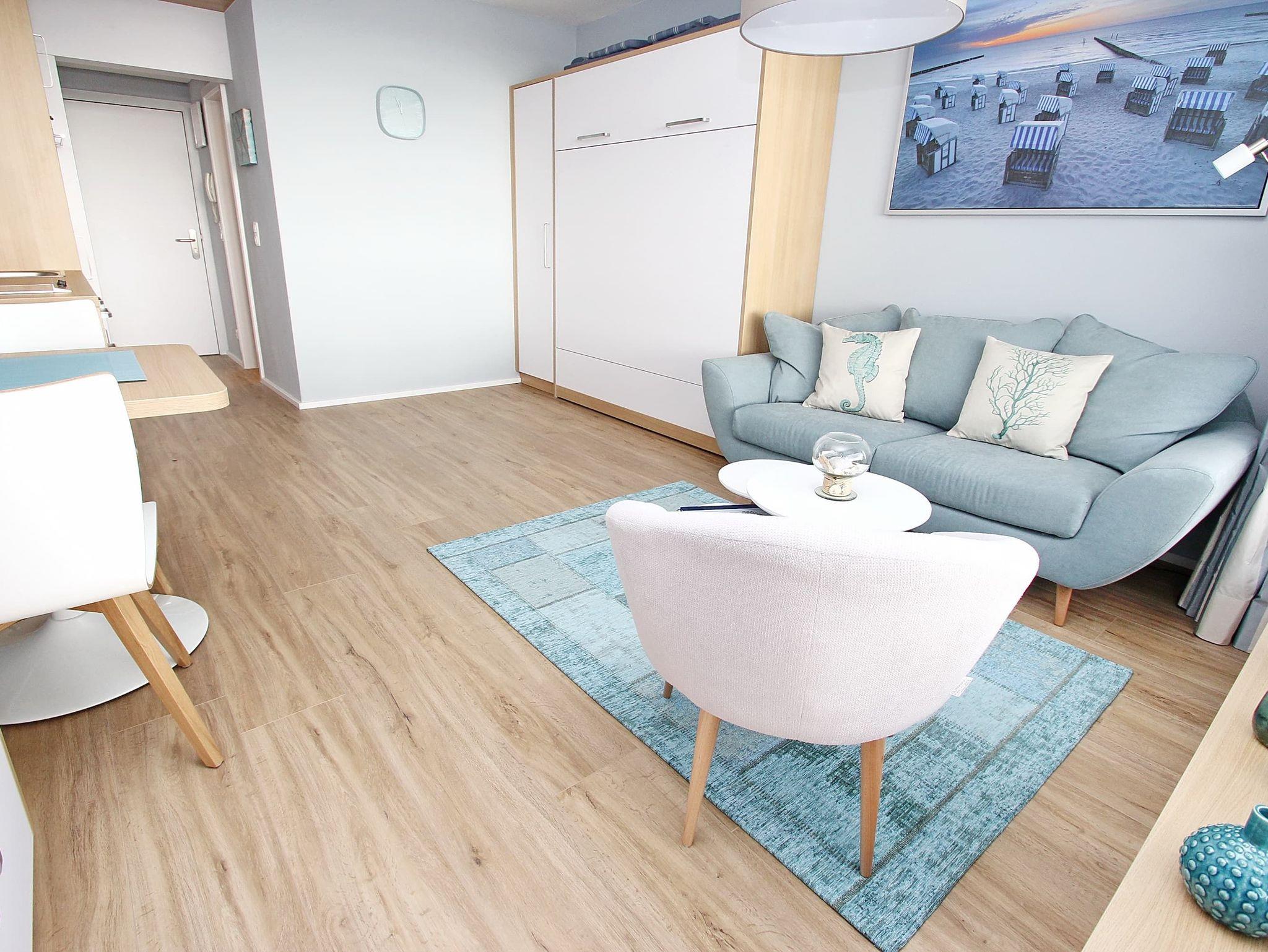 In diesem hellen und freundlich eingerichteten Appartement lässt es sich, fern vom stressigen Alltag, wunderbar entspannen. Hier können Sie aus nächster Nähe das Strandleben genießen und das beschauliche Spiel der Segelboote im Wind beobachten. Im Wohnraum befinden sich ein Doppelschrankbett (2x 80 cm x 200 cm), eine Couch, ein gemütlicher Stuhl und ein Couchtisch. Dank der gut ausgestatteten Küchenzeile, können Sie entscheiden, ob Sie selber kochen oder sich durch die kulinarische Küche Travemündes schlemmen möchten. Des Weiteren ist der Wohnbereich mit einem Essplatz neben der Küchenzeile ausgestattet. Das Duschbad erreichen Sie vom Flur. Vom Balkon genießen Sie einen traumhaften Blick auf die Mecklenburger Bucht und auf die Trave mit ein- und ausfahrendem Schiffsverkehr, sowie auf den Priwall und sein Naturschutzgebiet. Unser Tipp: ein Fernglas sollte in Ihrem Reisegepäck nicht fehlen.