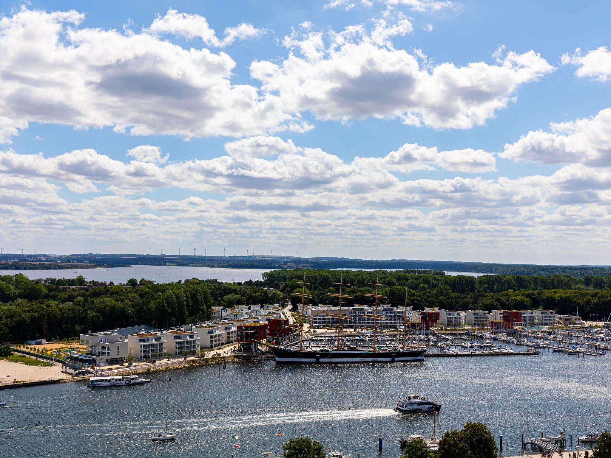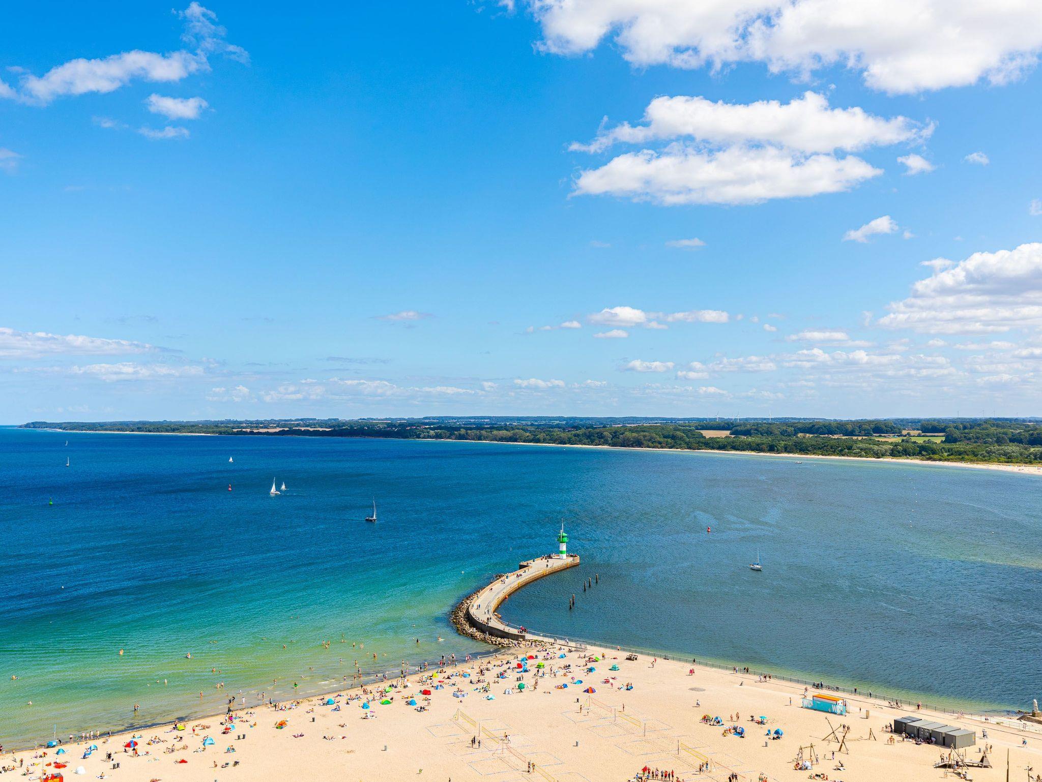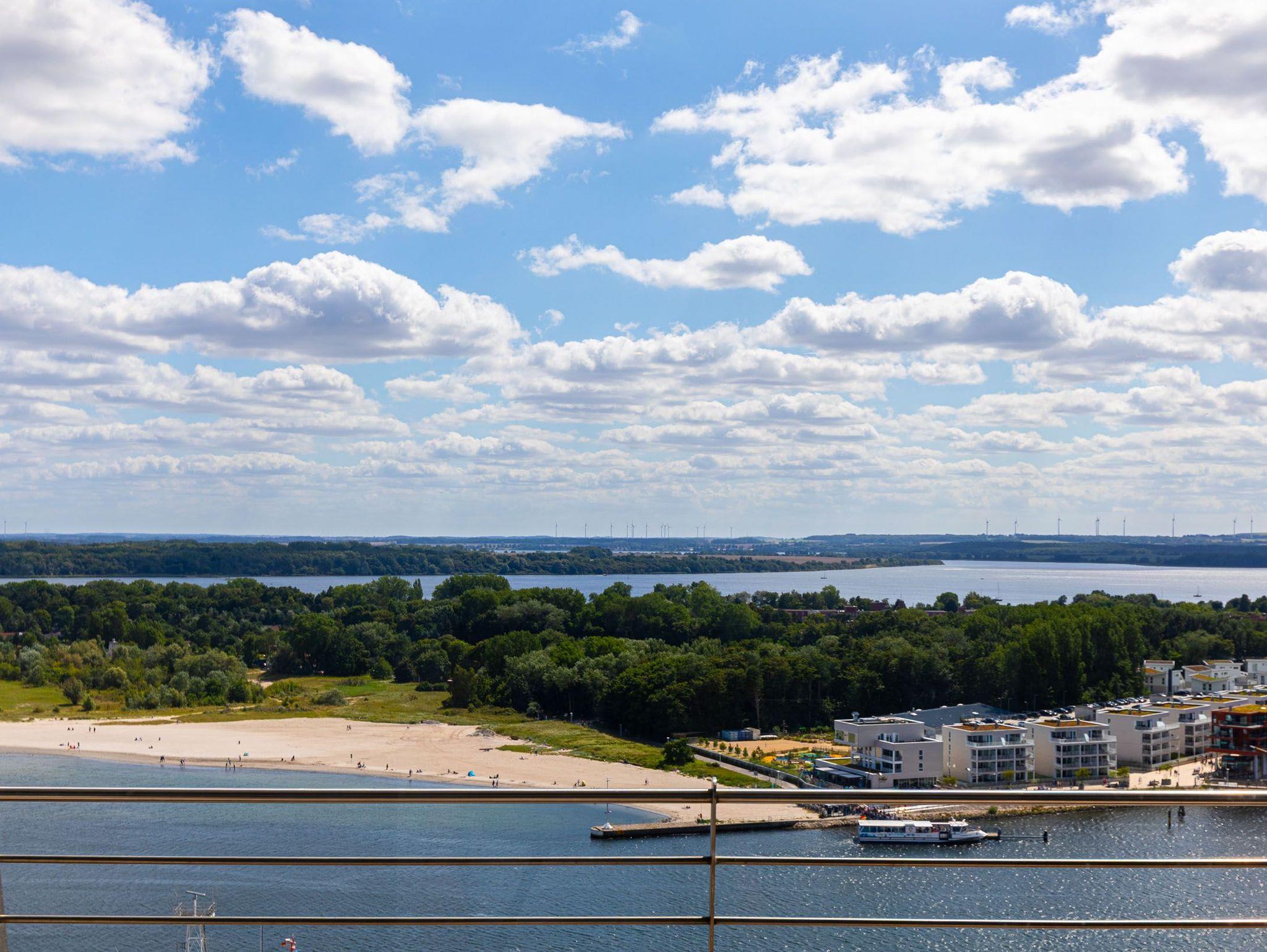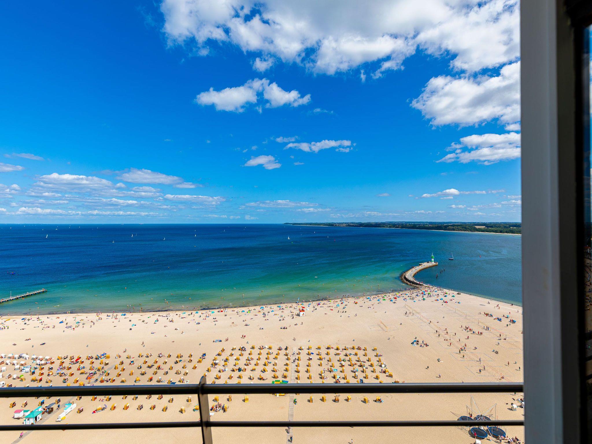 Ihr Traumurlaub in Travemünde. Direkt an der Spitze von Travemünde, liegt die neue Ferienwohnung in der Maritim Residenz. Auf 100 m² haben Sie aus der Eckwohnung im 17. Stock des Hauses einen traumhaften Blick auf die Lübecker Bucht. Beobachten Sie die Schiffe am Horizont oder beim Einlaufen in den Hafen. Genießen Sie die Weite des Meeres und den Sonnenaufgang, wenn die ersten Strahlen in die großen Panoramafenster scheinen. Auf der ca. 26 m² großen Loggia mit Balkonmobiliar haben Sie Travemünde im Blick und können ganztägig auch in Ihrer Wohnung die Sonne genießen. Natürlich können Sie direkt unten im Gebäude, in der Tiefgarage, parken[nbsp][nbsp]und ein Aufzug bringt Sie und Ihr Gepäck ganz bequem nach oben. Die großzügige Wohnung hat zwei getrennte Schlafzimmer für bis zu 4 Personen und allen anderen exklusiven Komfort, den Sie von Dzulko Ferienwohnungen kennen.