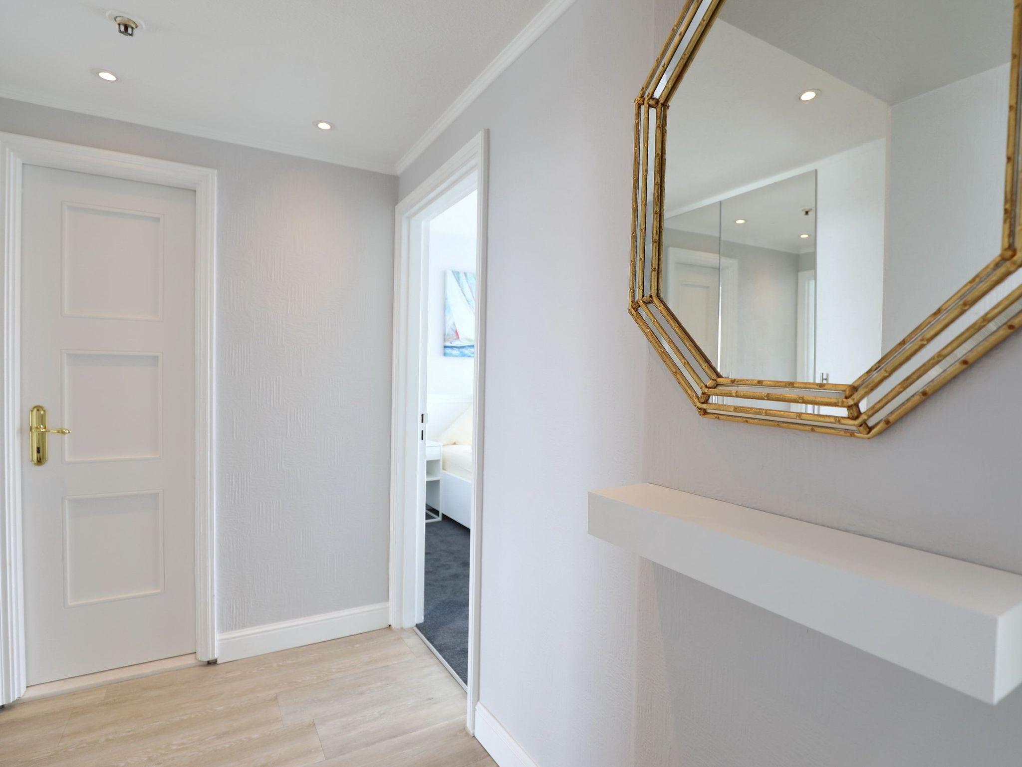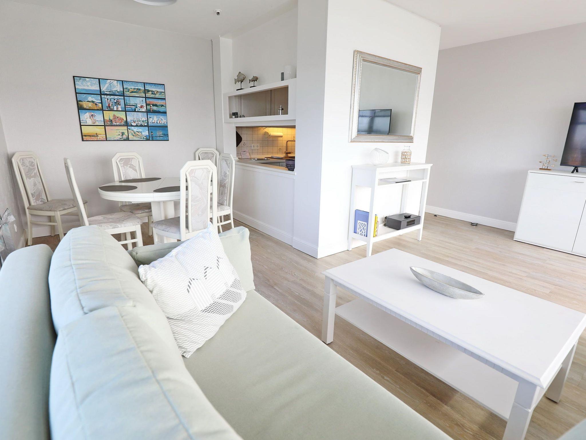 Umlaufende Loggia von ca. 21 m², Markisen, Küche, Geschirrspüler, Vollbad/WC, Fön, Waschmaschine, 2x TV, Stereoradio/CD, kostenl. W-Lan, Aufzug, inkl. Tiefgaragenstellplatz (Einfahrtshöhe: 1,85 m).