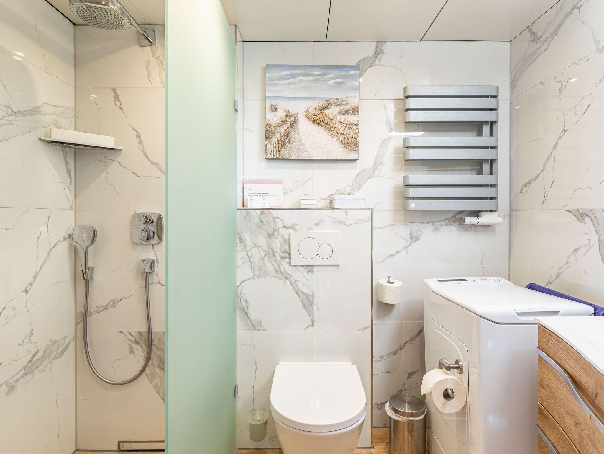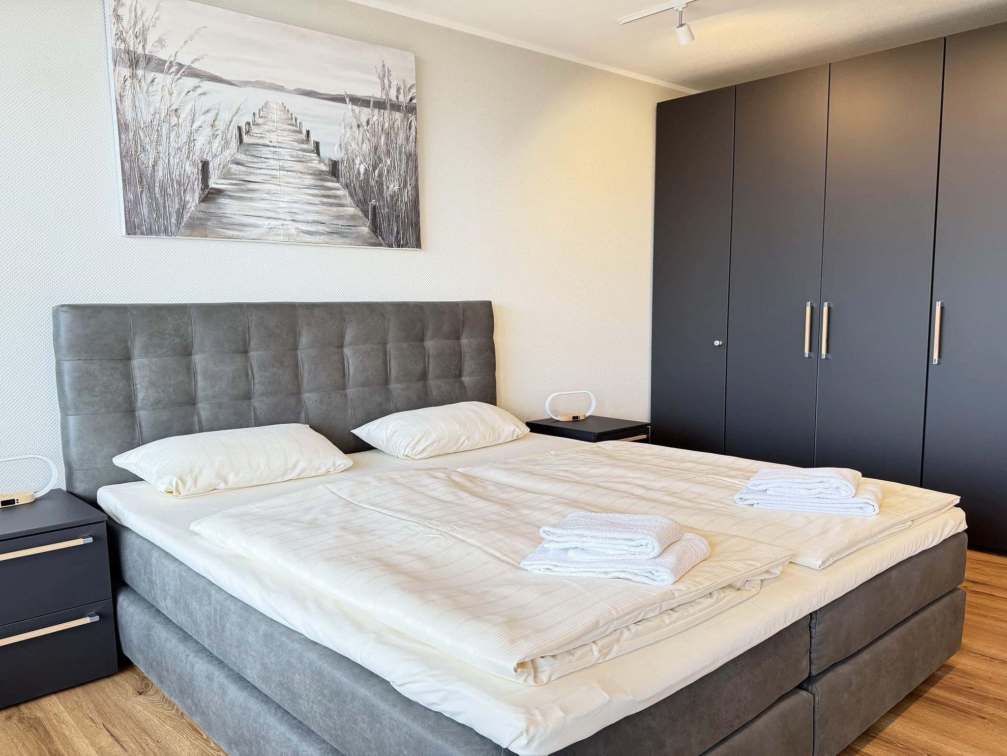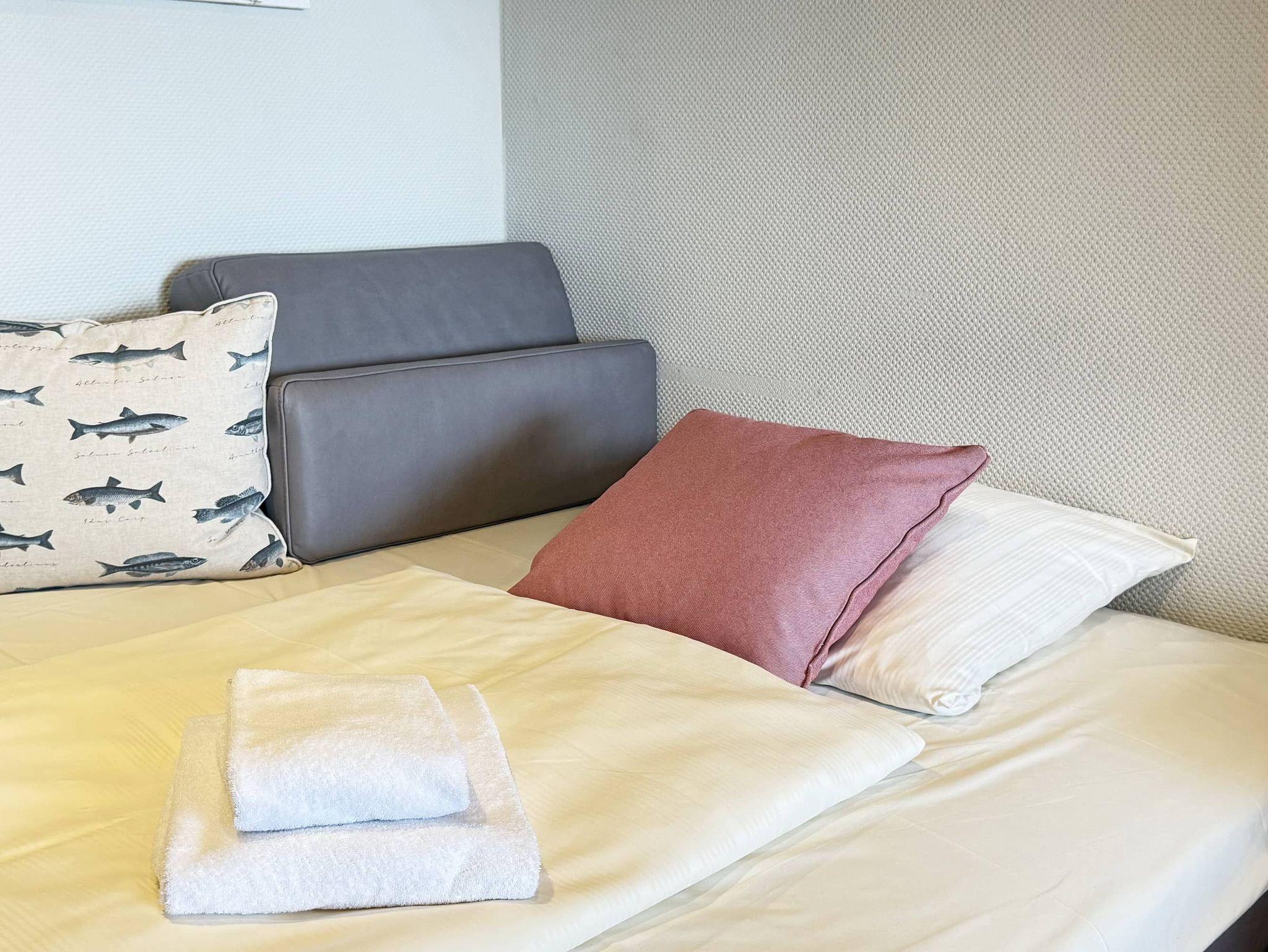Diese stilvoll und gemütlich eingerichtete 2-Zimmer-Ferienwohnung bietet Platz für bis zu drei Personen und eignet sich hervorragend für Familien oder Paare. Der helle Wohnbereich überzeugt mit einem Essplatz, einem bequemen Sofa sowie einer Schlafcouch (140 × 200 cm), die sich in einer separaten Wohnraumnische befindet. Das Schlafzimmer ist mit einem komfortablen Boxspringbett (180 × 200 cm) und einem geräumigen Kleiderschrank ausgestattet. Vom Flur aus gelangen Sie sowohl in die voll ausgestattete Küche als auch in das modernisierte Badezimmer mit Dusche und Waschmaschine. Ein besonderes Highlight ist der großzügige Balkon, der sowohl vom Wohn- als auch vom Schlafzimmer aus zugänglich ist und einen herrlichen Blick auf Strand und Meer bietet. Dank der zentralen Lage erreichen Sie Restaurants, Einkaufsmöglichkeiten und Sehenswürdigkeiten bequem zu Fuß- beste Voraussetzungen für einen entspannten und erholsamen Urlaub.