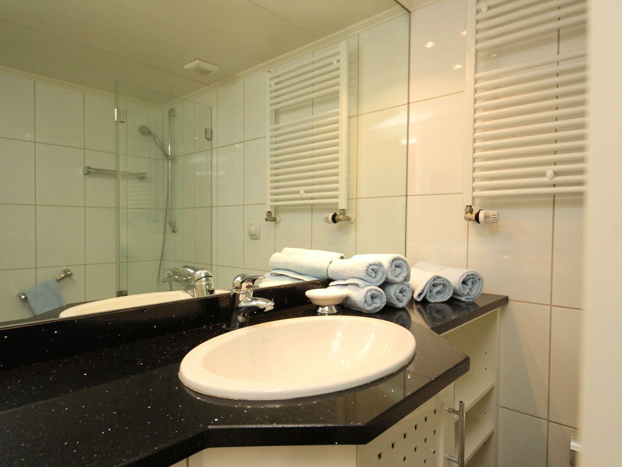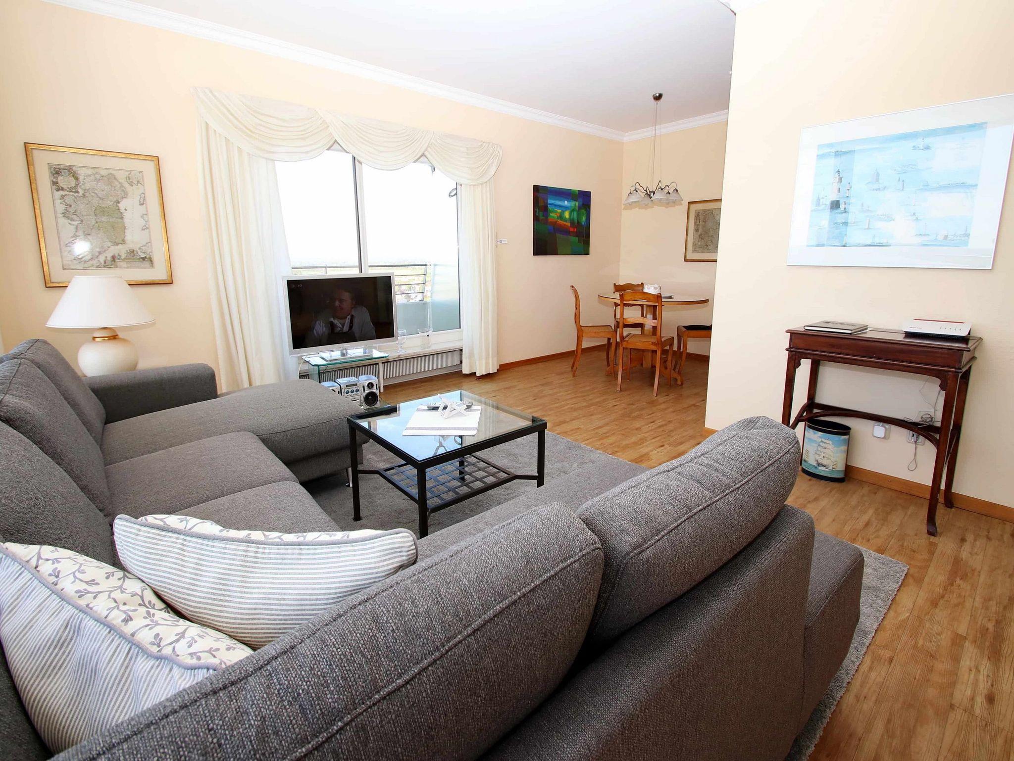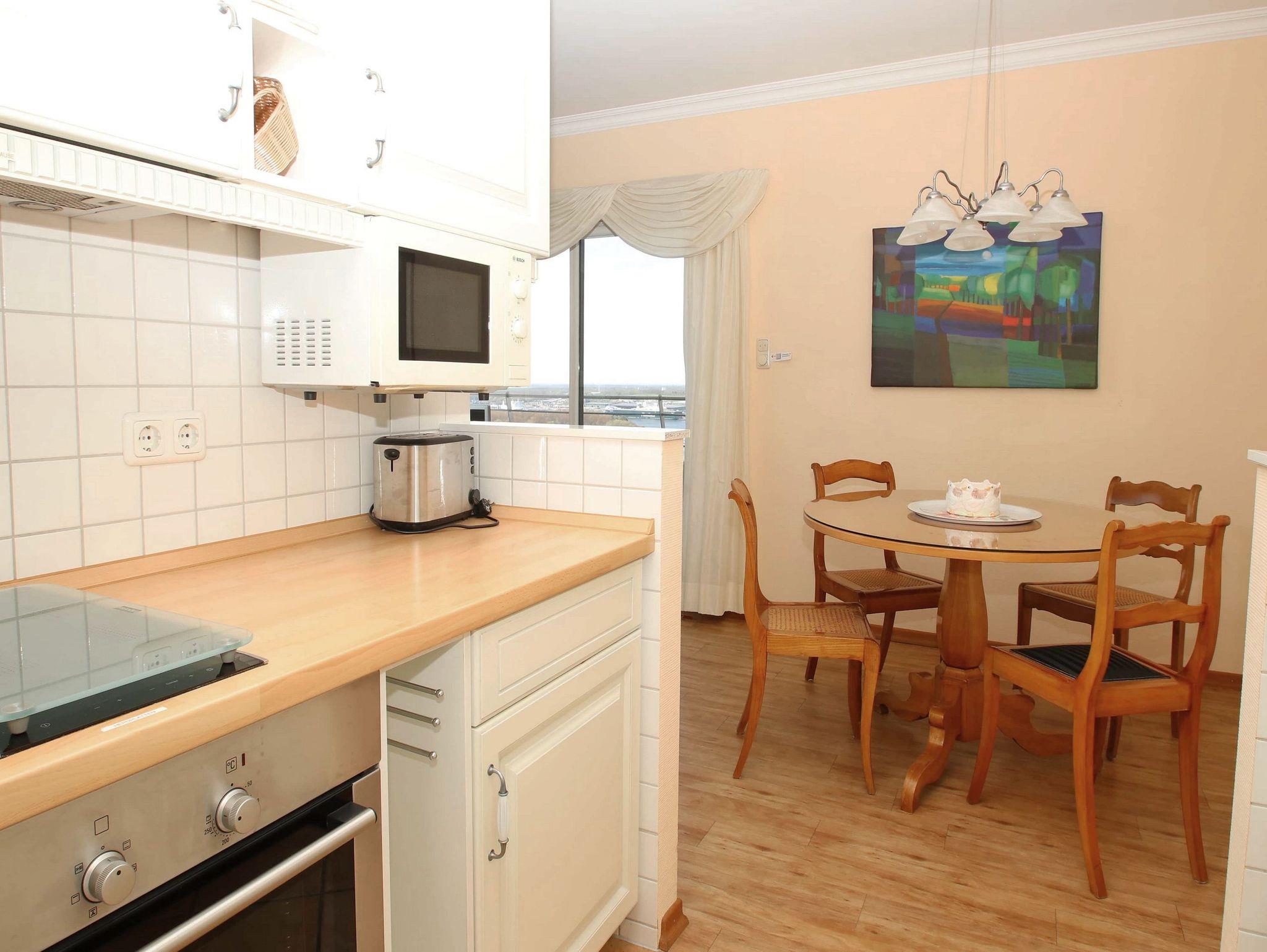 Umlaufende Loggia von ca. 21 m², Küche, Geschirrspüler, Mikrowelle, Vollbad/WC, Fön, TV, kostenl. Internetzugang, Stereoanlage, Aufzug, inkl. Tiefgaragenstellplatz (Einfahrtshöhe: 1,85 m).